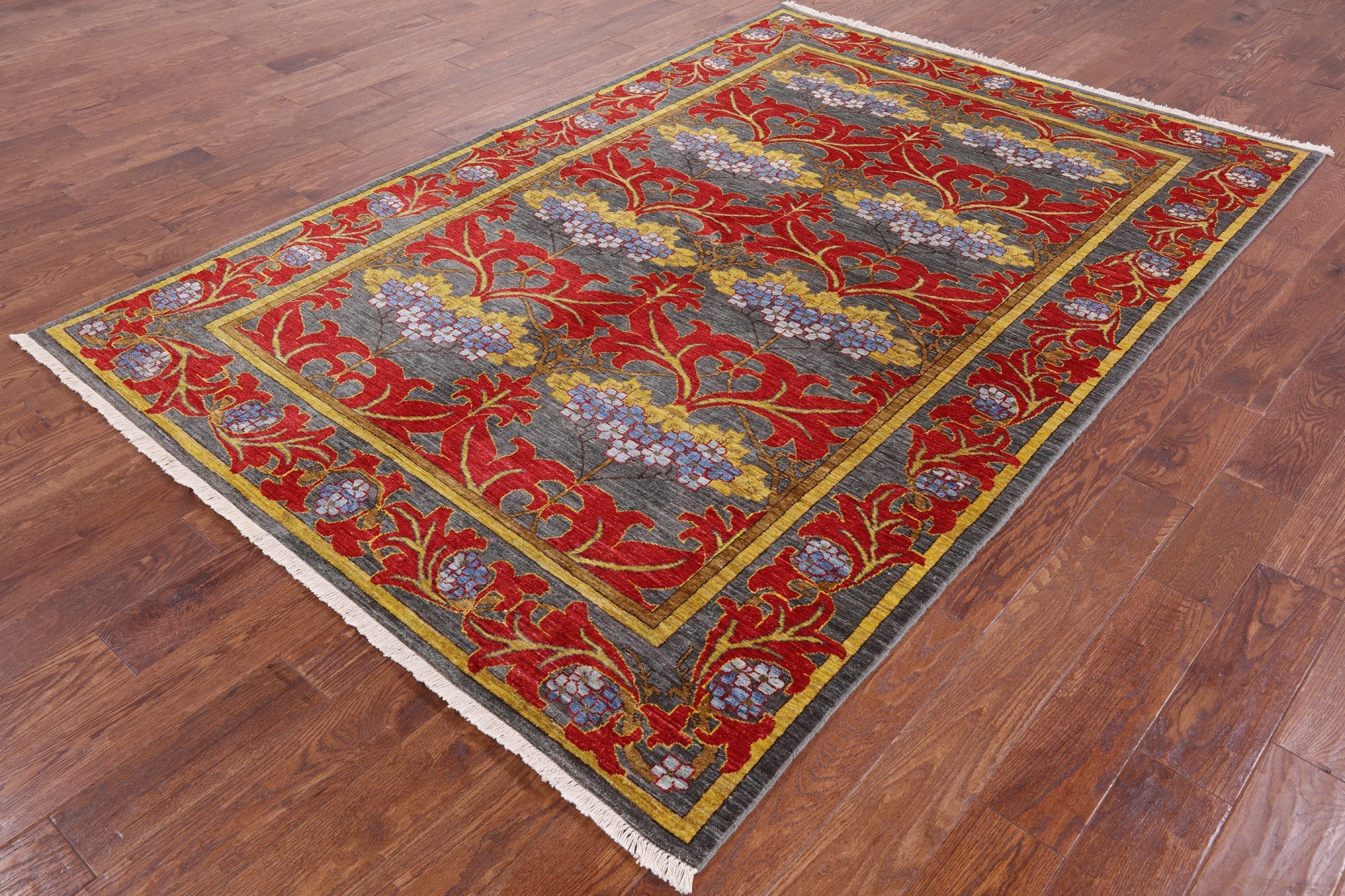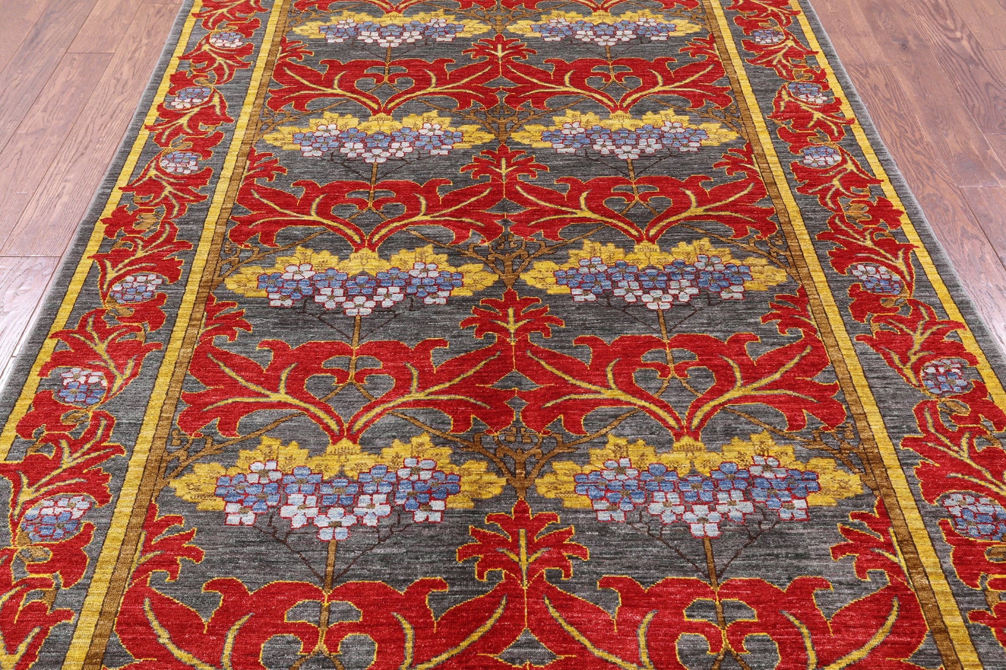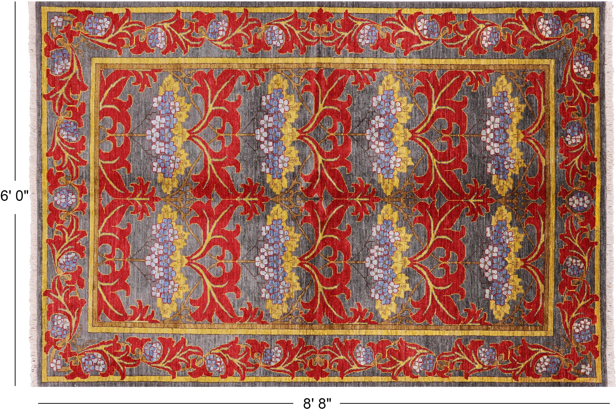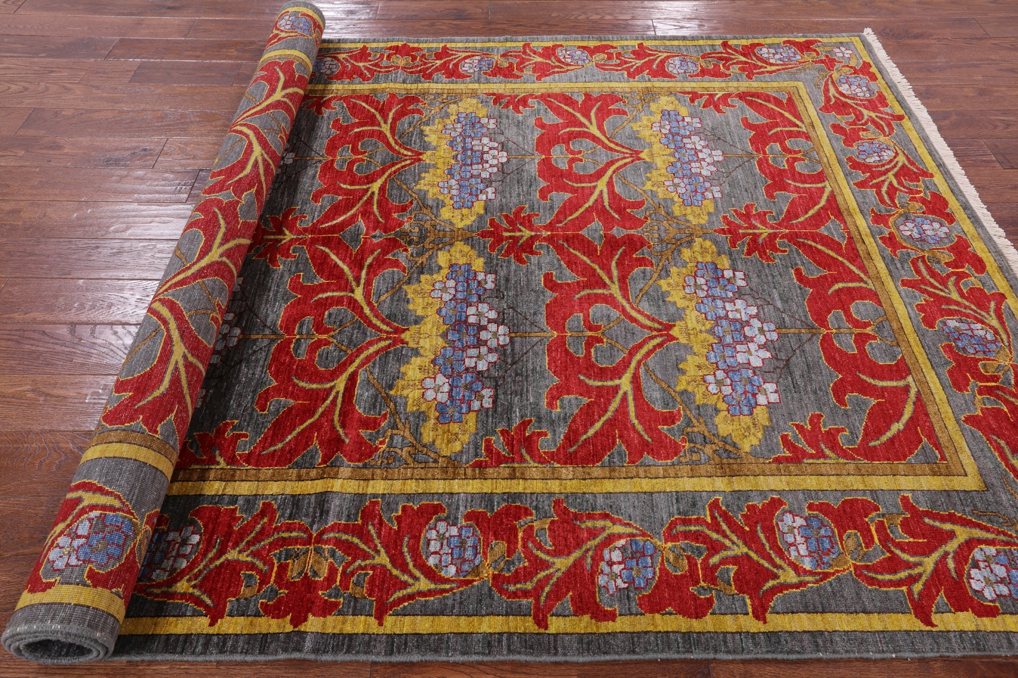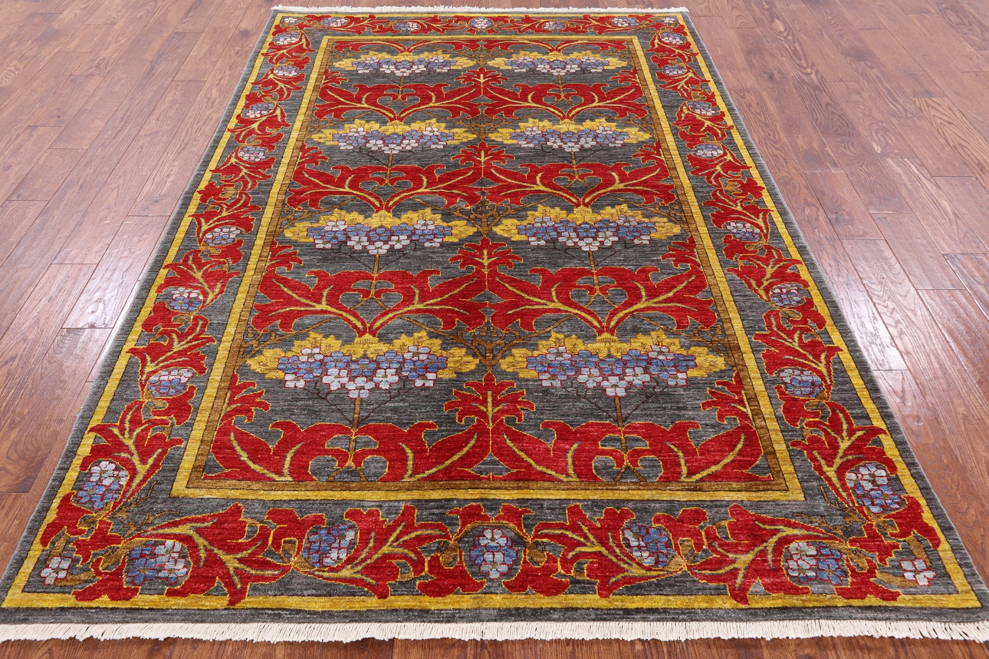 Grey 6' 0" X 8' 8" Hand-Knotted William Morris Wool Rug - P4974 is backordered and will ship as soon as it is back in stock.