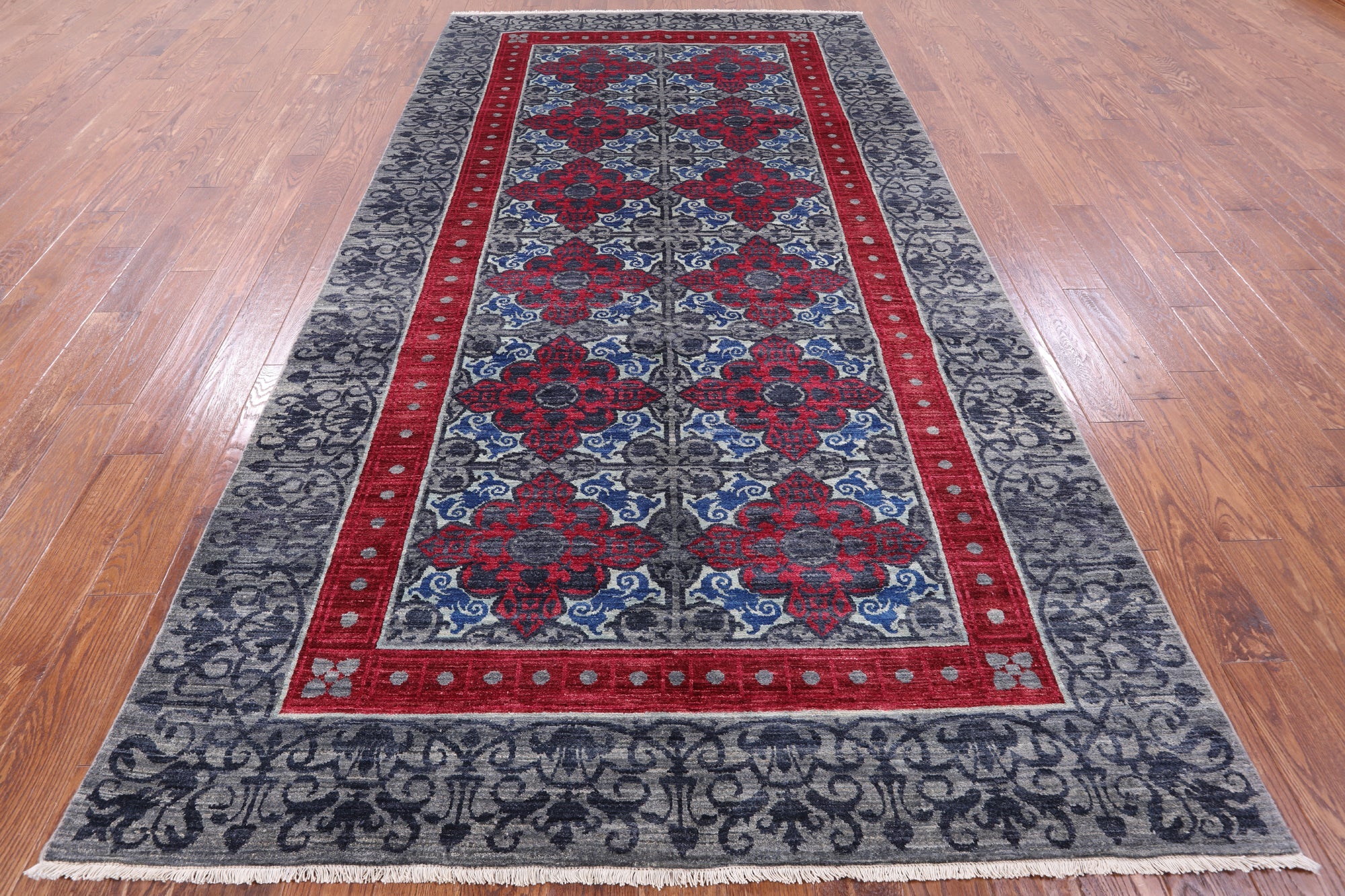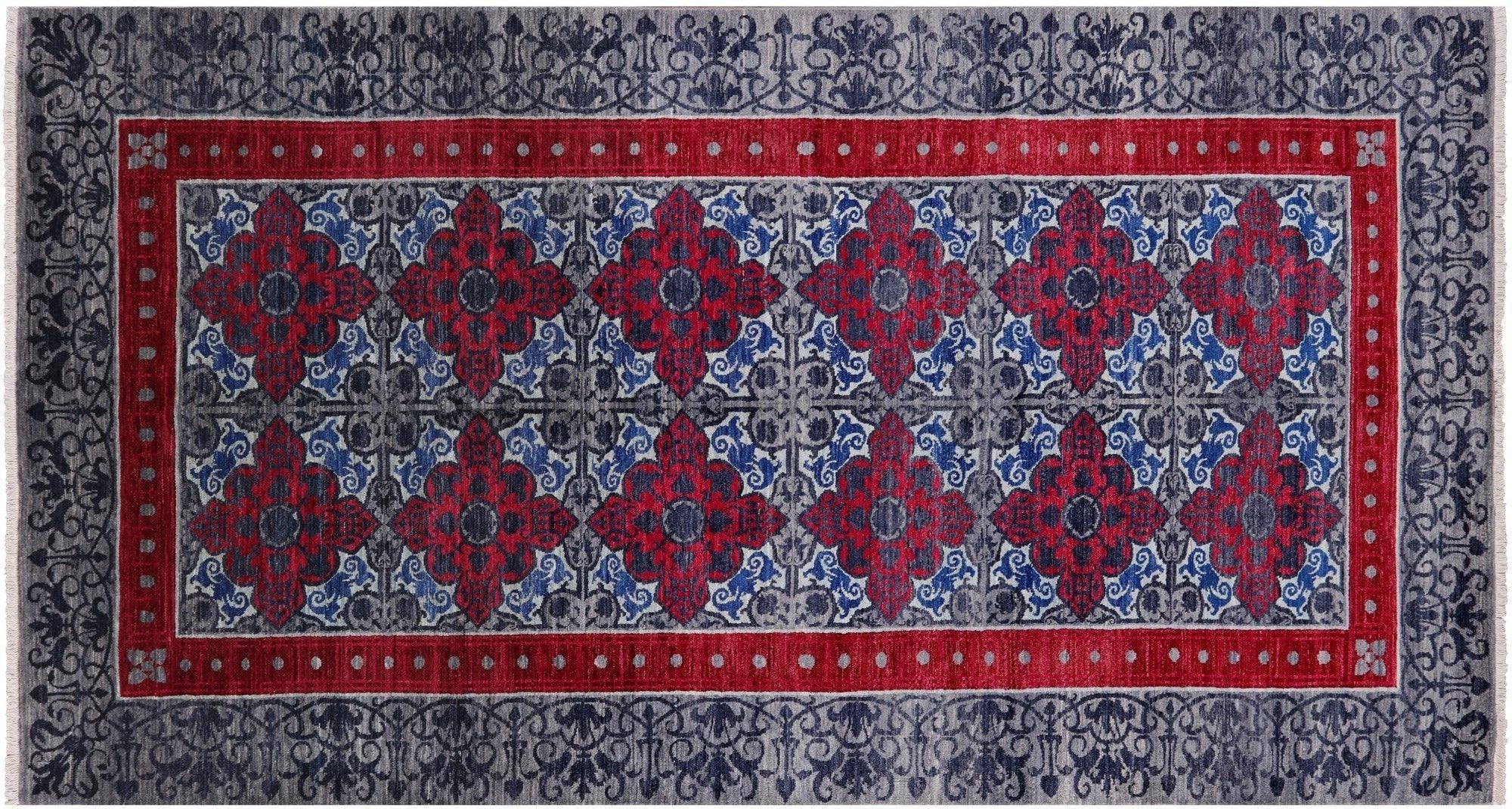 Grey Hand-Knotted William Morris Wool Rug 6' 0" X 11' 2" - P7056