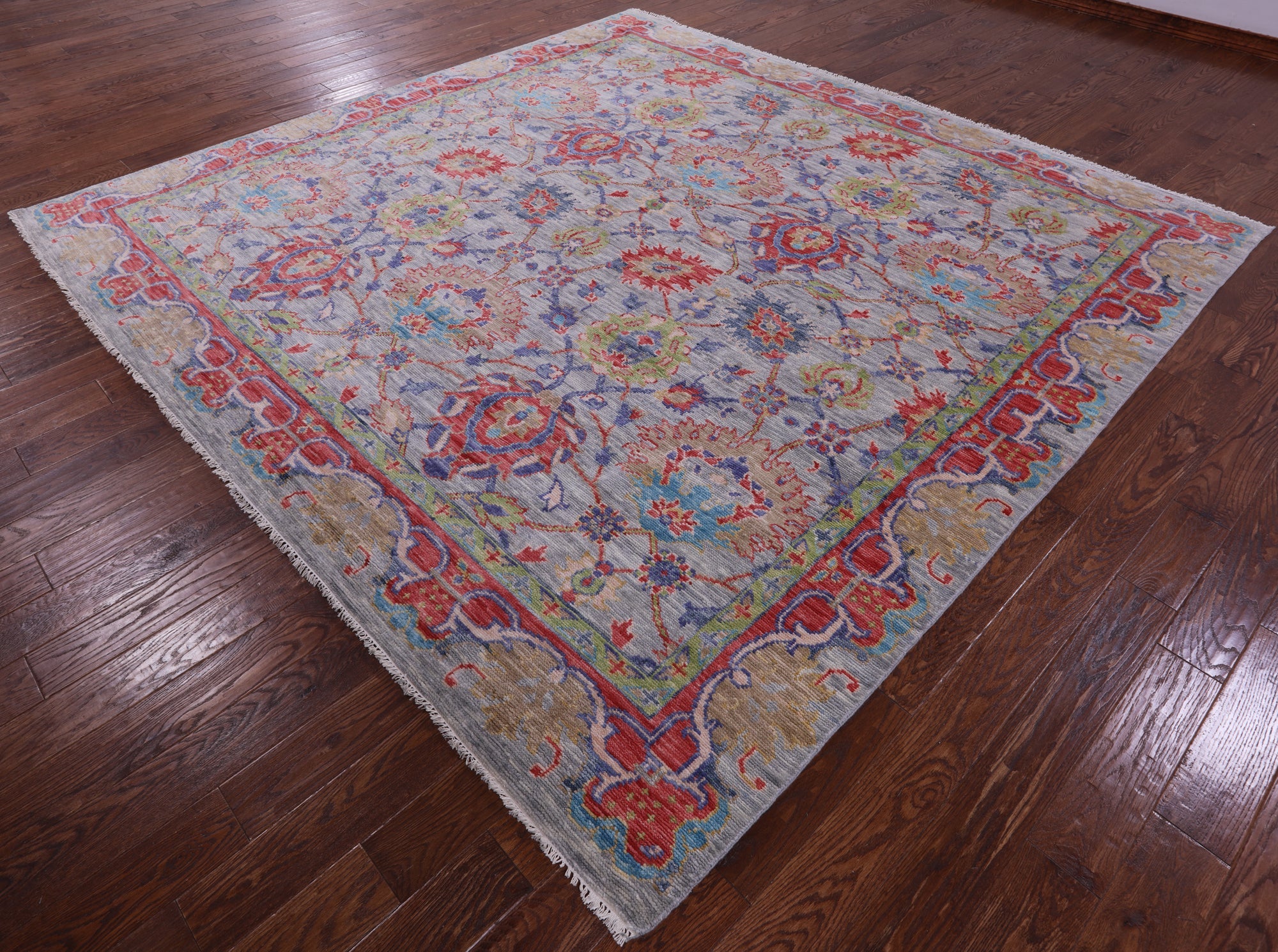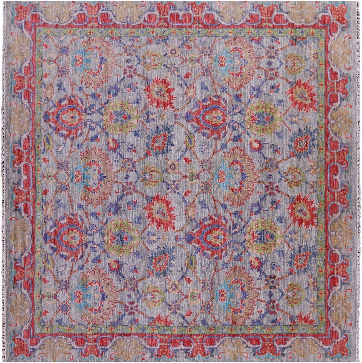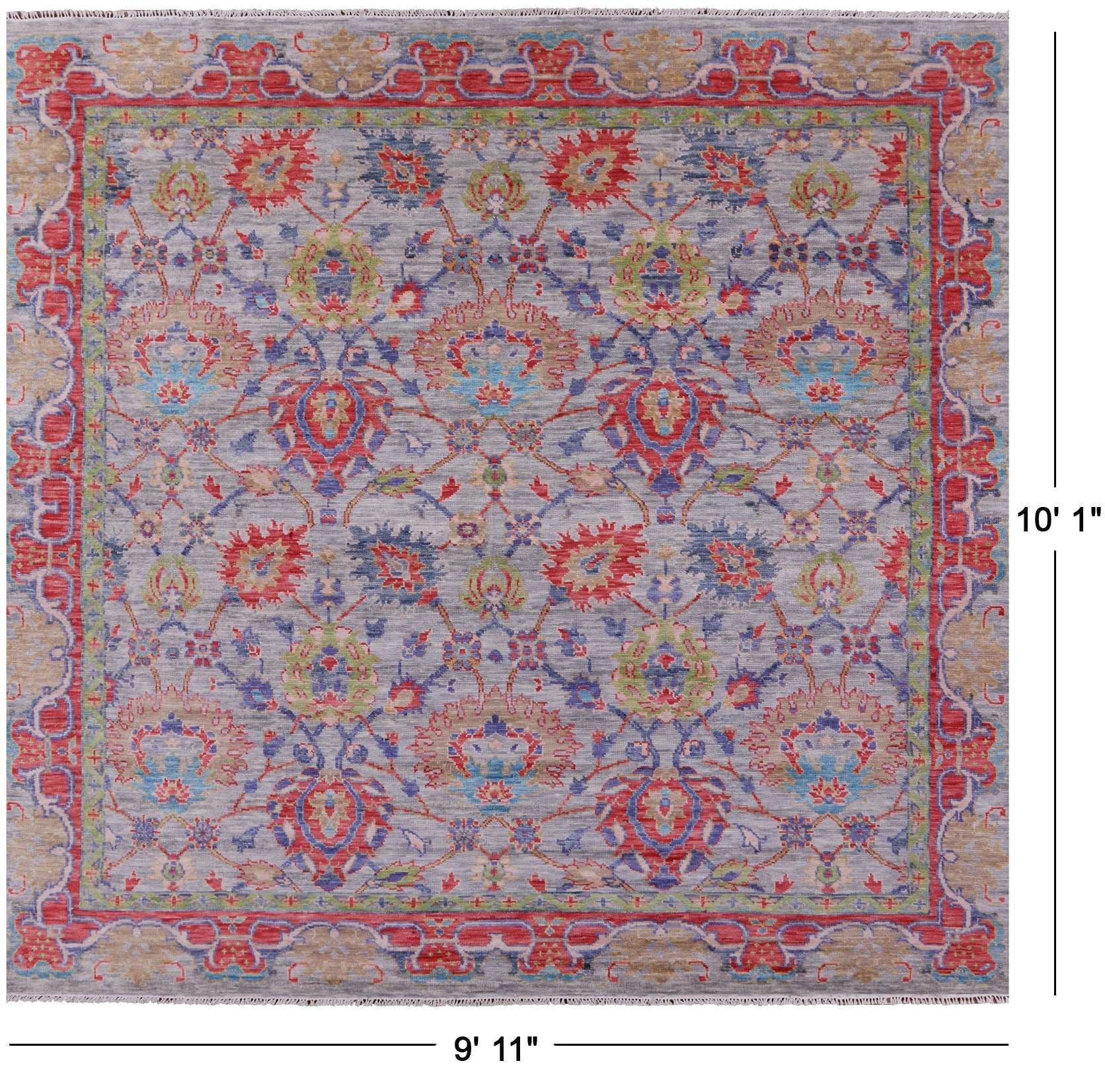 Grey 10' Square Hand-Knotted William Morris Wool Rug - Q15605