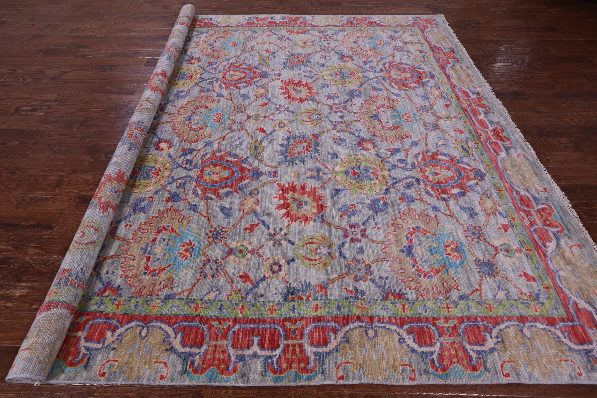 Grey 10' Square Hand-Knotted William Morris Wool Rug - Q15605 is backordered and will ship as soon as it is back in stock.