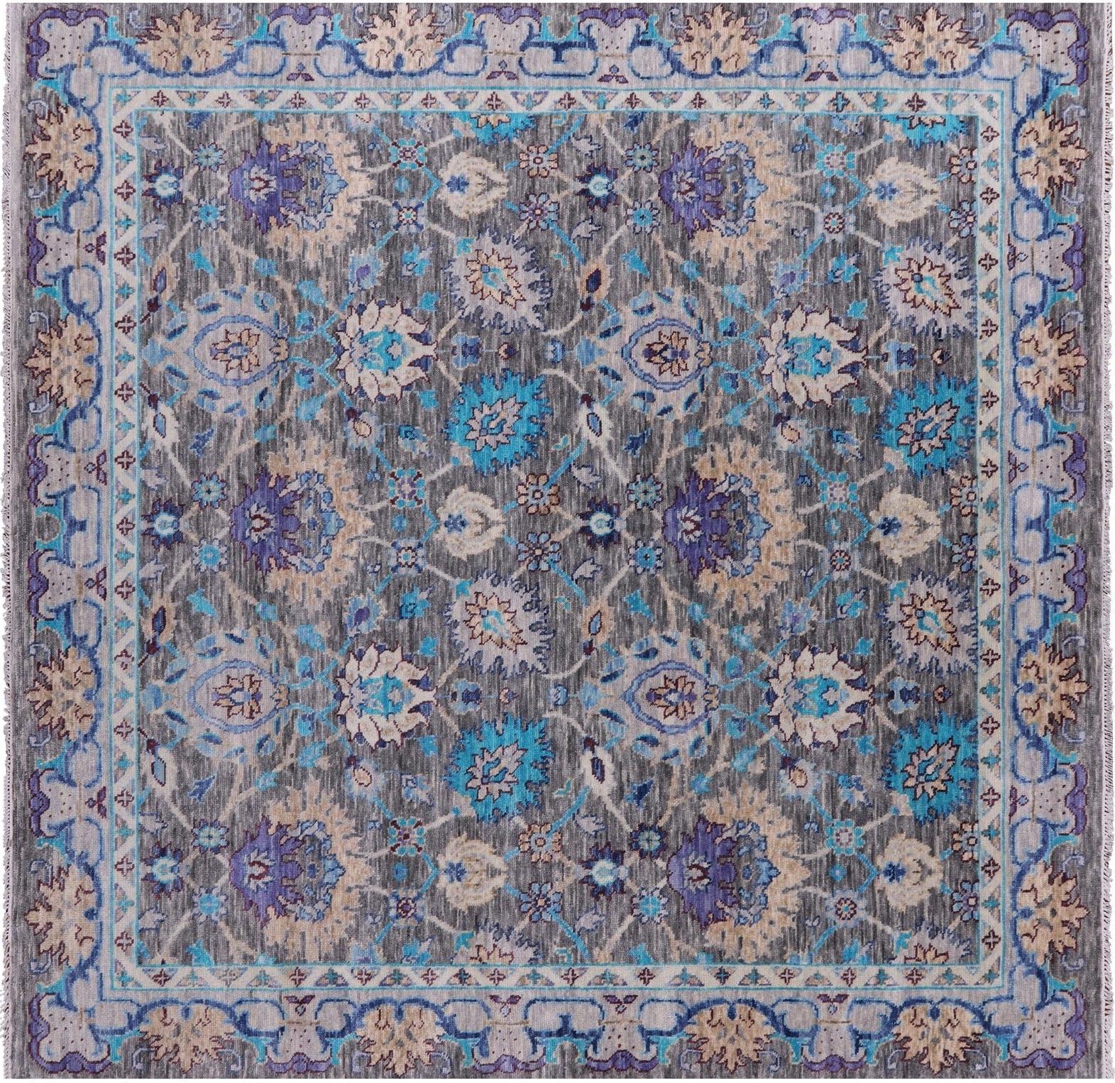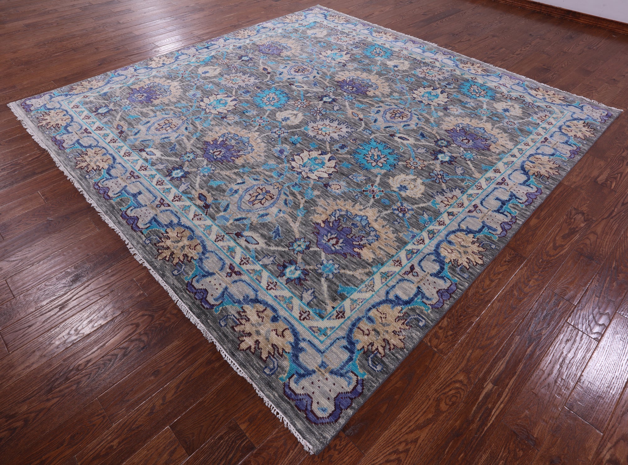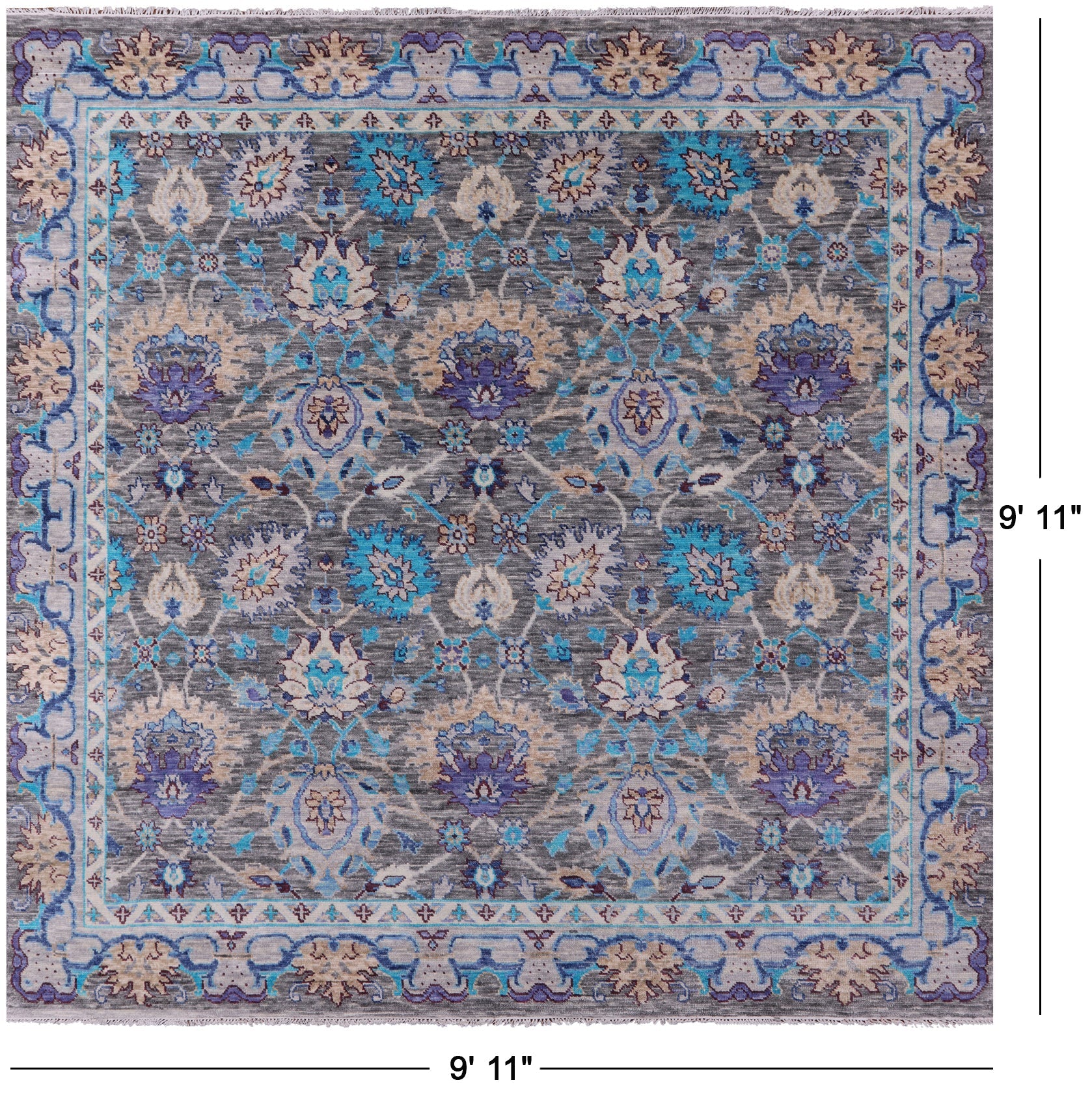 Grey 10' Square Handmade William Morris Wool Rug - Q15645