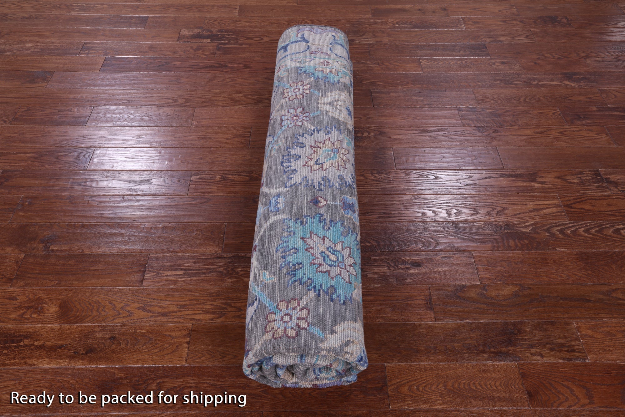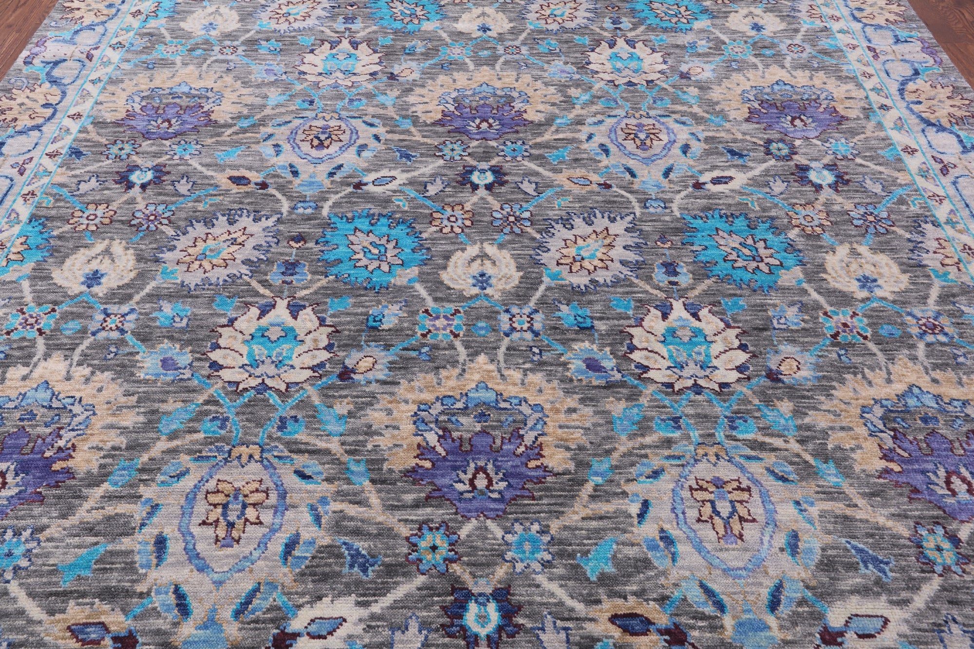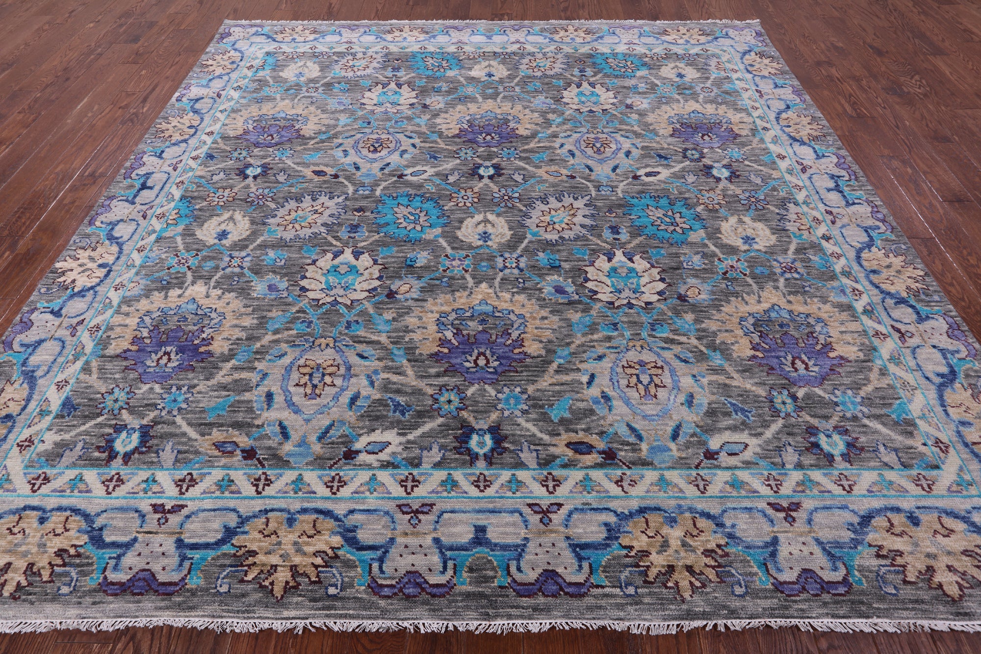 Grey 10' Square Handmade William Morris Wool Rug - Q15645 is backordered and will ship as soon as it is back in stock.
