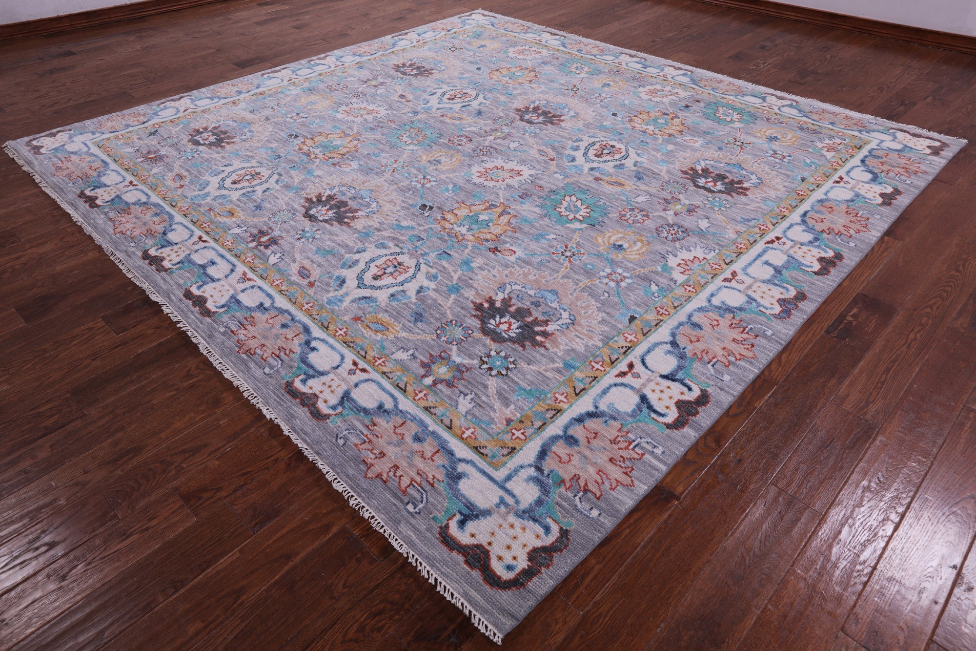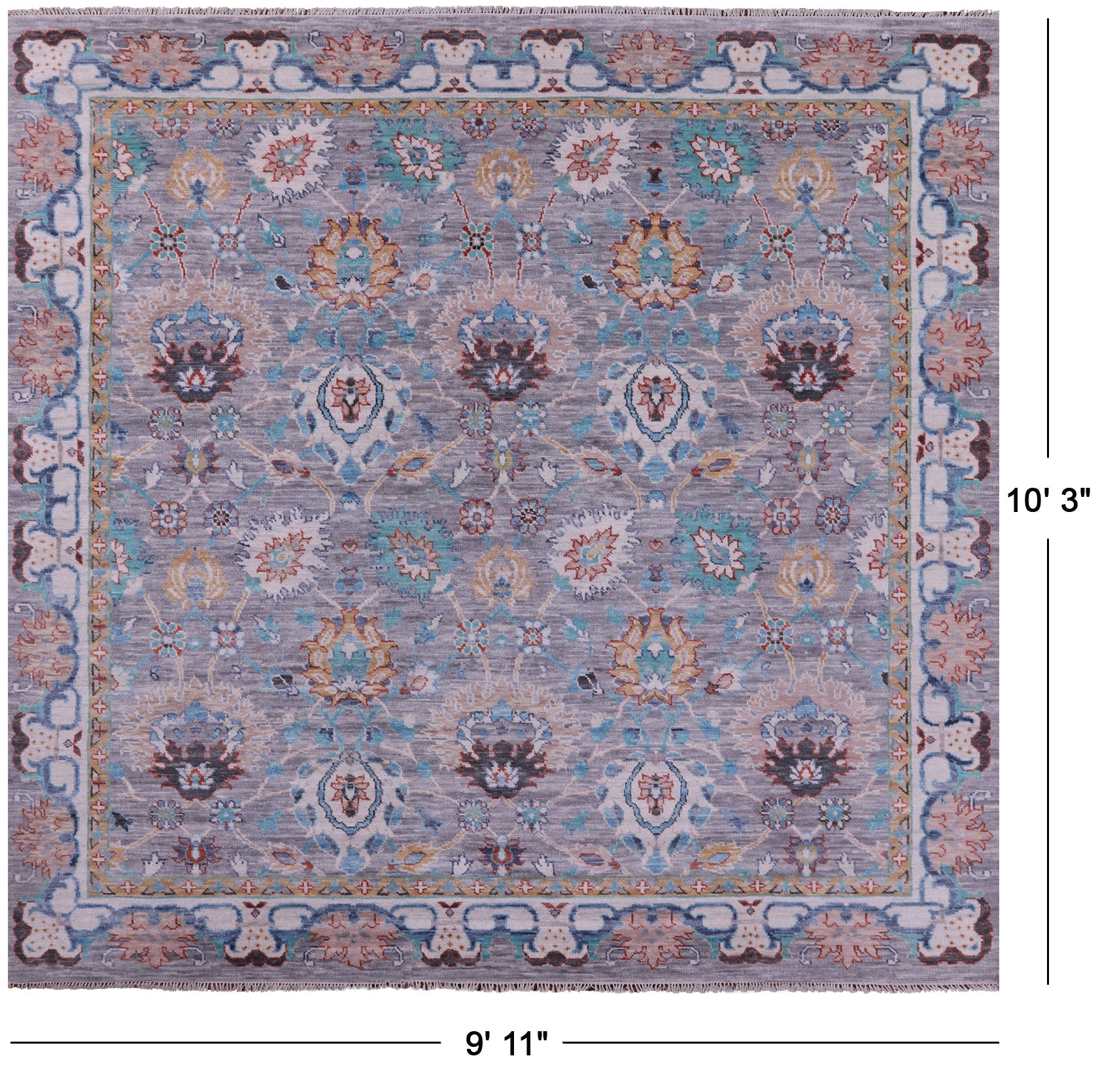 Grey 10' Square William Morris Handmade Wool Rug - Q14971
