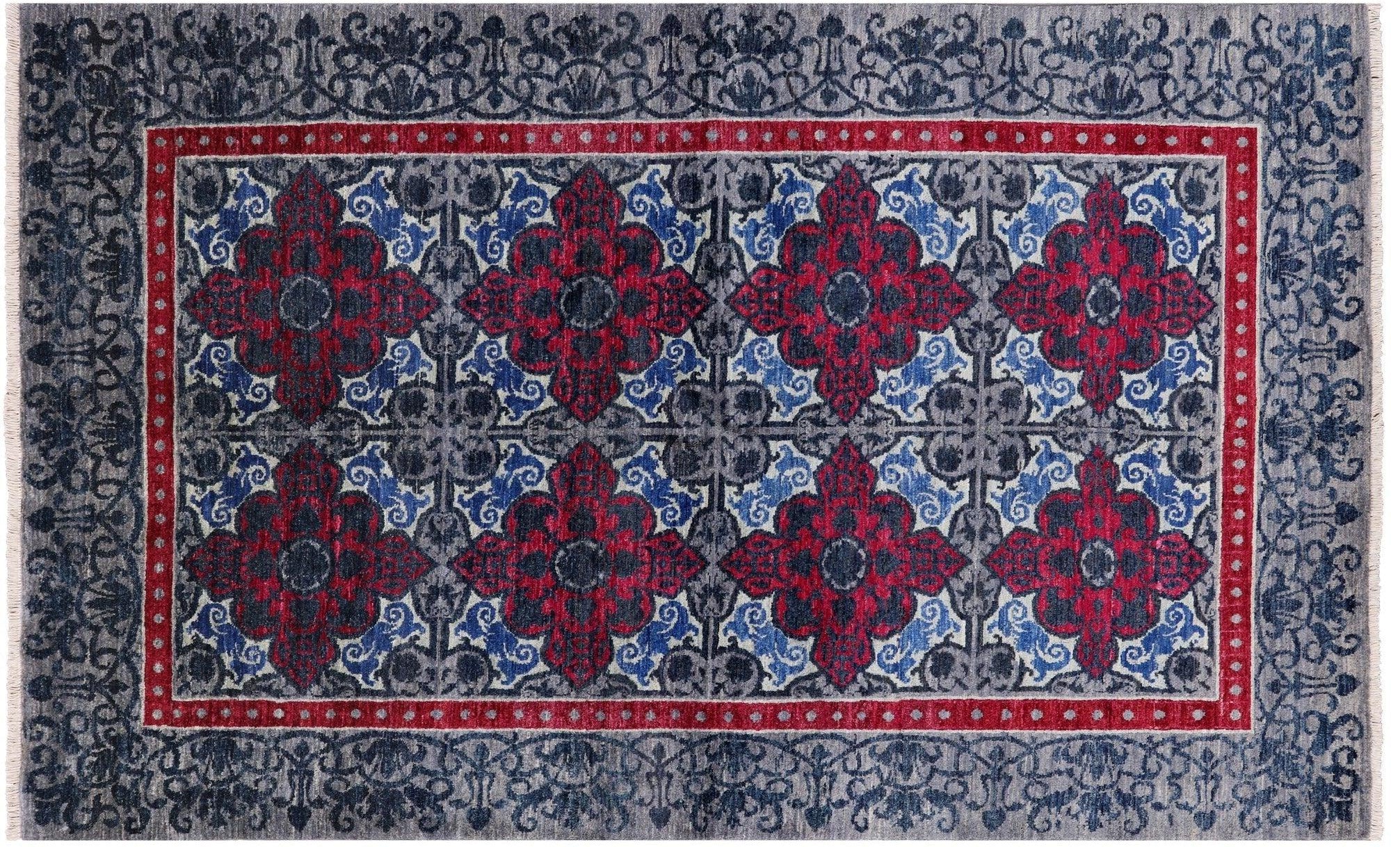 Grey William Morris Hand Knotted Wool Rug 5' 1" X 8' 1" - P7127