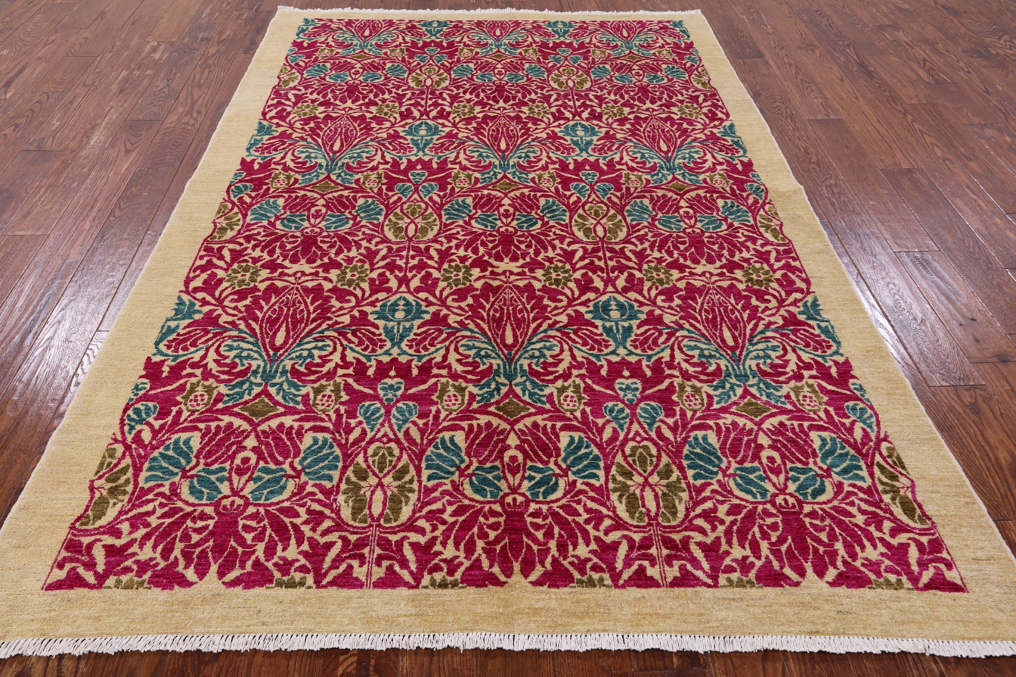 William Morris design are part of arts and crafts movement often including natural forms. These 19th and early 20th century designs are distinctive for their stylized natural forms, their symmetry and their vibrant colors. William Morris patterns are based on nature such thistles, ginkgo leaves, willow trees and flowers. These modern hand knotted rugs are woven with high quality wool, silk or both.