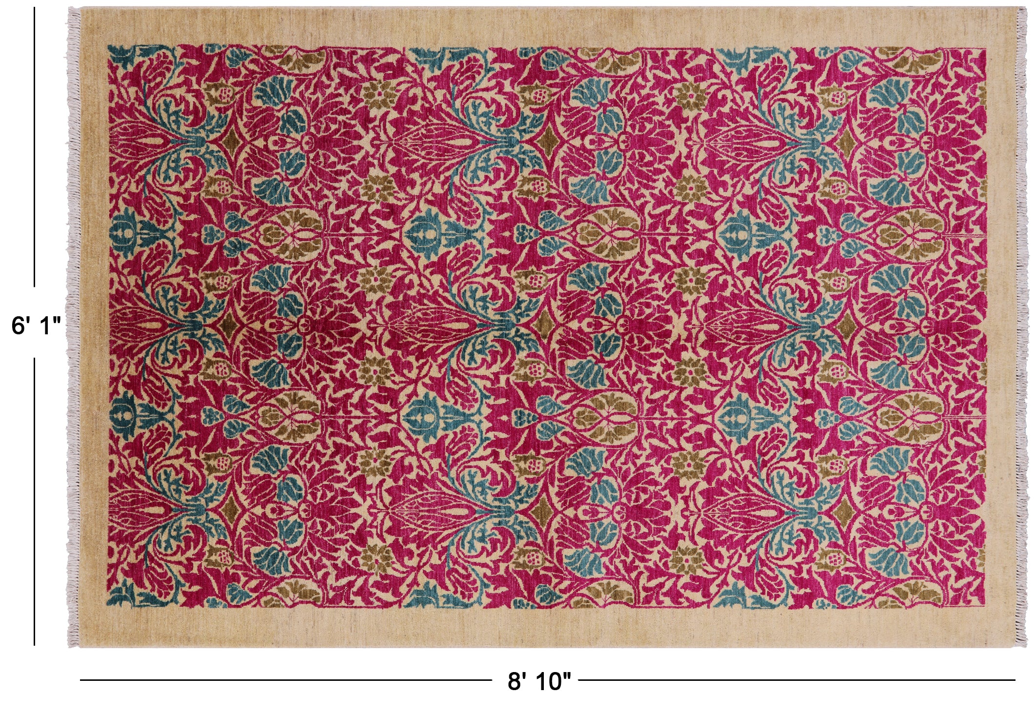 Ivory 6' 1" X 8' 10" Hand Knotted William Morris Area Rug - P6501