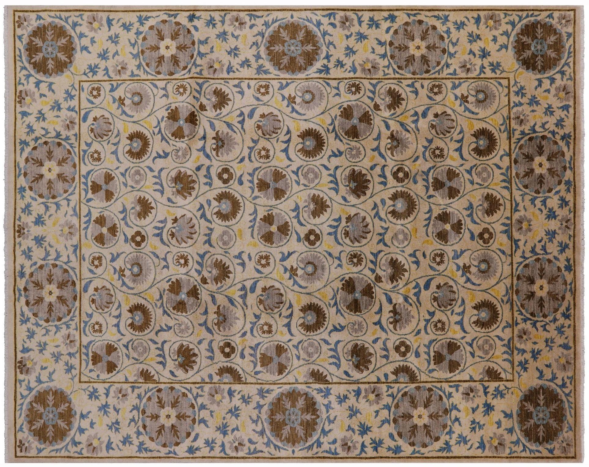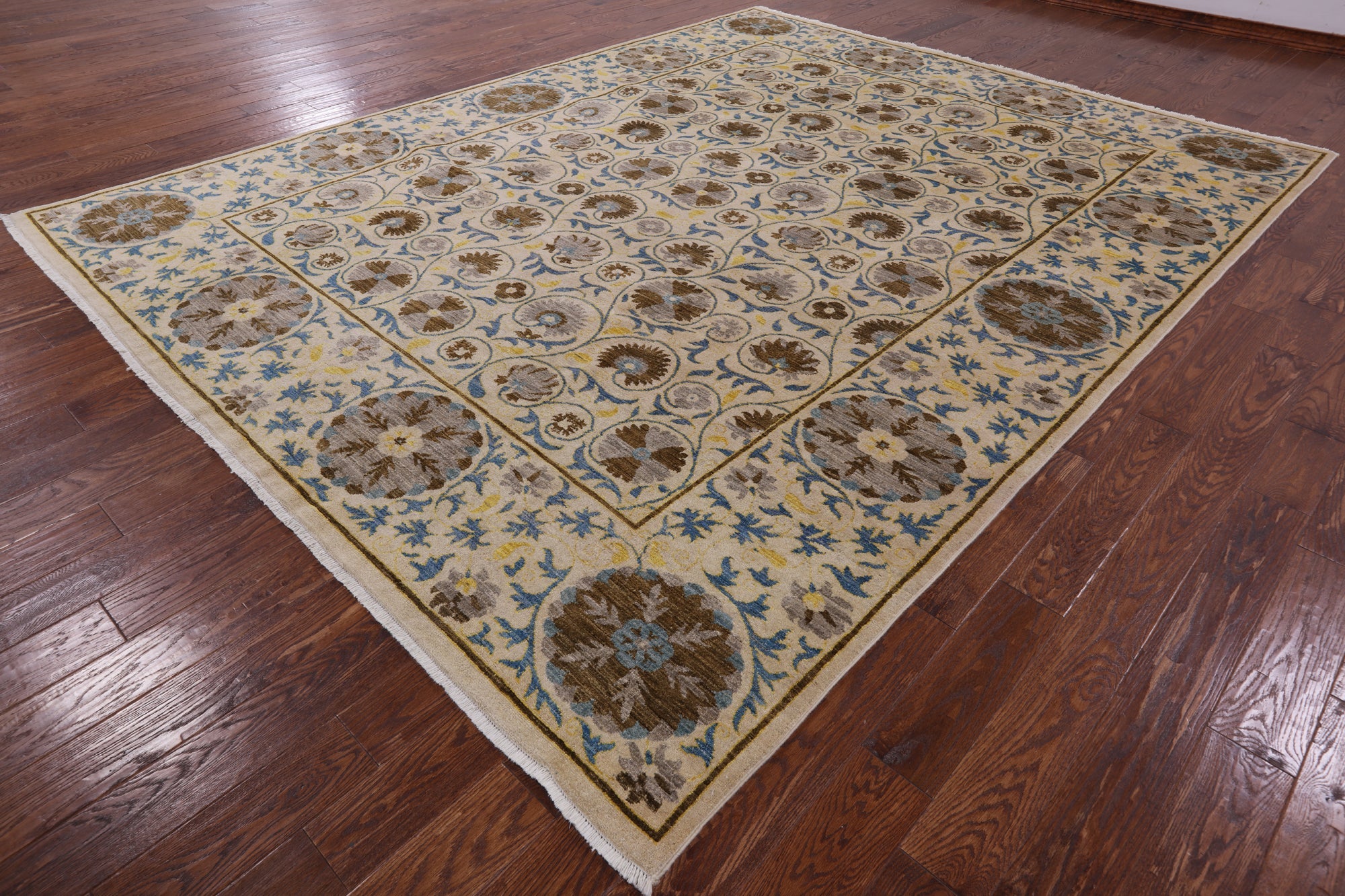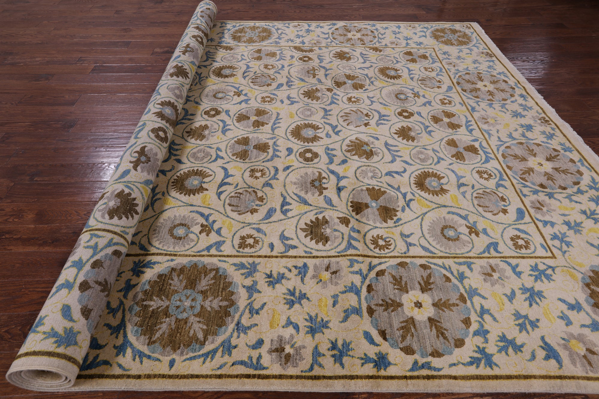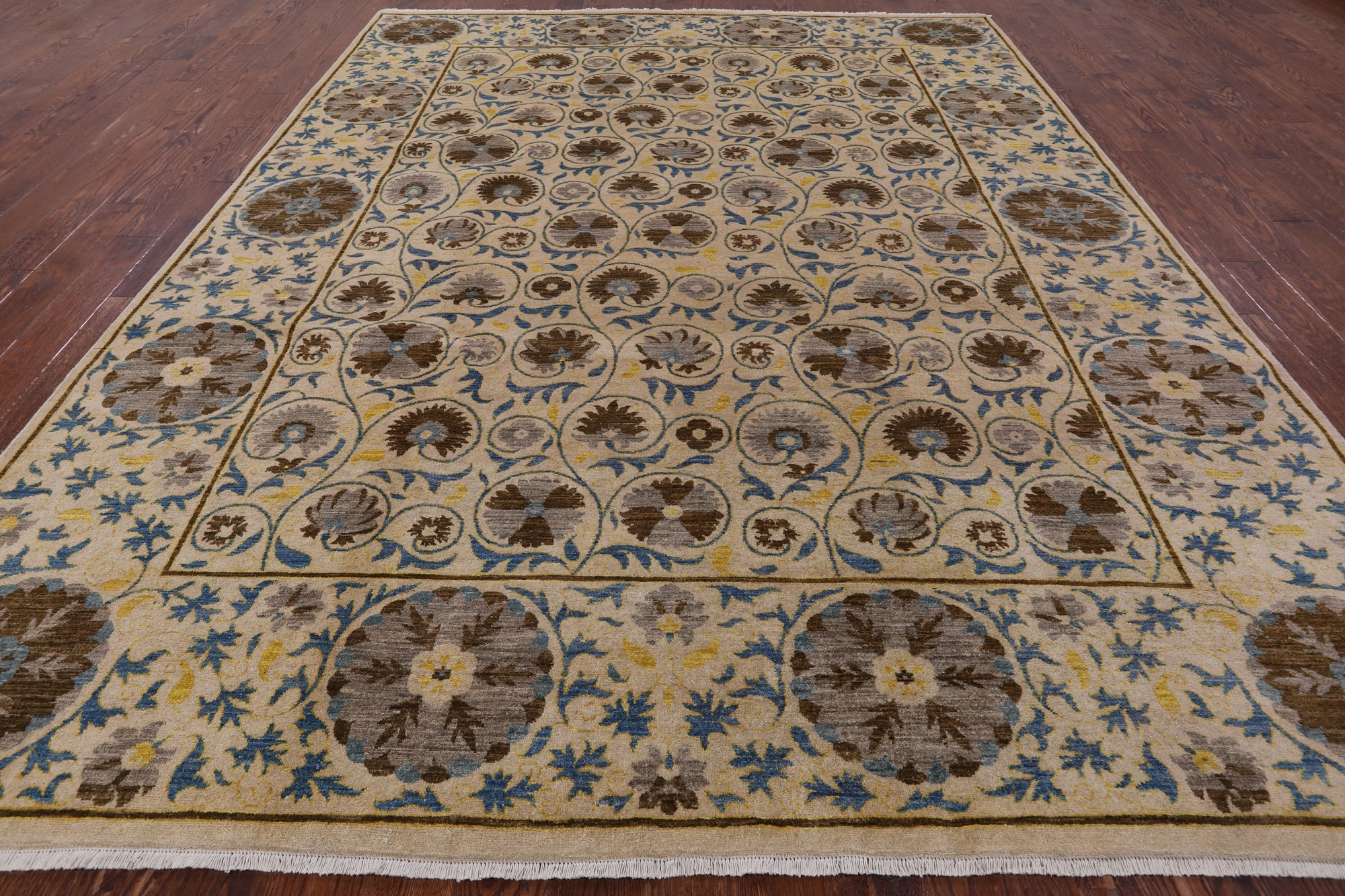 Ivory 9' 3" X 11' 9" Handmade William Morris Rug - P3816
