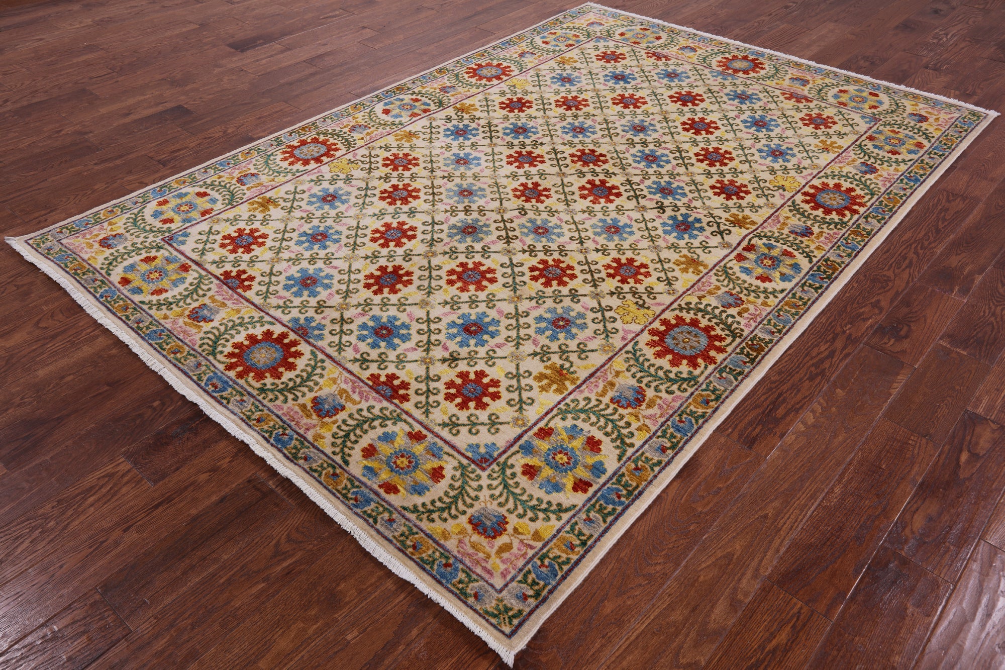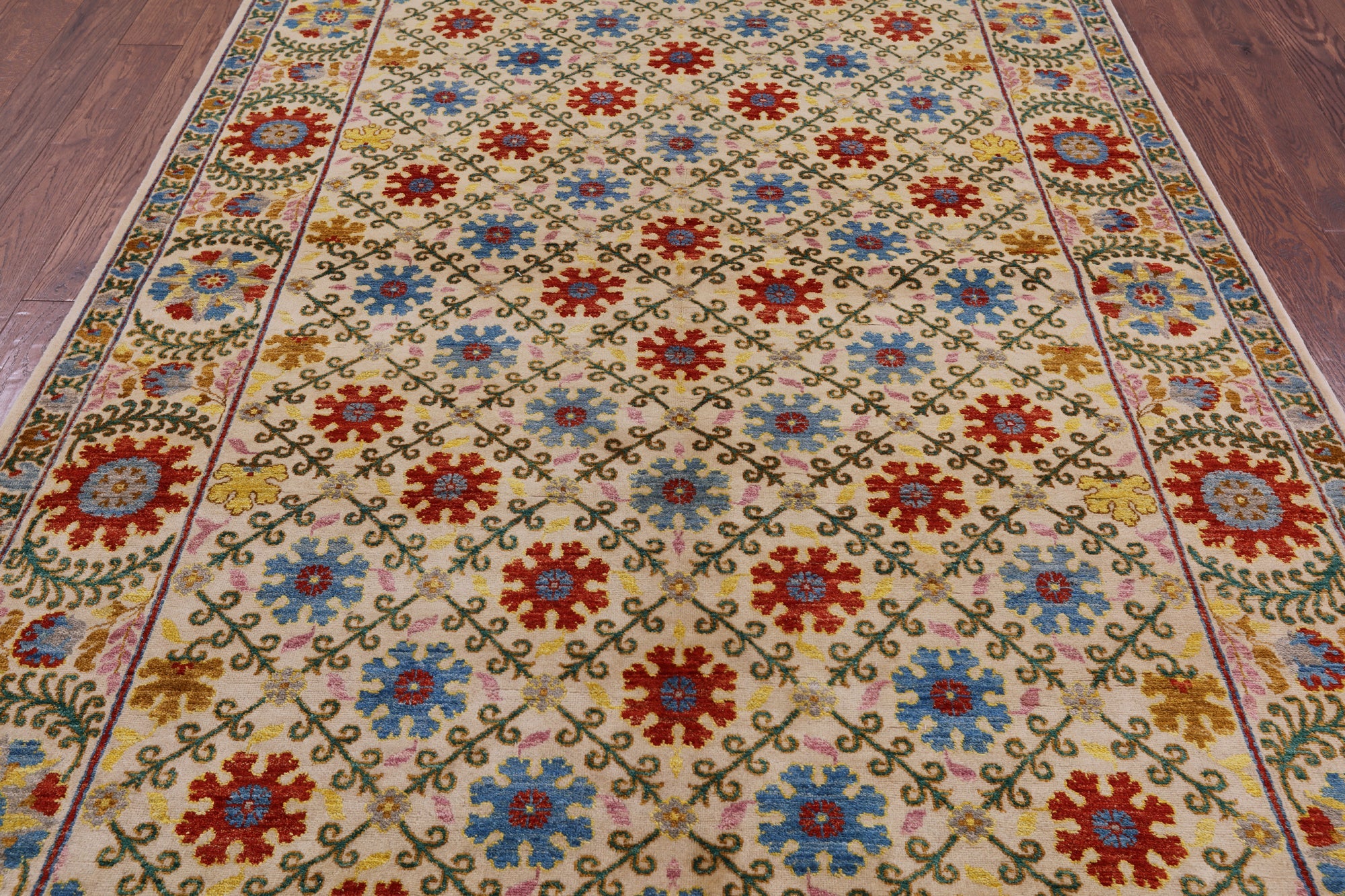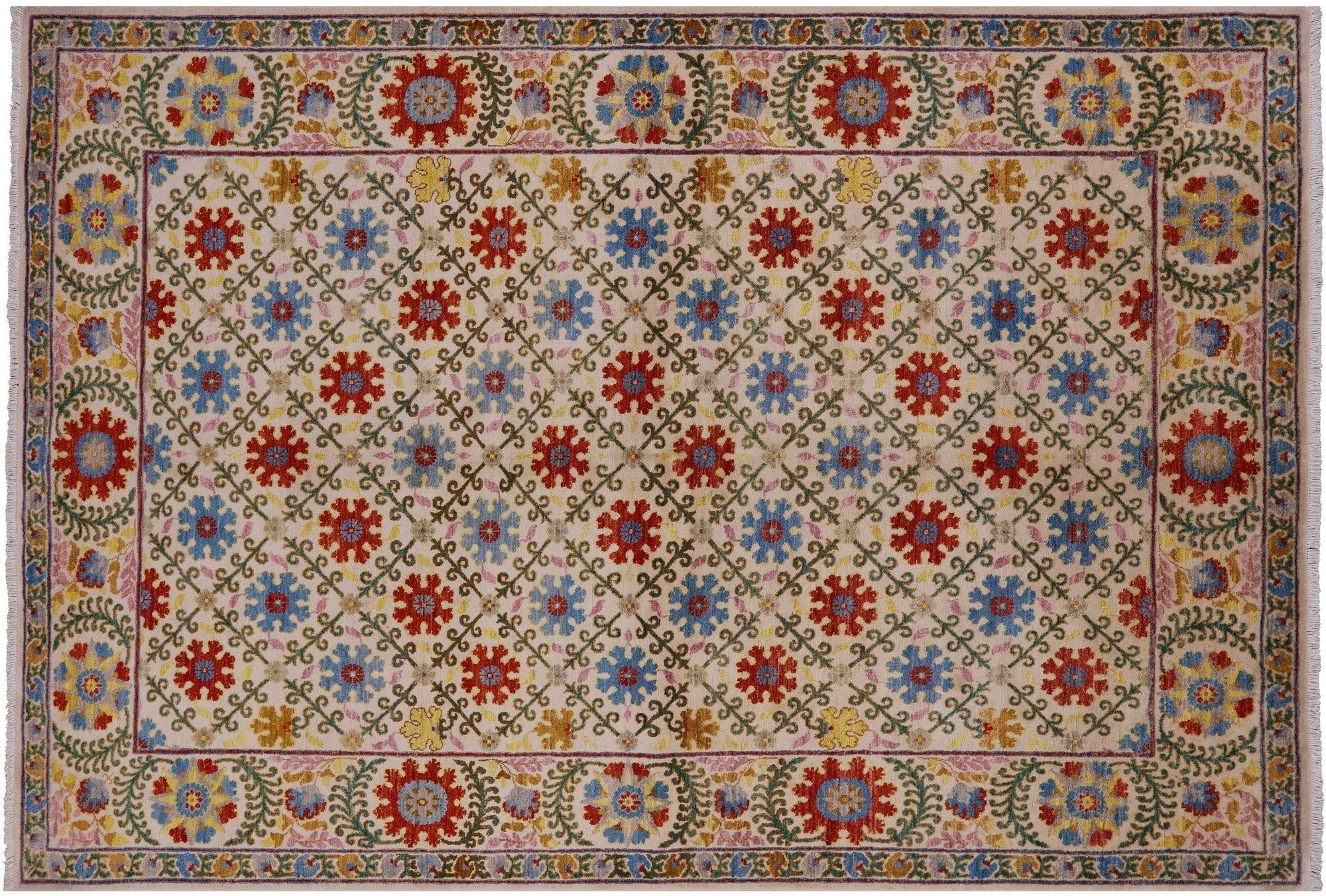 Ivory Handmade William Morris Wool Rug 5' 11" X 9' 1" - P7106