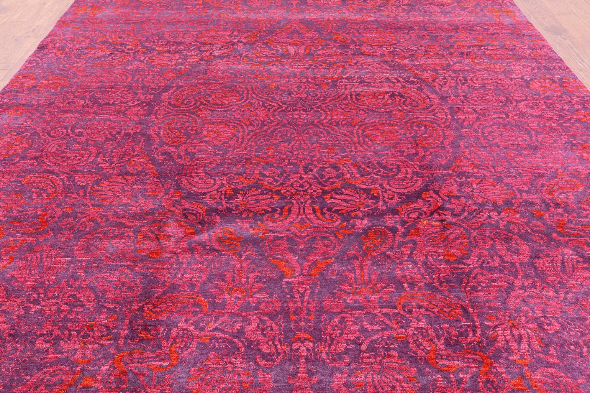 Purple 9' 0" X 11' 10" Hand Knotted William Morris Area Rug - P6889