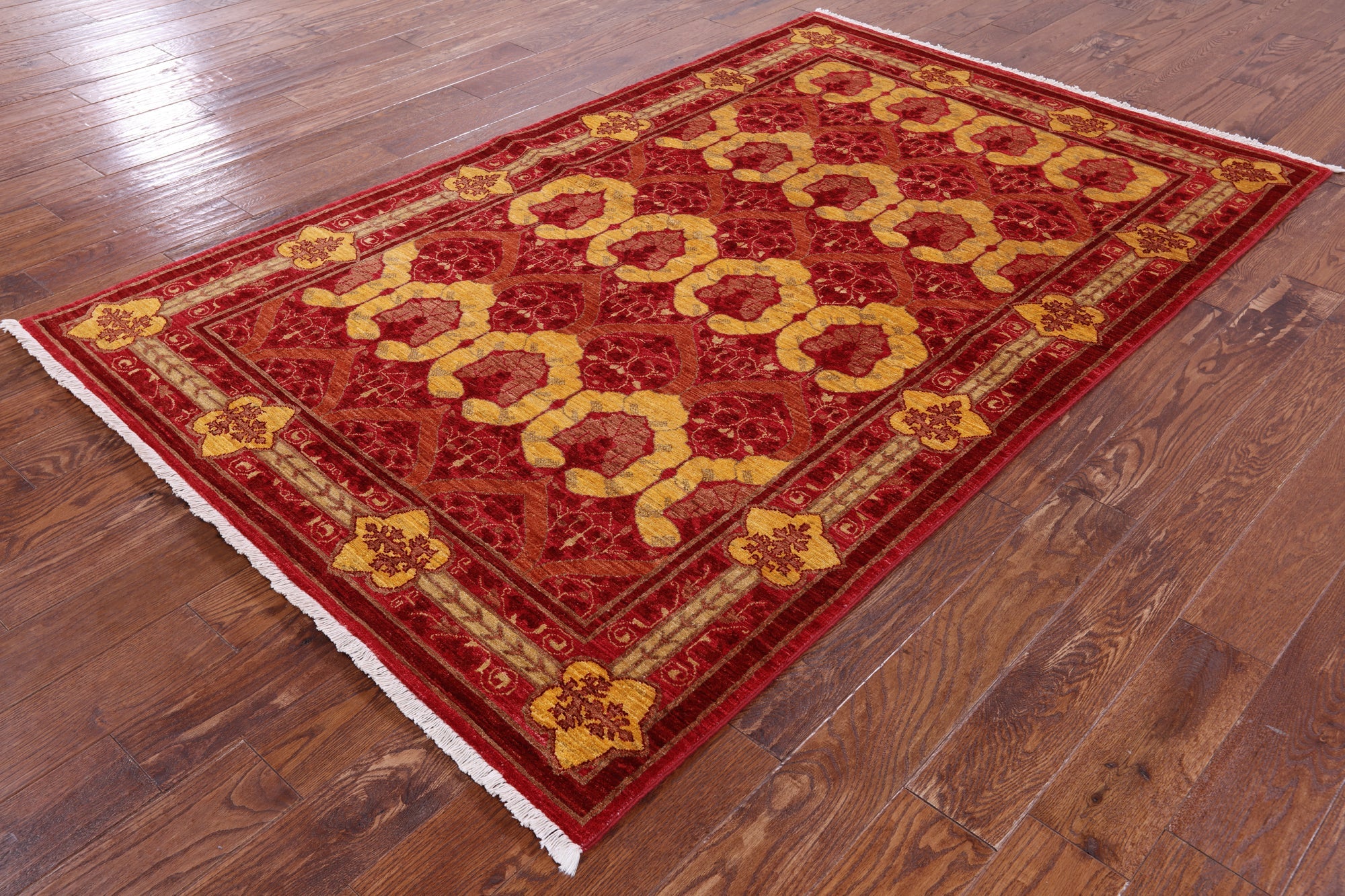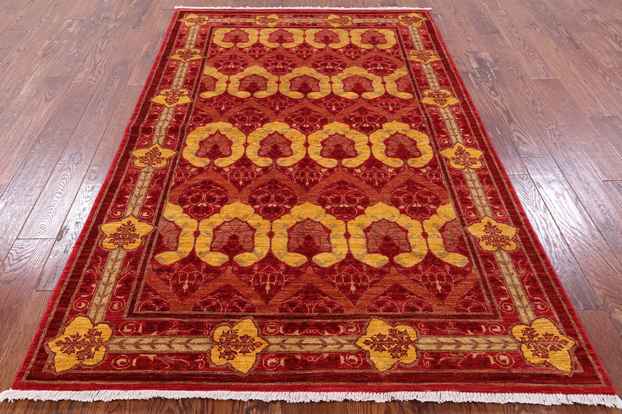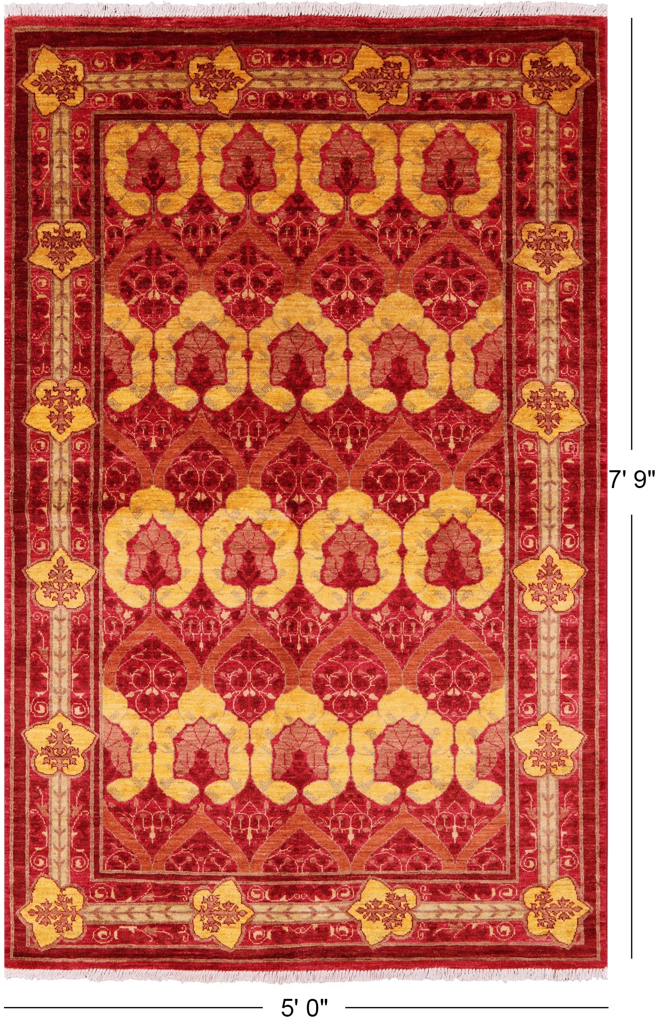 Red 5' 0" X 7' 9" William Morris Hand Knotted Area Rug - P4971