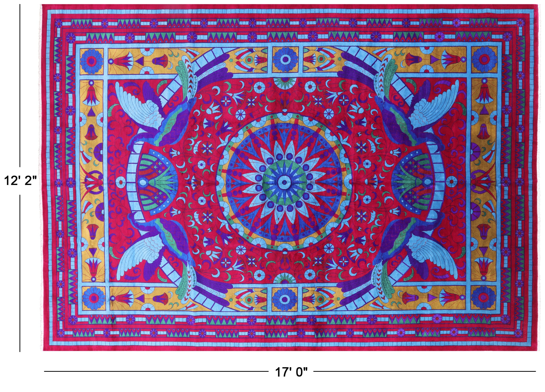 Red 12' 2" X 17' 0" William Morris Hand Knotted Rug - P6814