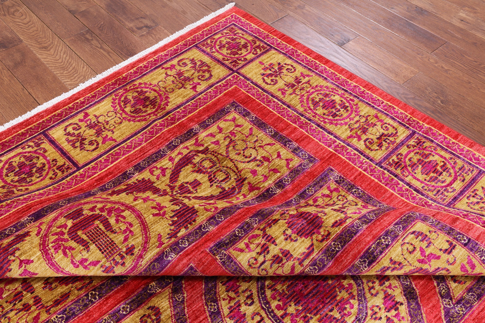 William Morris design are part of arts and crafts movement often including natural forms. These 19th and early 20th century designs are distinctive for their stylized natural forms, their symmetry and their vibrant colors. William Morris patterns are based on nature such thistles, ginkgo leaves, willow trees and flowers. These modern hand knotted rugs are woven with high quality wool, silk or both.