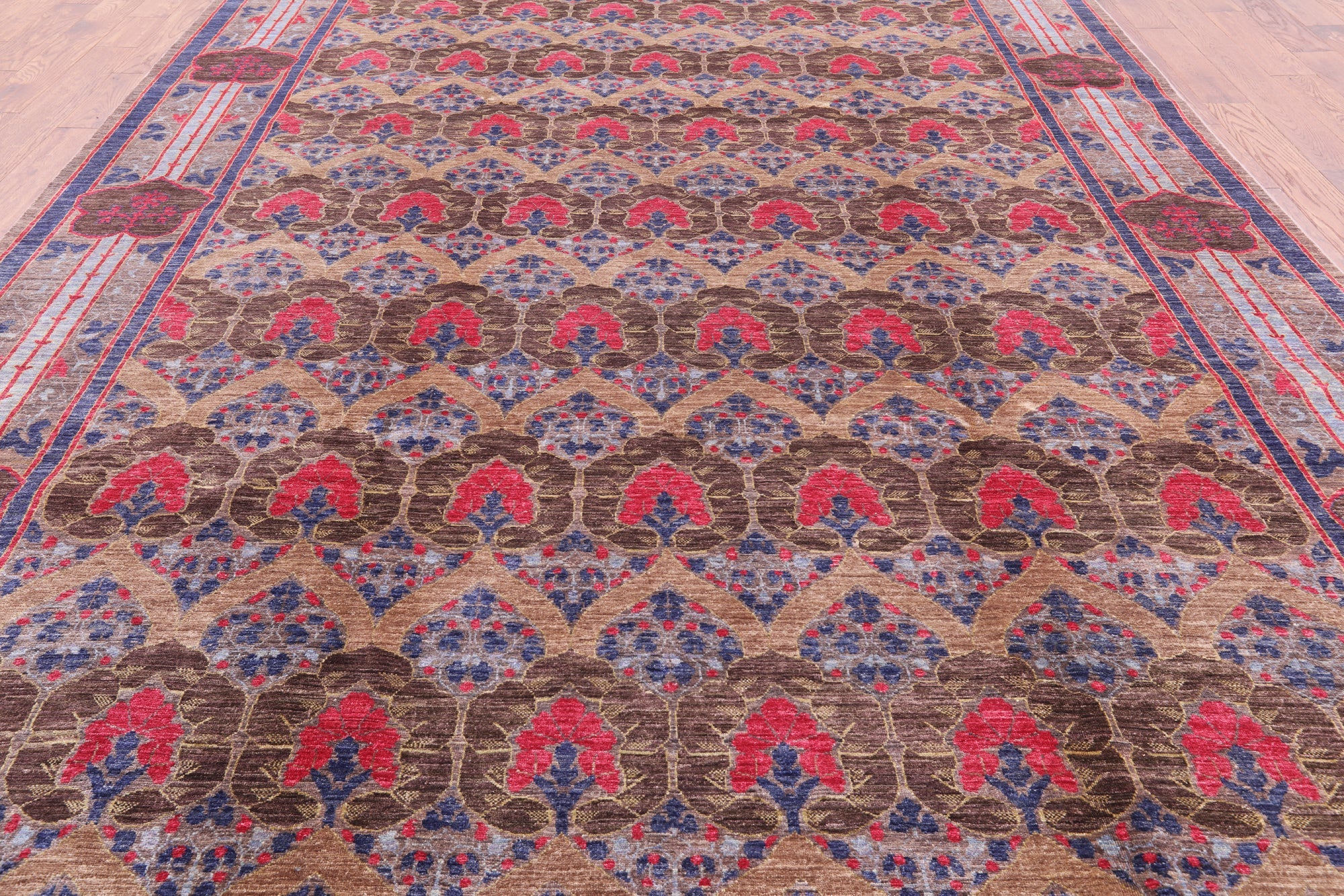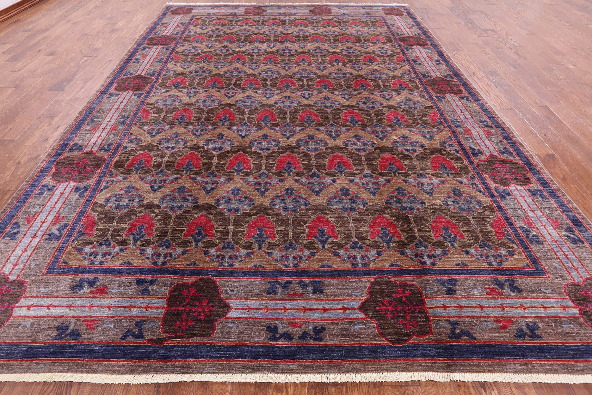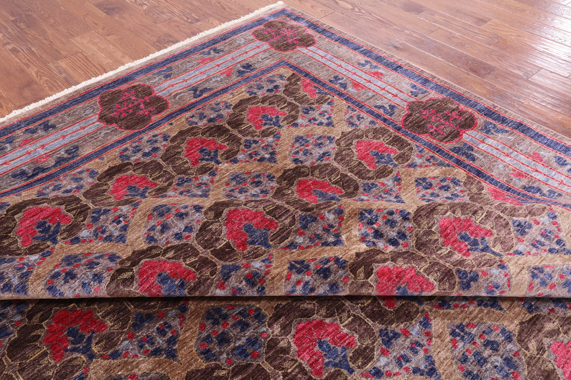 William Morris design are part of arts and crafts movement often including natural forms. These 19th and early 20th century designs are distinctive for their stylized natural forms, their symmetry and their vibrant colors. William Morris patterns are based on nature such thistles, ginkgo leaves, willow trees and flowers. These modern hand knotted rugs are woven with high quality wool, silk or both.