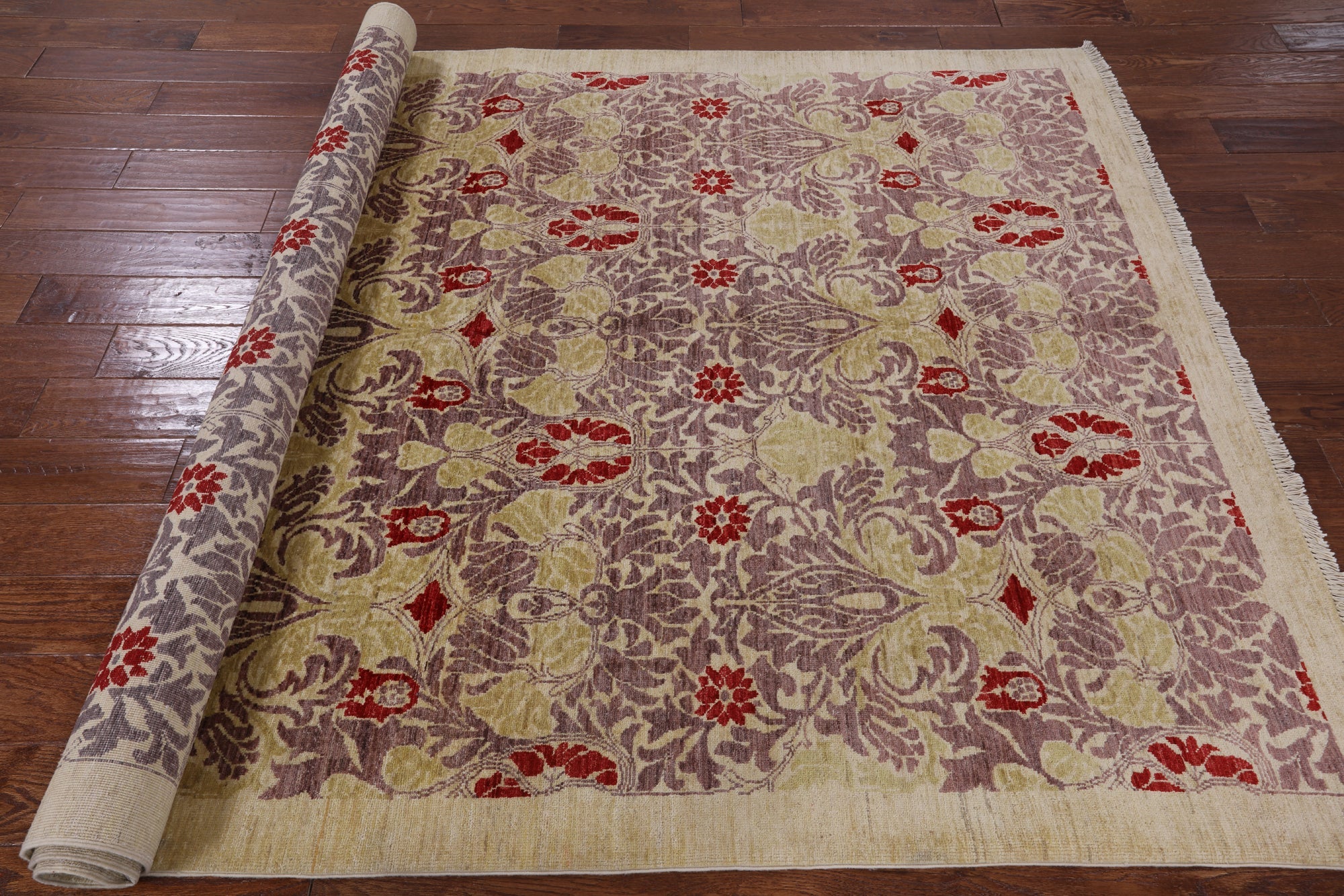 William Morris design are part of arts and crafts movement often including natural forms. These 19th and early 20th century designs are distinctive for their stylized natural forms, their symmetry and their vibrant colors. William Morris patterns are based on nature such thistles, ginkgo leaves, willow trees and flowers. These modern hand knotted rugs are woven with high quality wool, silk or both.