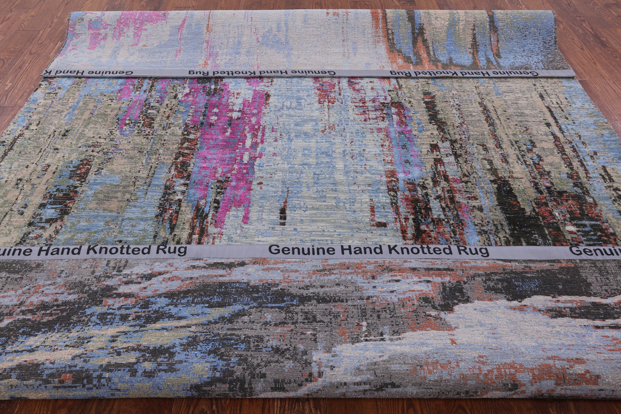 8' 1" X 10' 4" Abstract Hand Knotted Wool & Silk Rug - Q8551 is backordered and will ship as soon as it is back in stock.