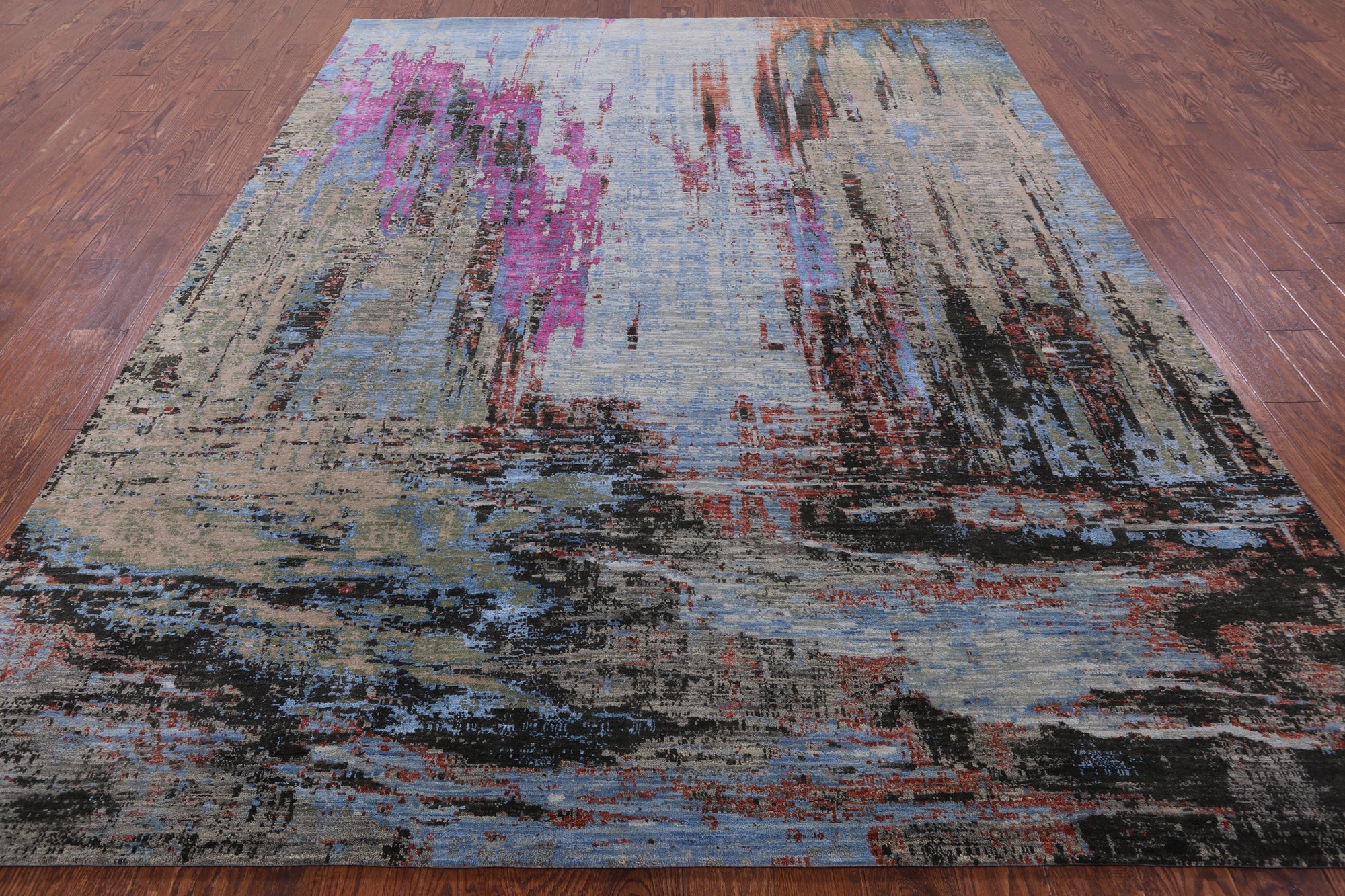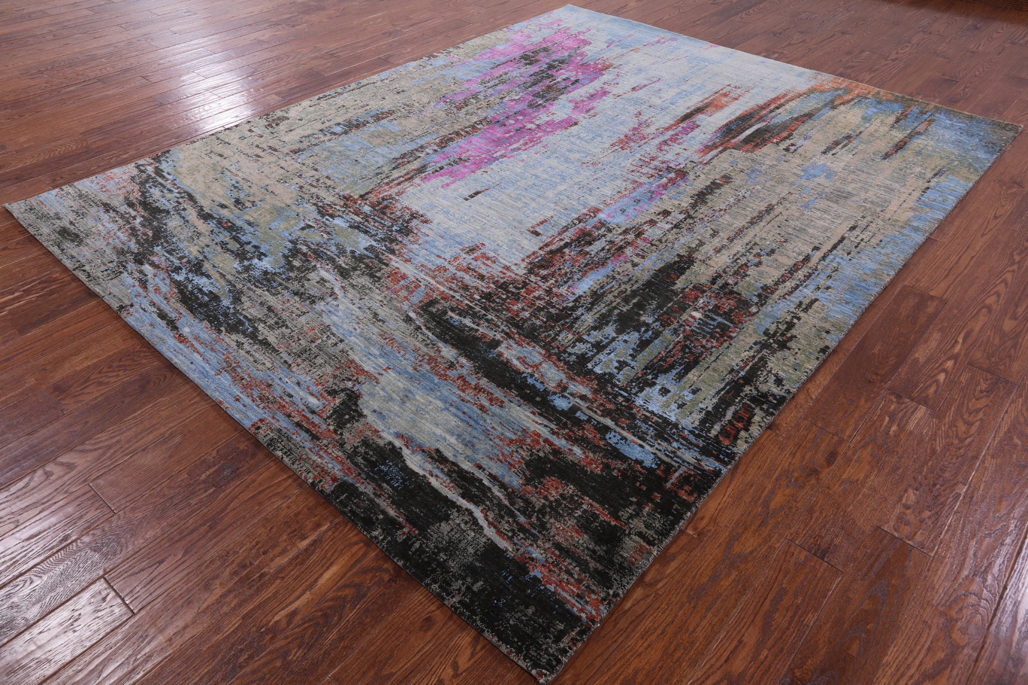 8' 1" X 10' 4" Abstract Hand Knotted Wool & Silk Rug - Q8551
