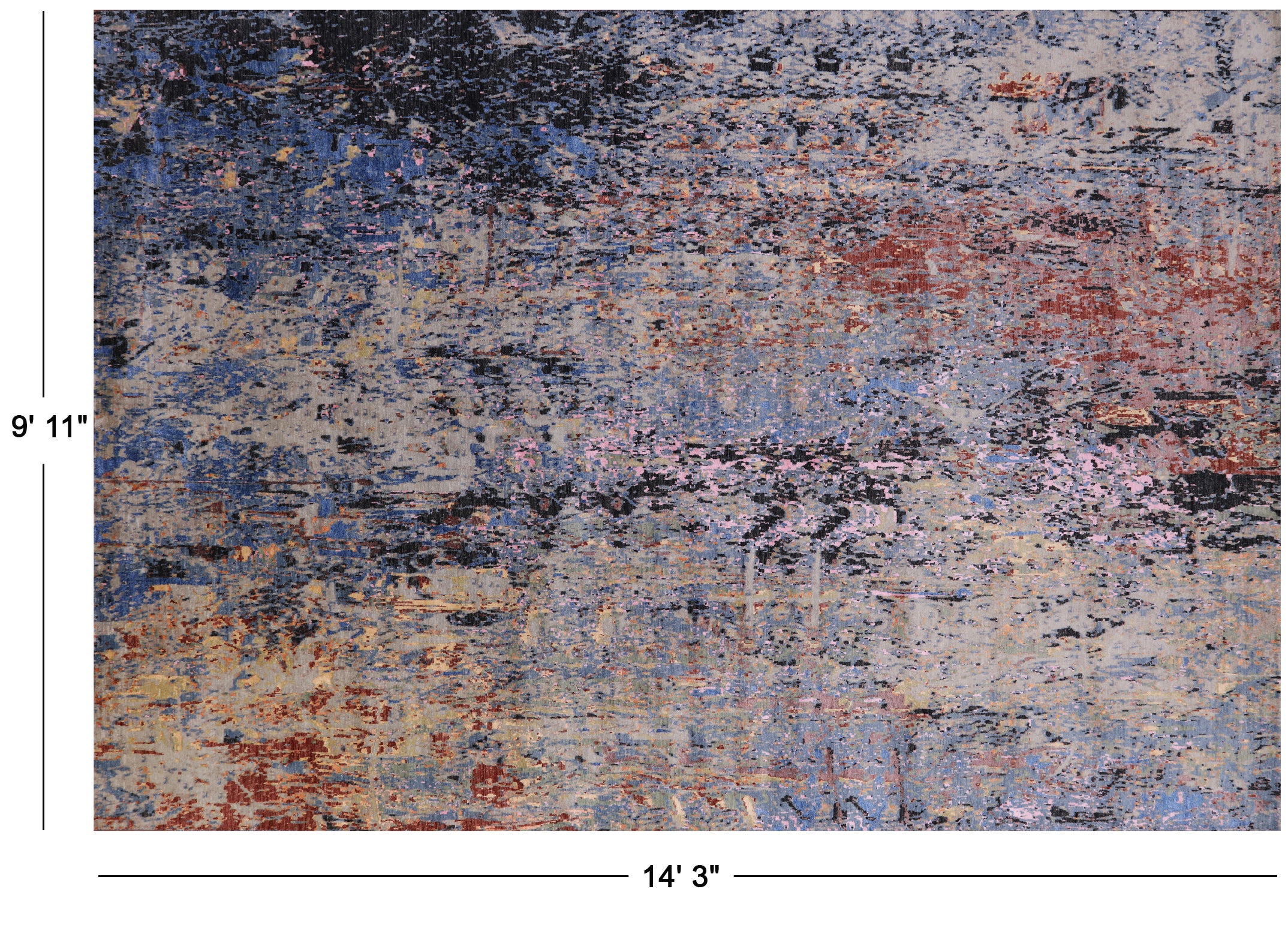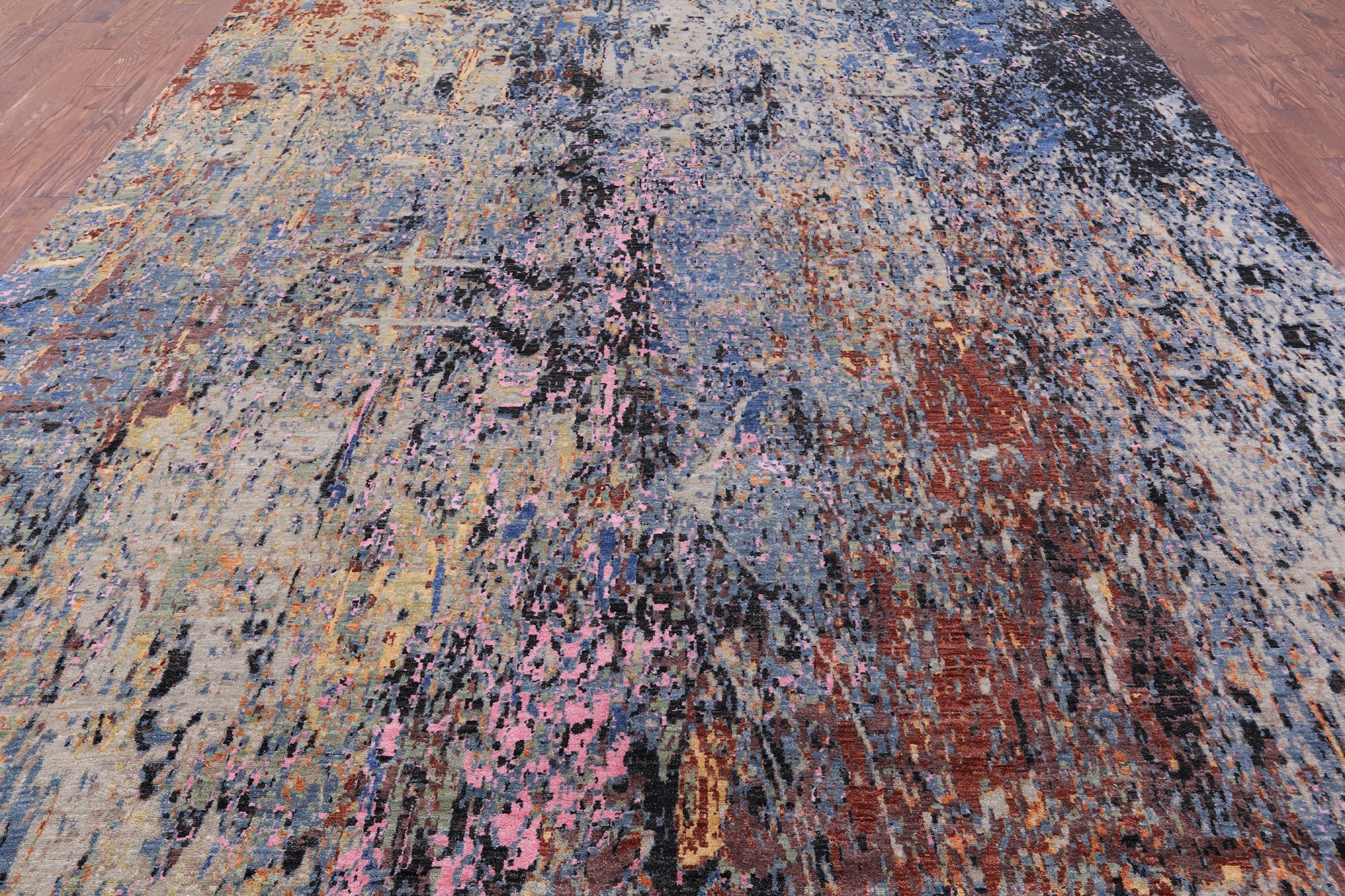 9' 11" X 14' 3" Abstract Hand Knotted Wool & Silk Rug - Q8861