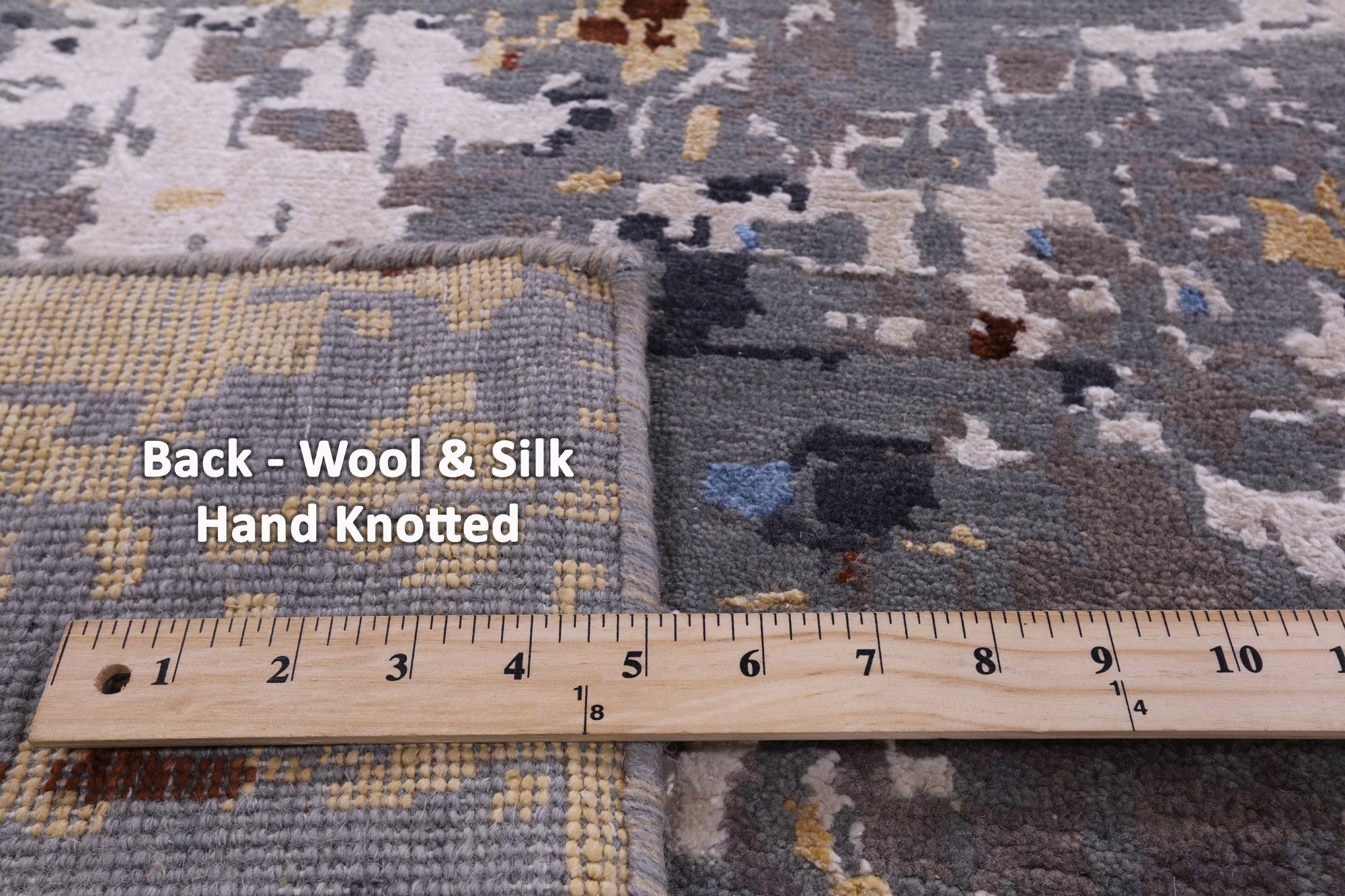 Abstract Modern Wool & Silk Hand Knotted Rug 8' 11" X 12' 2" - Q21179