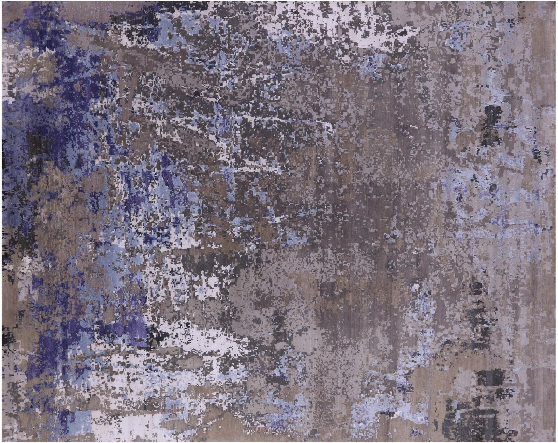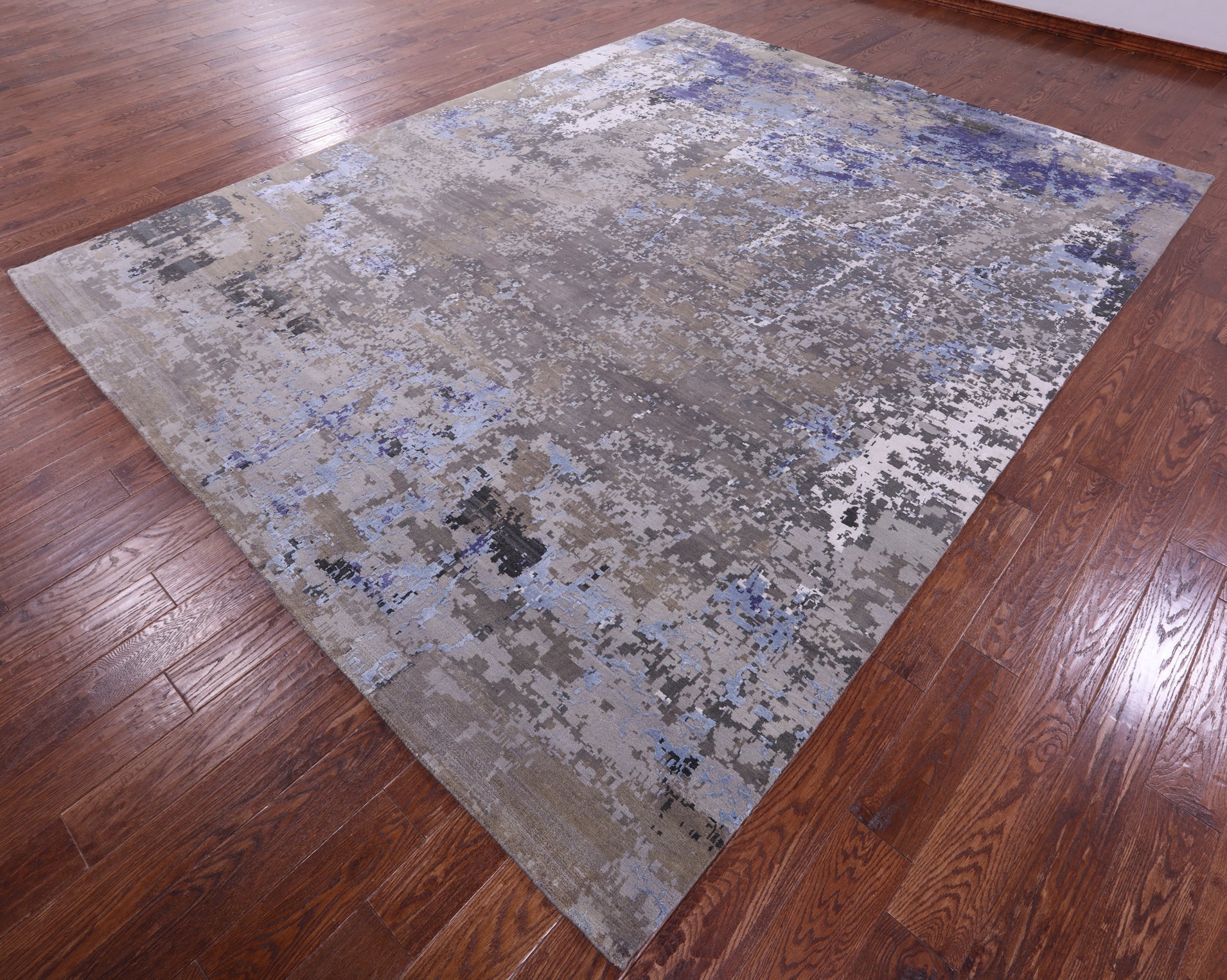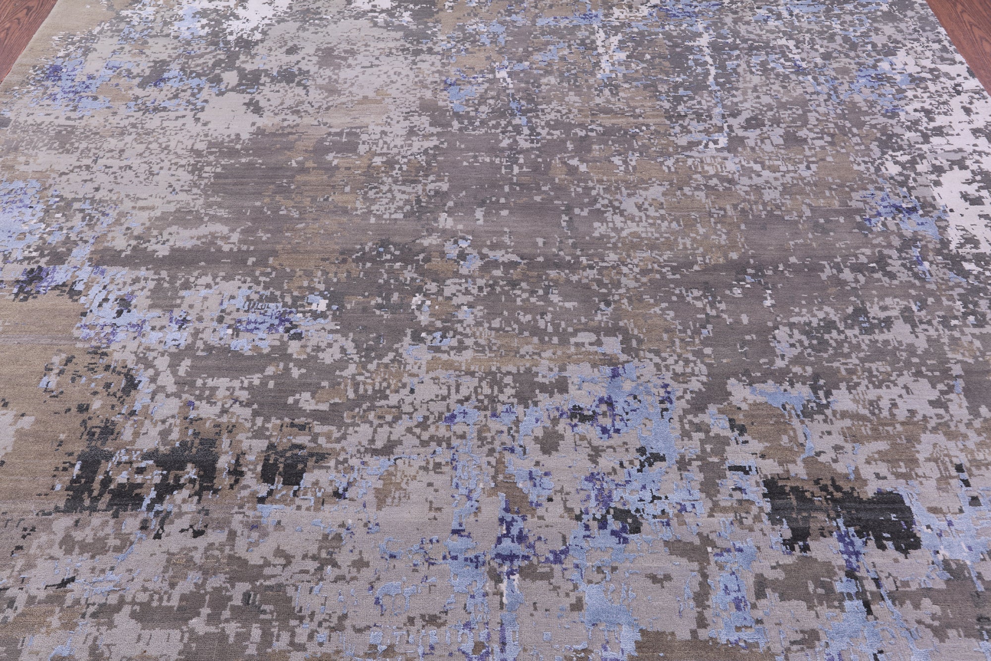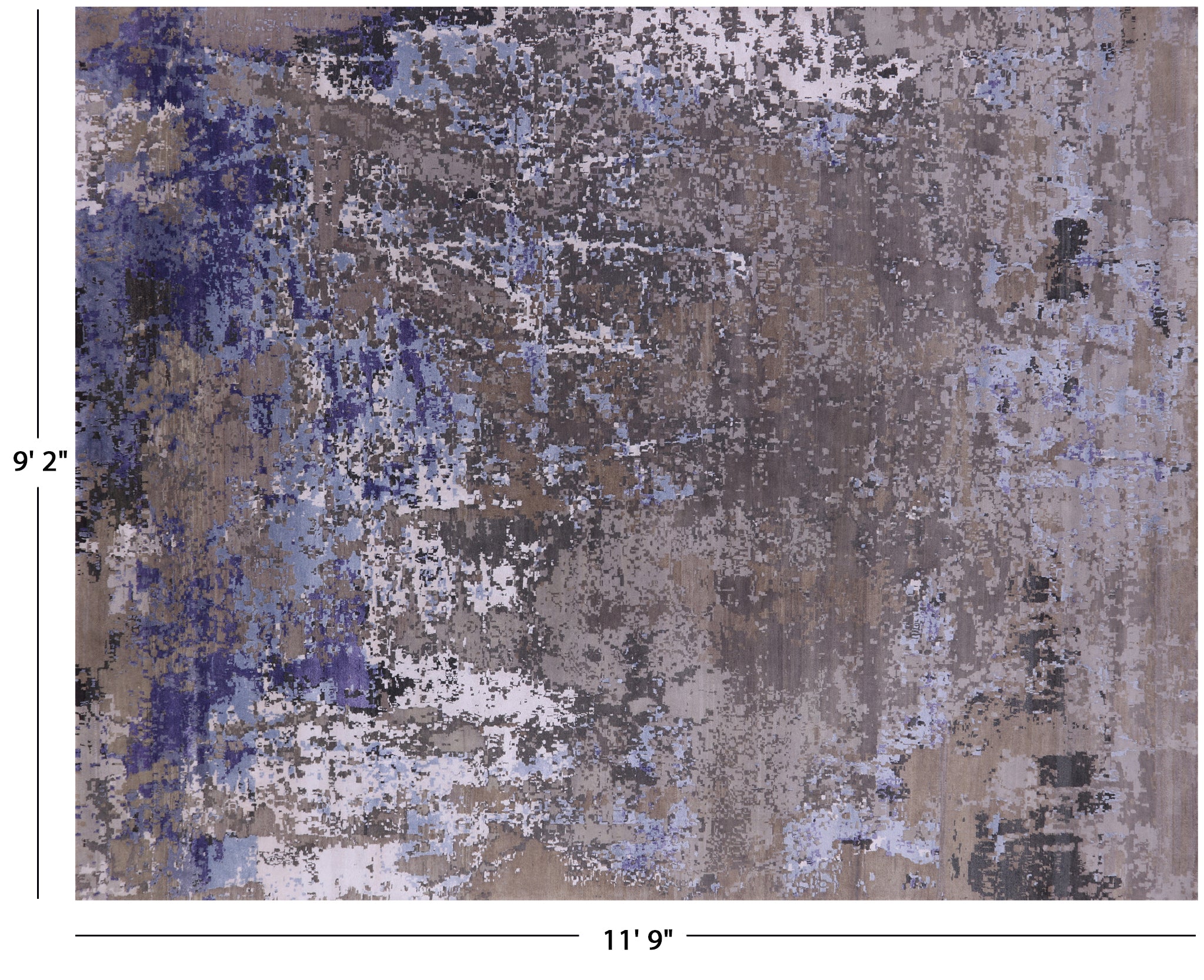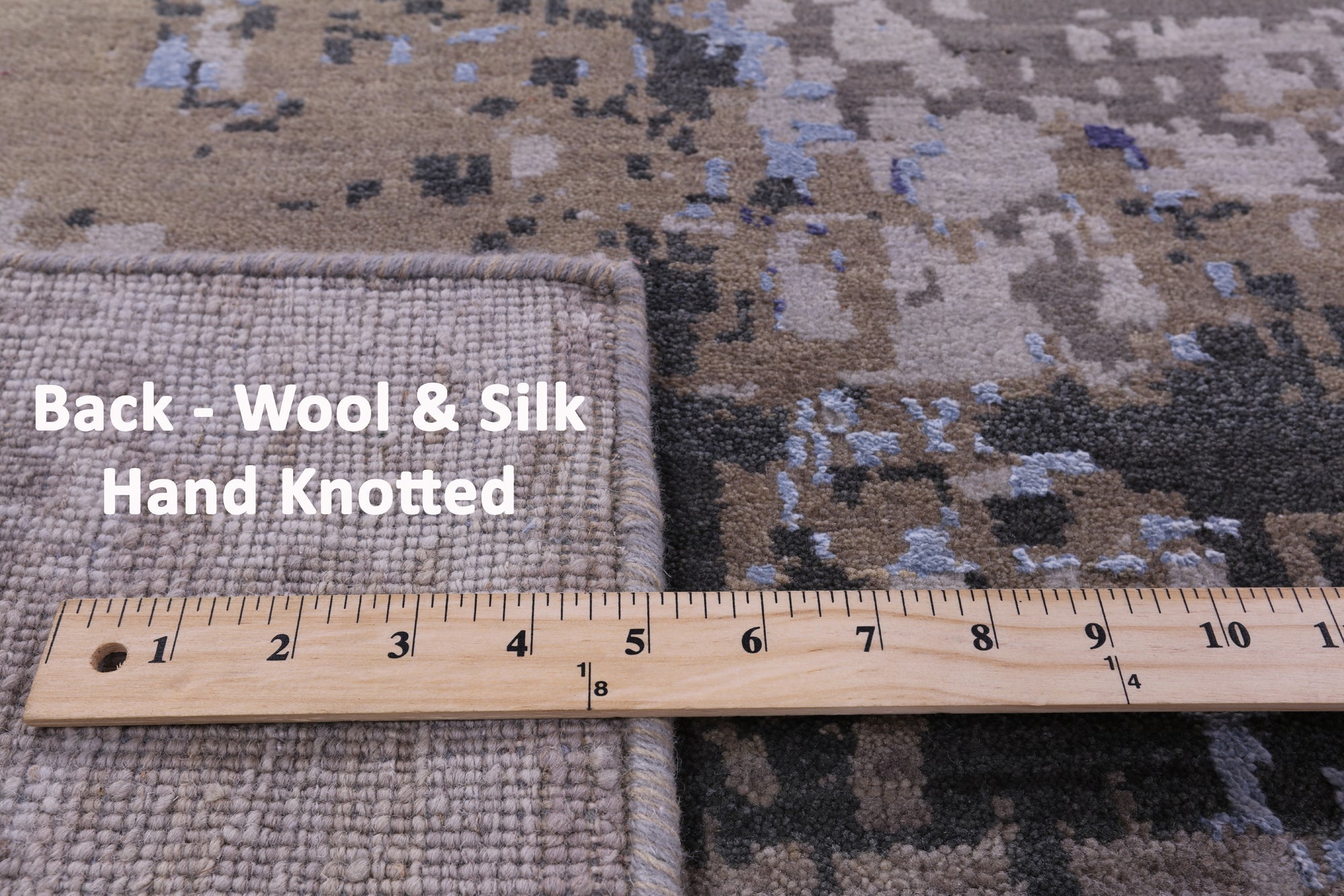Abstract Modern Wool & Silk Hand Knotted Rug 9' 2" X 11' 9" - Q21181