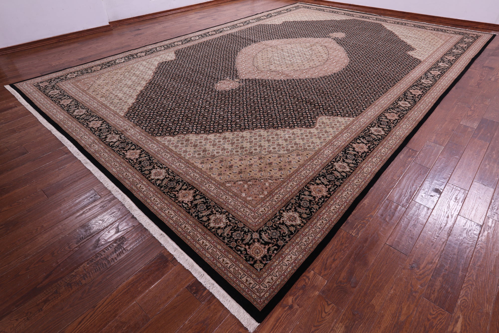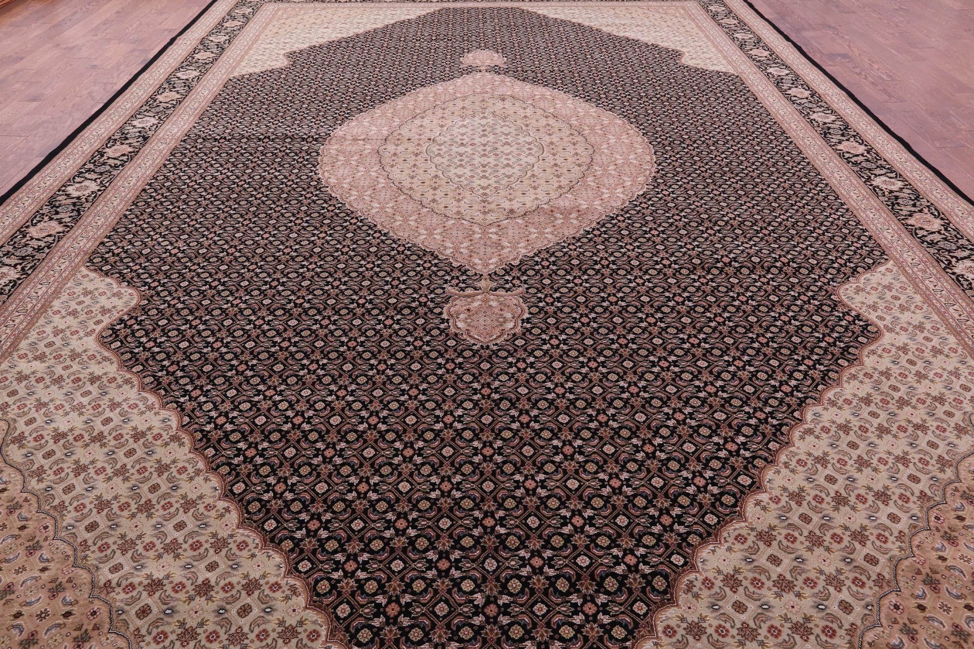 Black Persian Tabriz Handmade Wool & Silk Rug 12' 3" X 18' 2" - Q23671