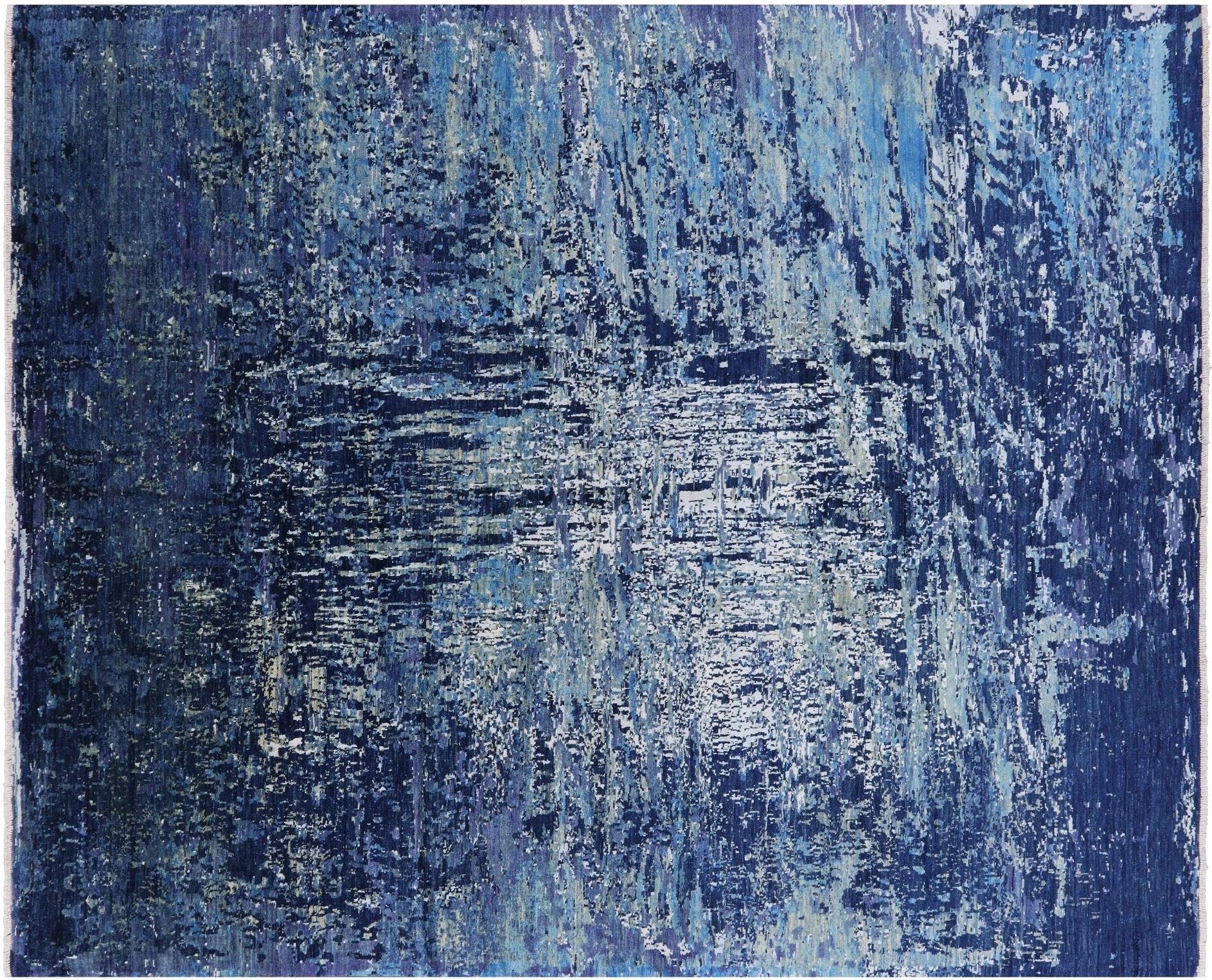 Blue 8' 2" X 9' 10" Abstract Wool & Silk Hand Knotted Rug - Q4428