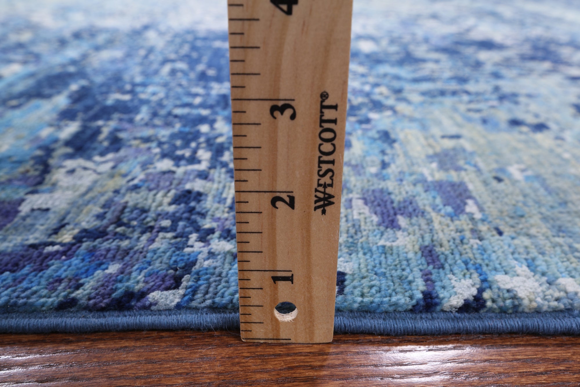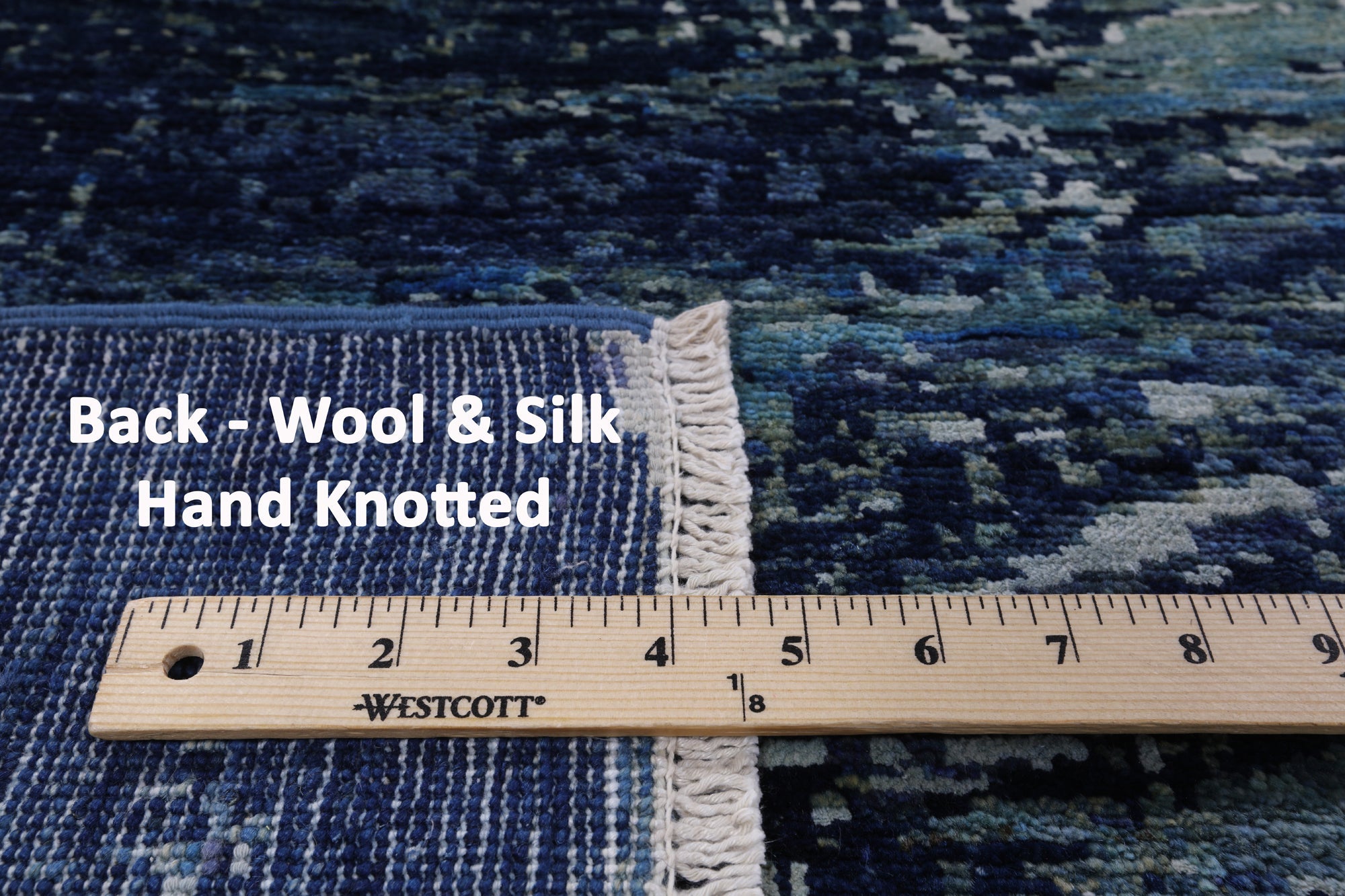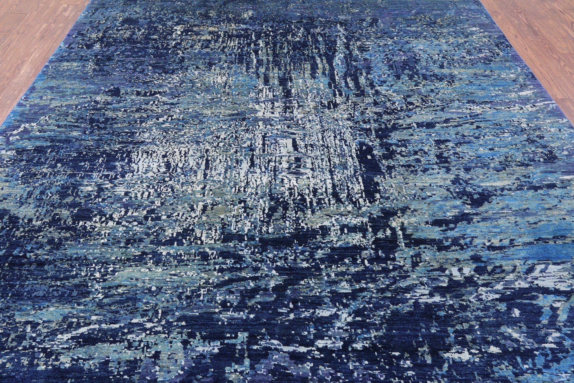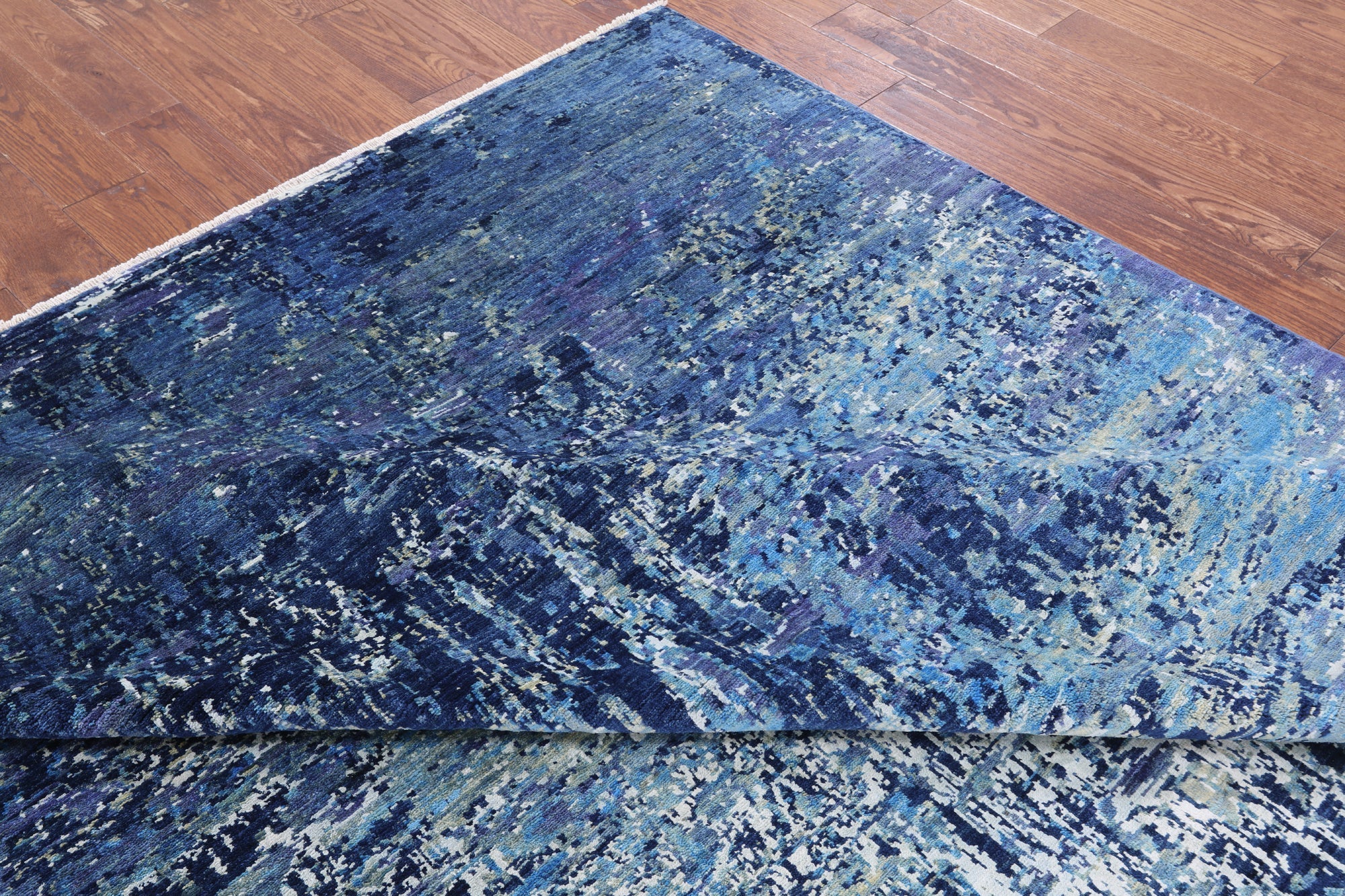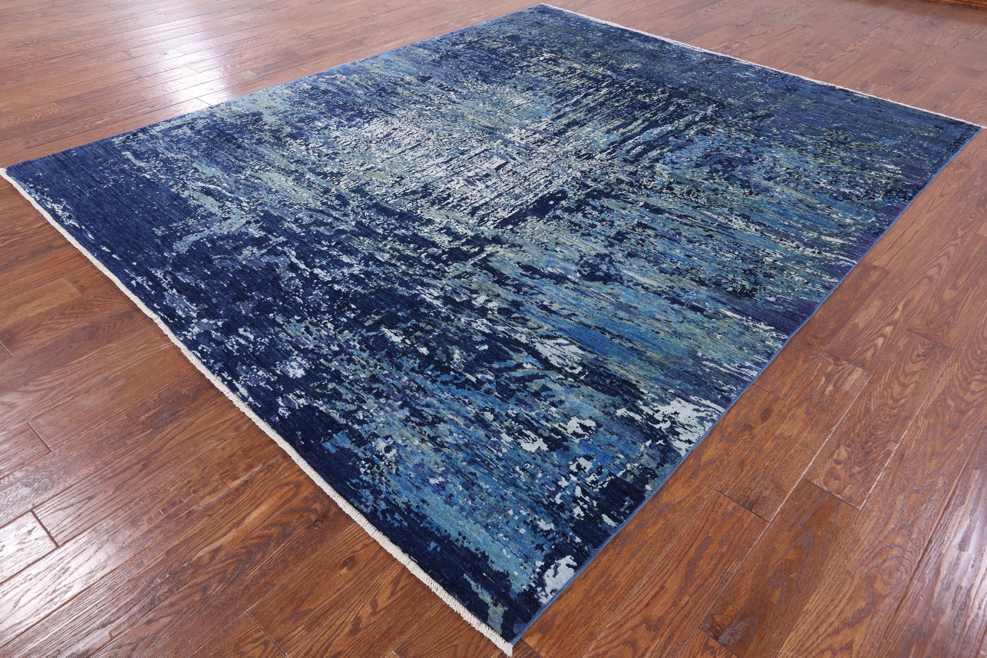 Blue 8' 2" X 9' 10" Abstract Wool & Silk Hand Knotted Rug - Q4428 is backordered and will ship as soon as it is back in stock.