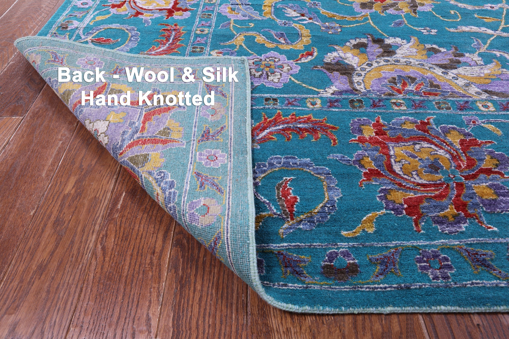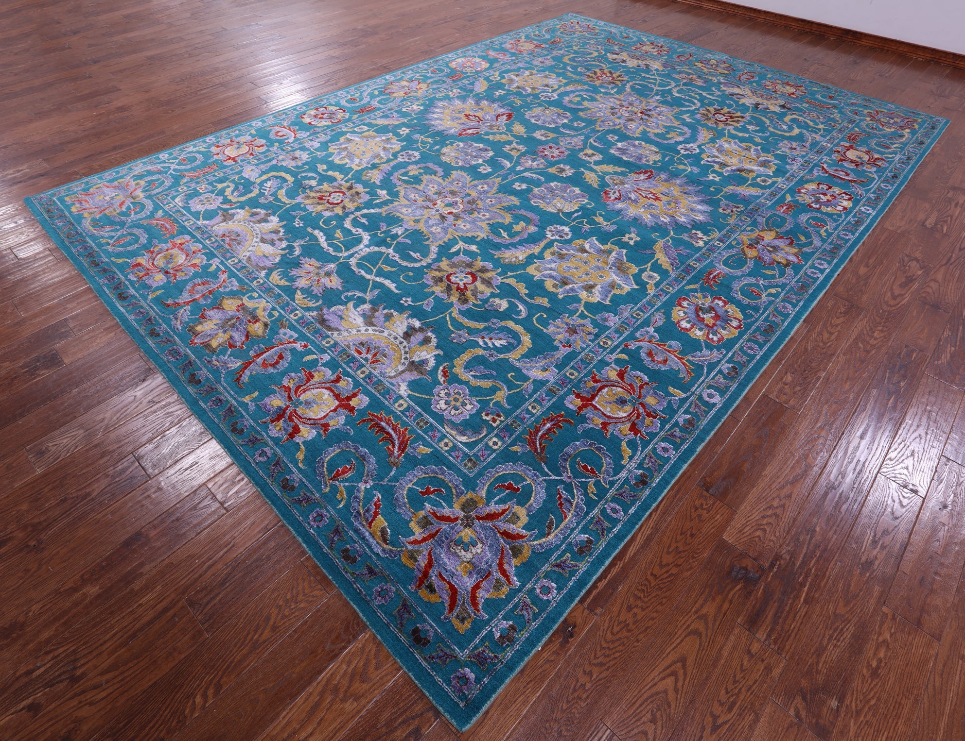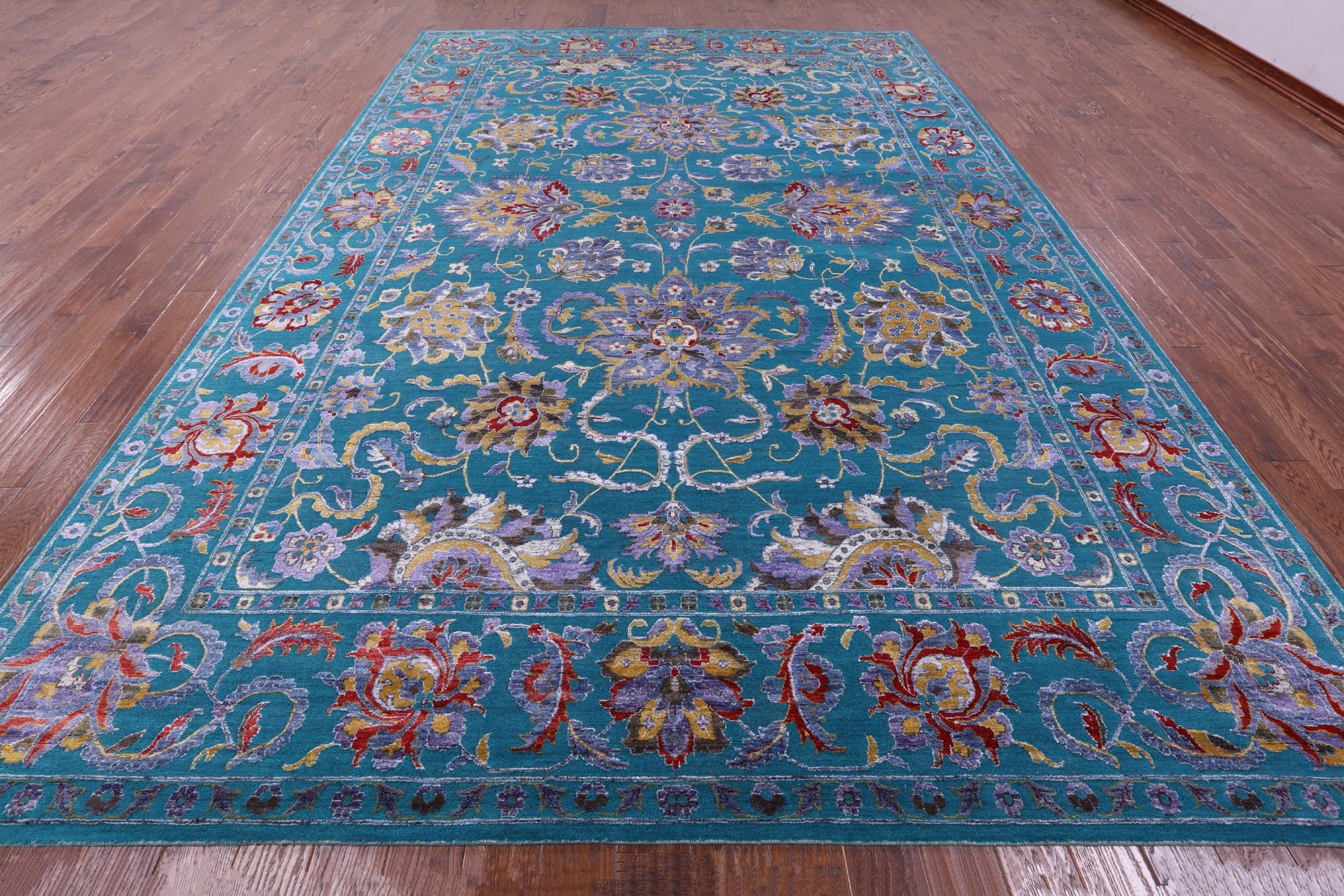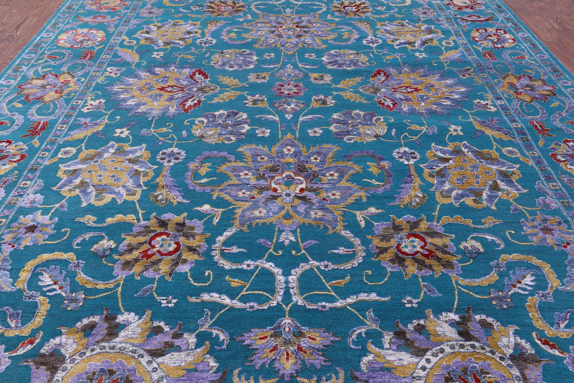 Blue/Green 9' 10" X 14' 2" Persian Tabriz Hand Knotted Wool & Silk Rug - Q22601 is backordered and will ship as soon as it is back in stock.