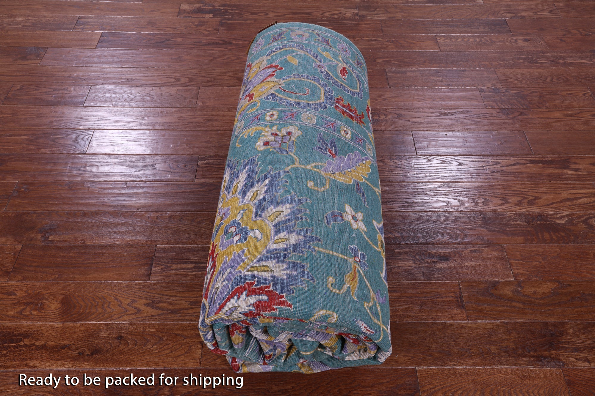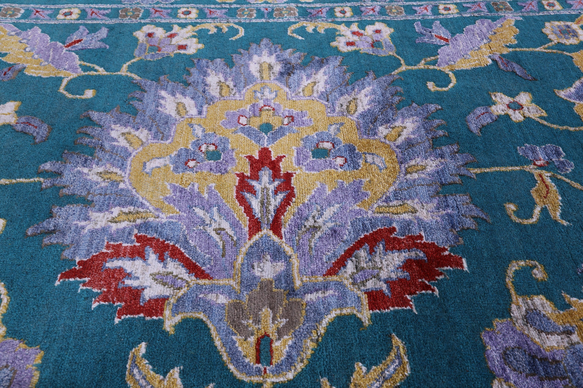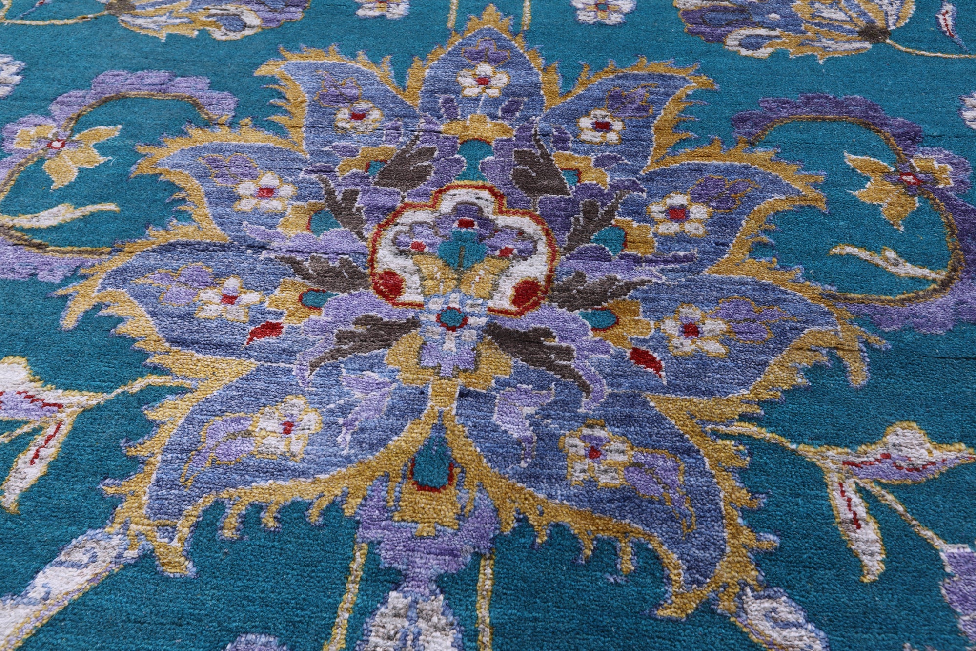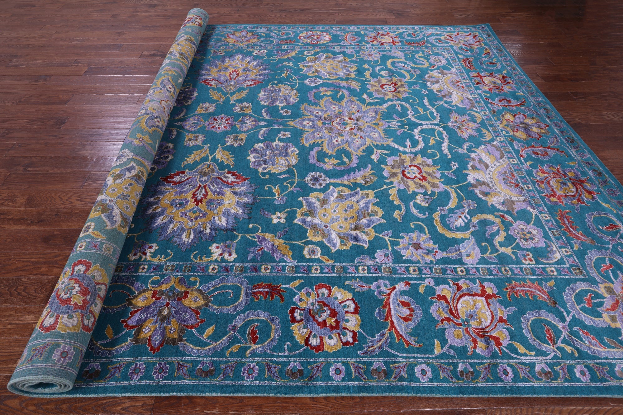 Blue/Green 9' 10" X 14' 2" Persian Tabriz Hand Knotted Wool & Silk Rug - Q22601 is backordered and will ship as soon as it is back in stock.