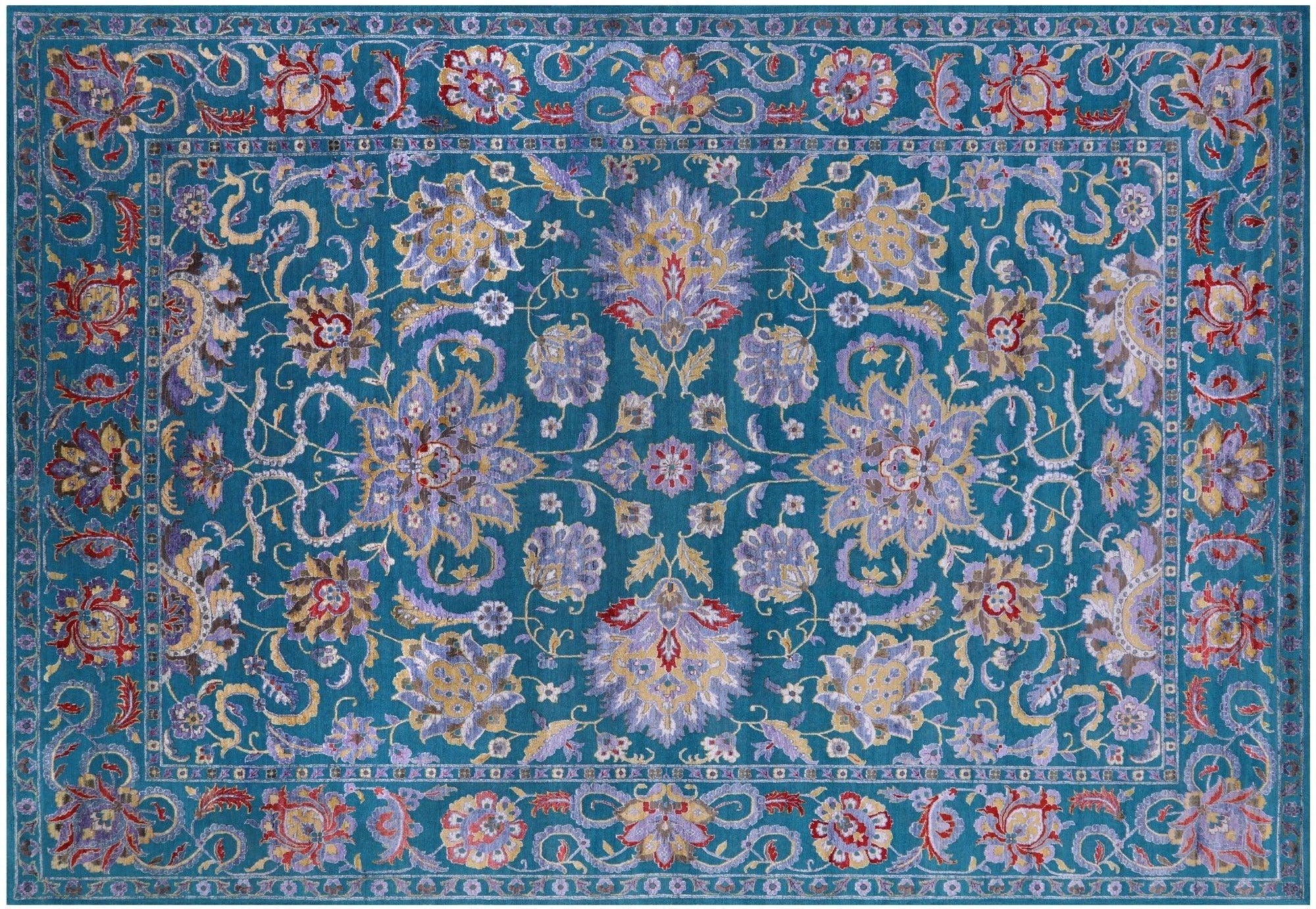 Blue/Green 9' 10" X 14' 2" Persian Tabriz Hand Knotted Wool & Silk Rug - Q22601