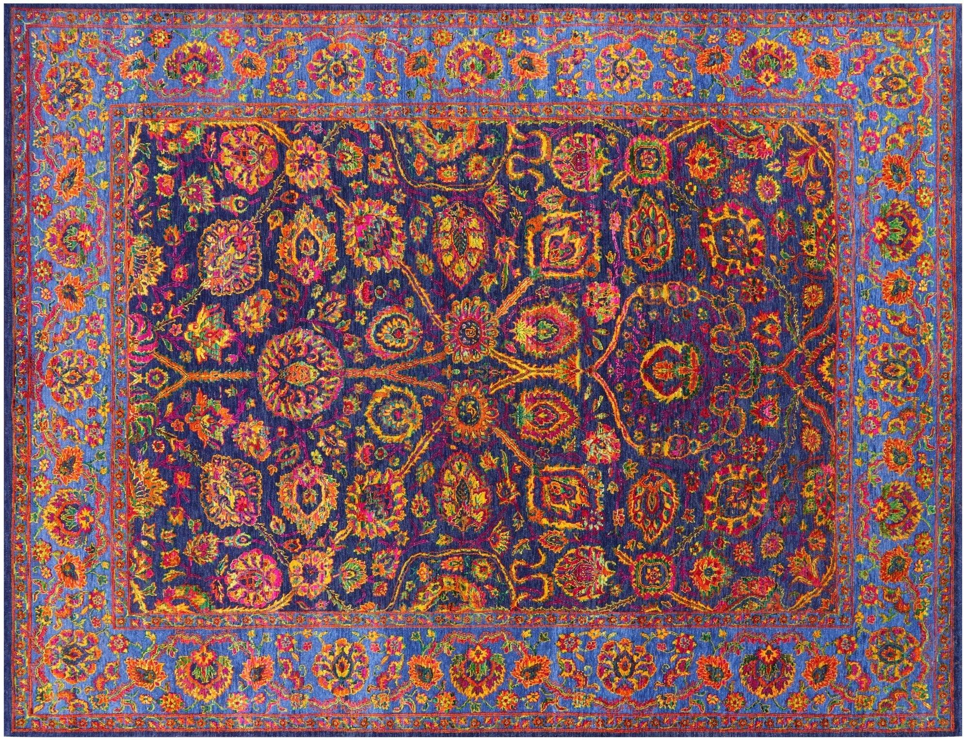 Blue Hand Knotted Persian Tabriz Wool & Silk Rug 9' 0" X 11' 10" - Q19218