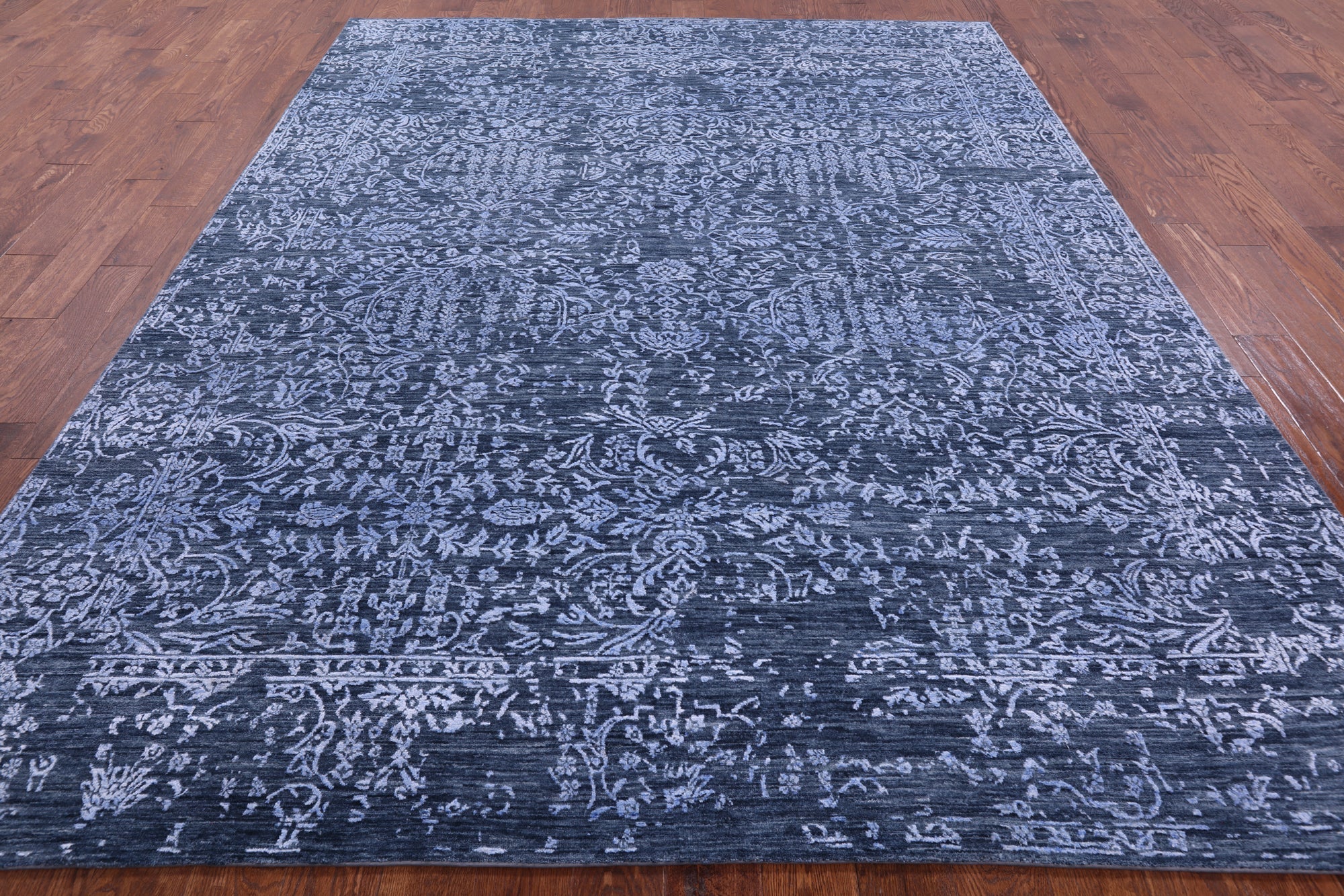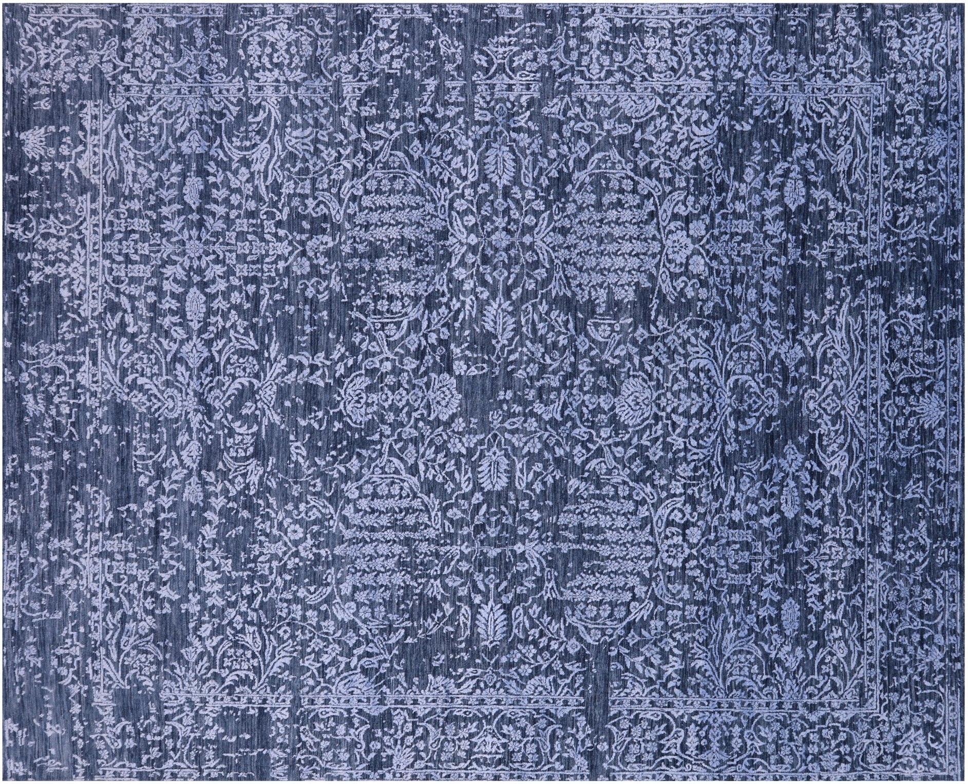 Blue Hand Knotted Wool & Silk Persian Rug 7' 11" X 10' 0" - Q6298