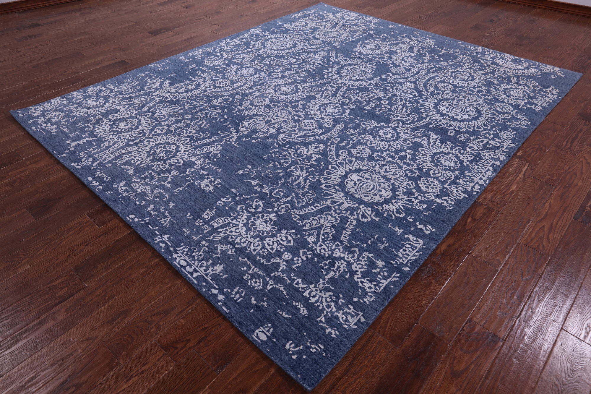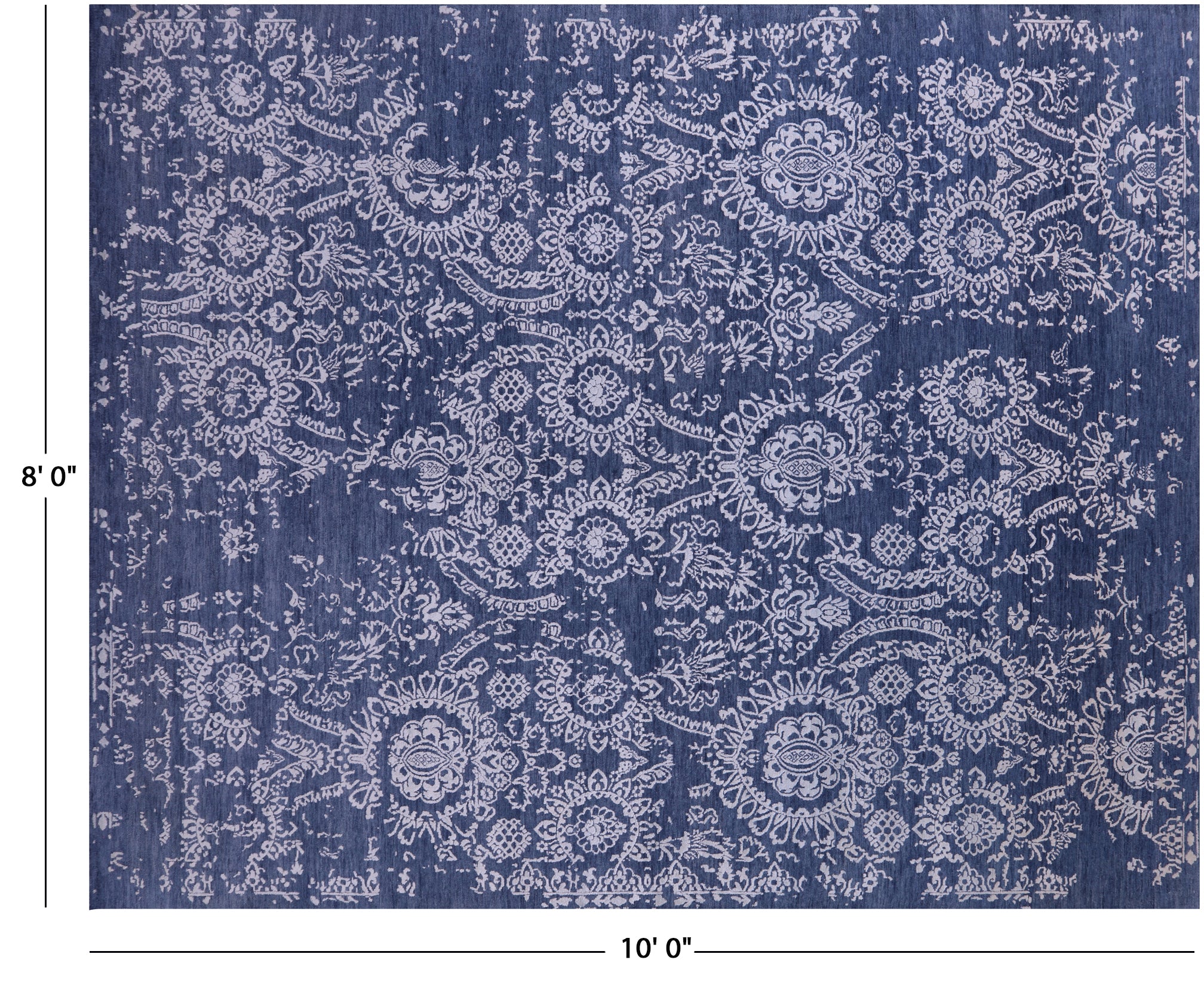 Blue Handmade Persian Tabriz Wool & Silk Rug 8' 0" X 10' 0" - Q21635