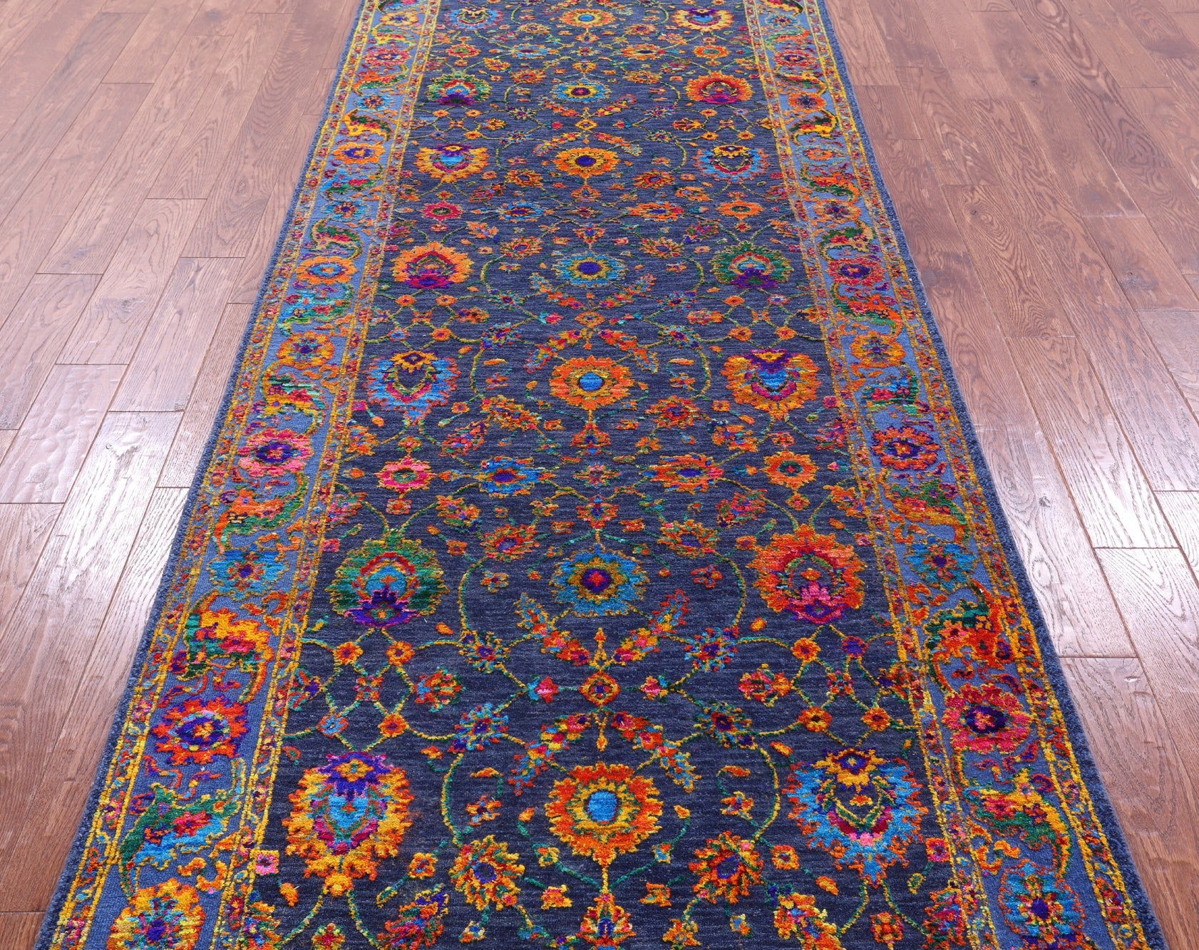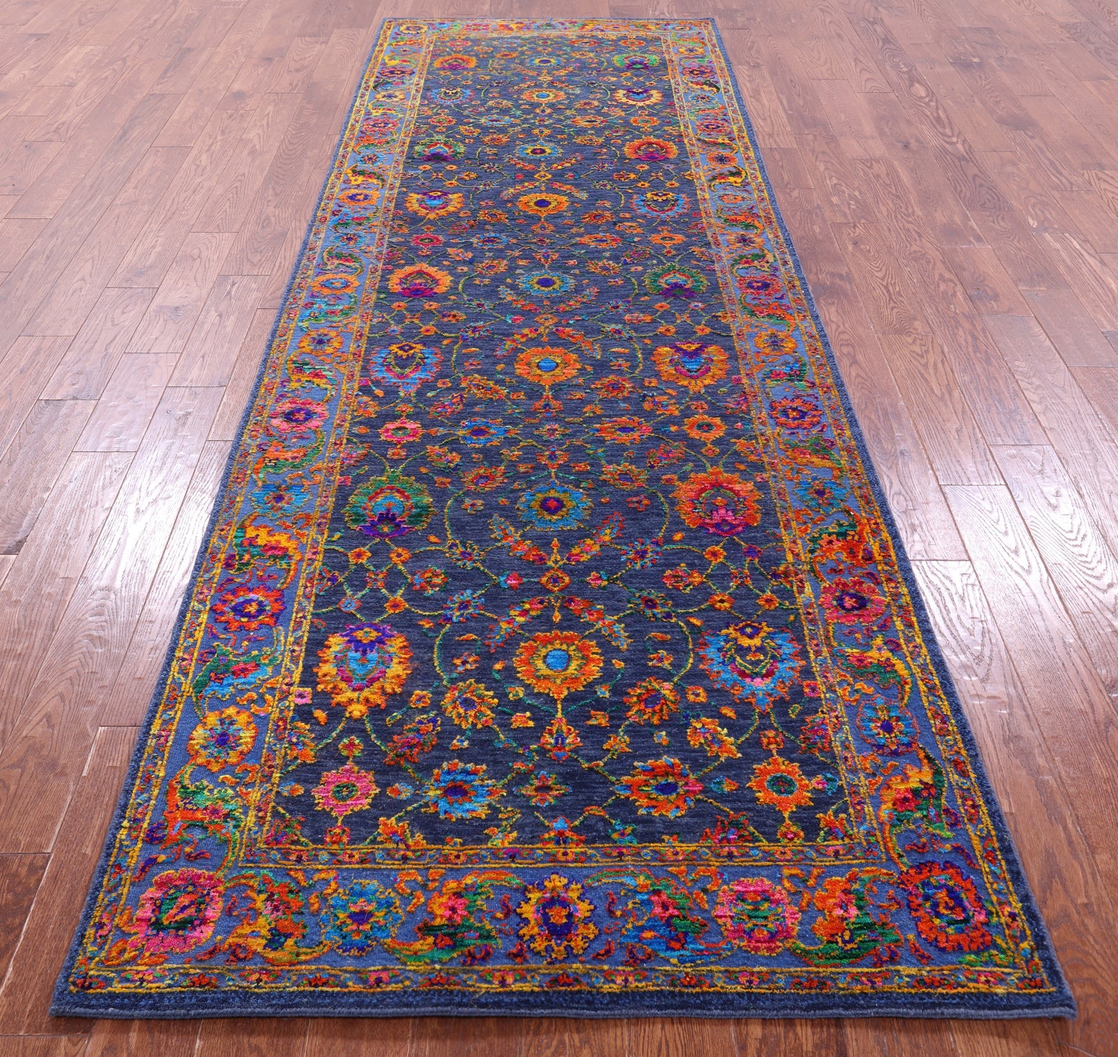 Blue 4' 1" X 12' 2" Handmade Persian Tabriz Wool & Silk Runner Rug - Q22113 is backordered and will ship as soon as it is back in stock.