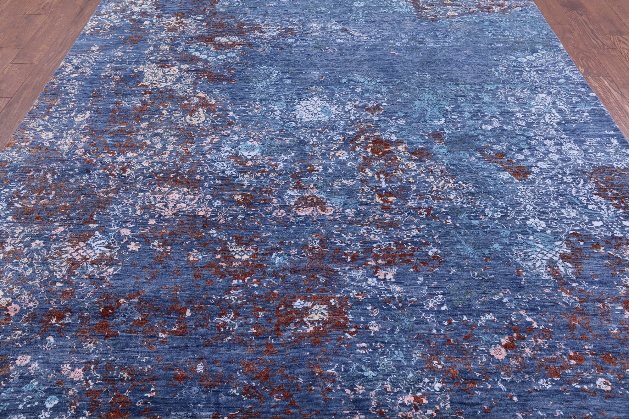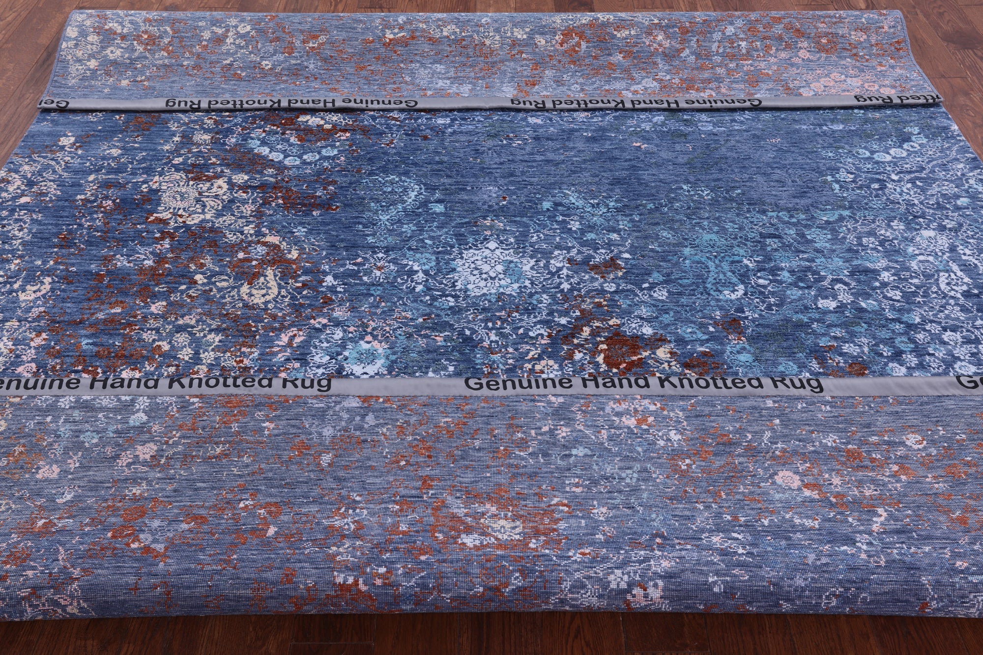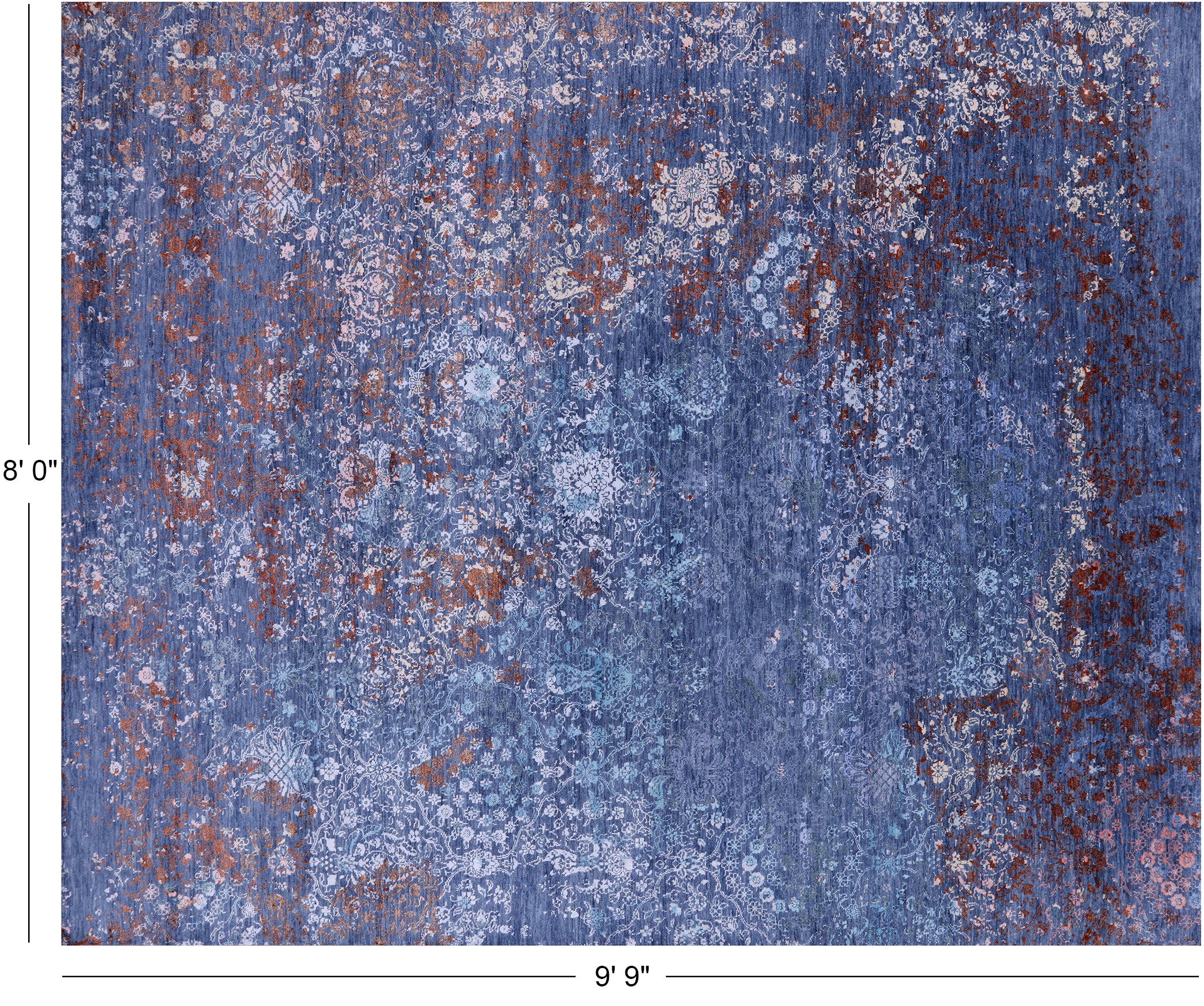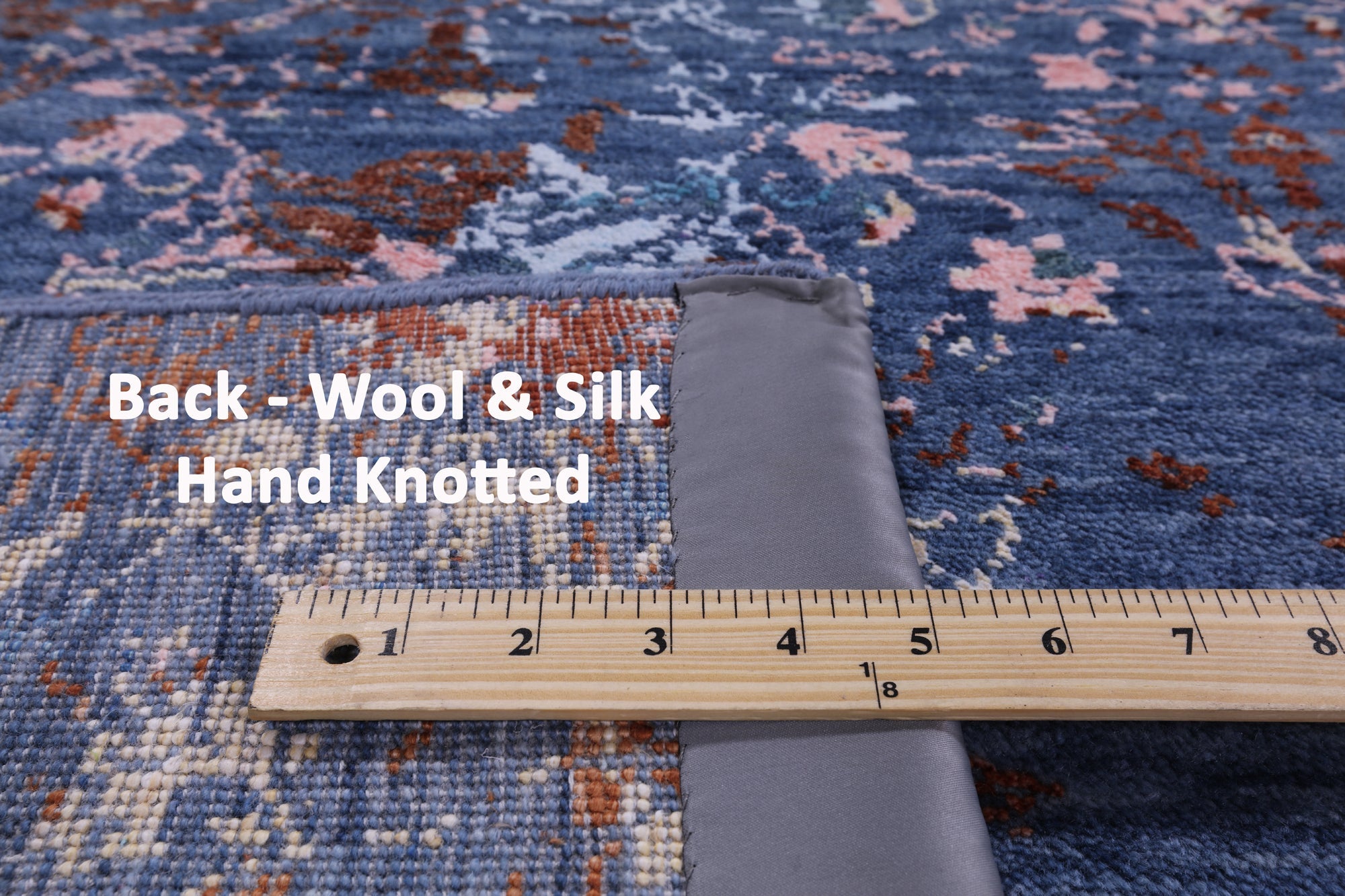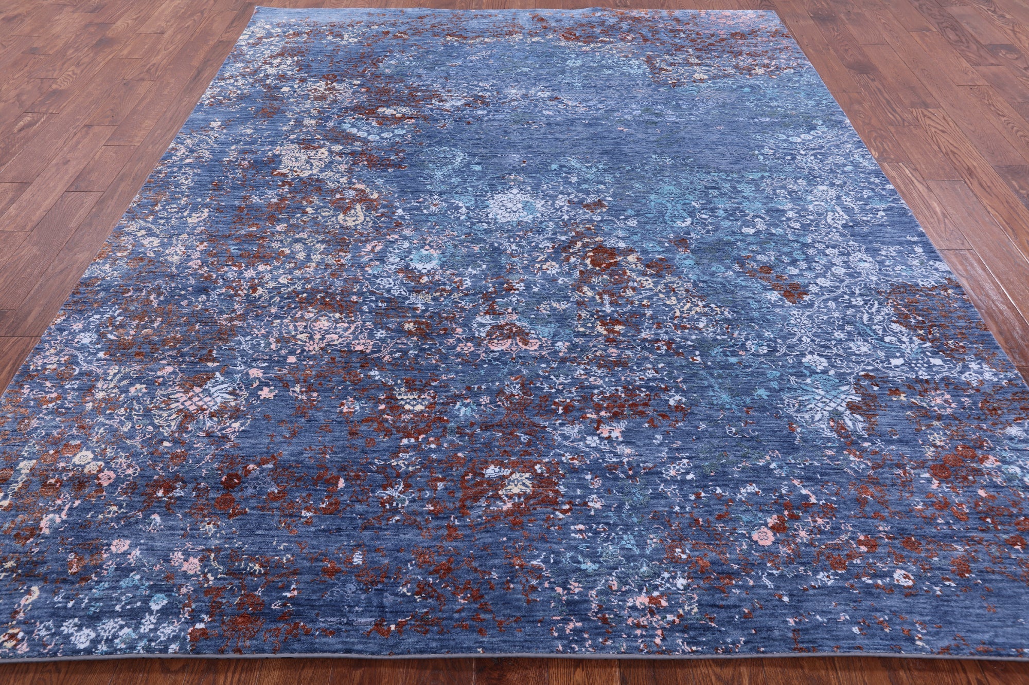 Blue 8' 0" X 9' 9" Modern Hand-Knotted Wool & Silk Rug - Q7044 is backordered and will ship as soon as it is back in stock.