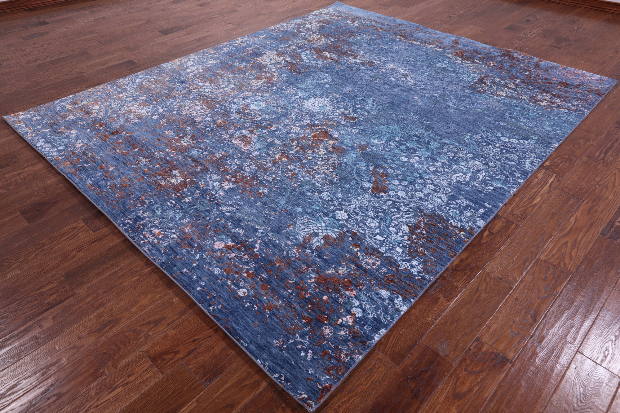 Blue 8' 0" X 9' 9" Modern Hand-Knotted Wool & Silk Rug - Q7044