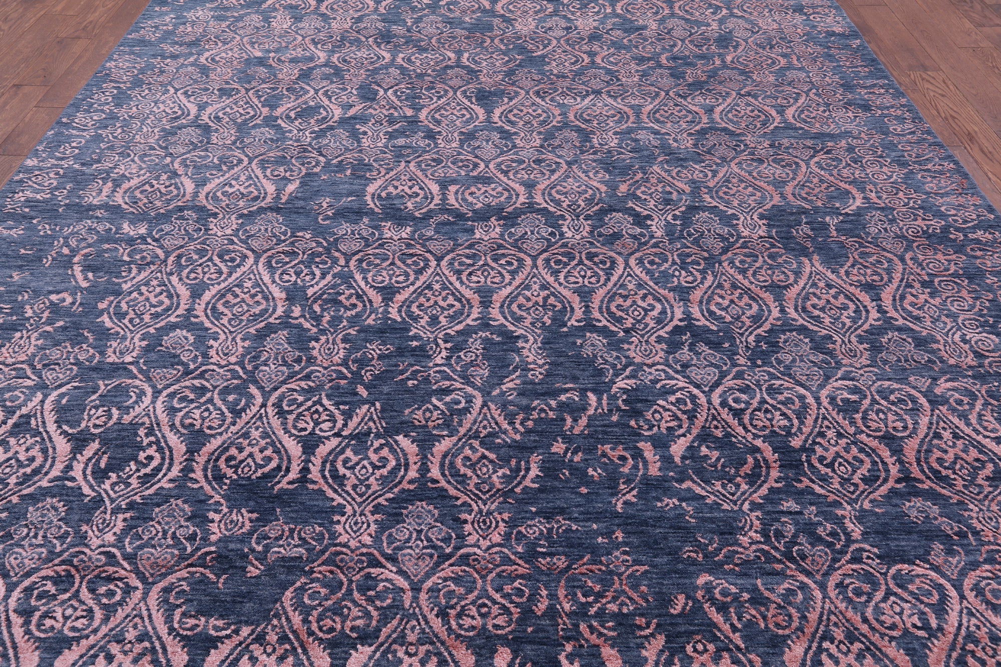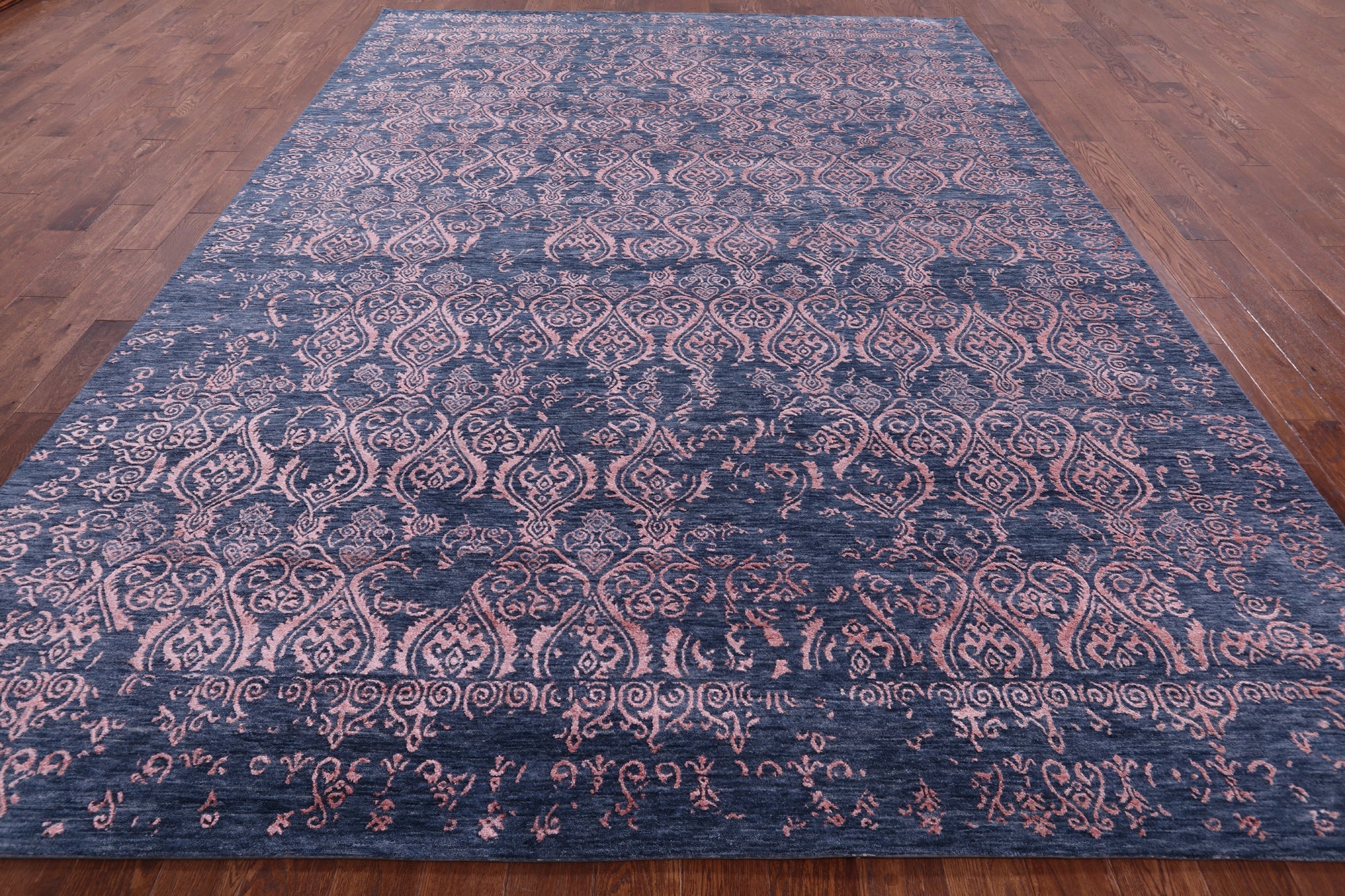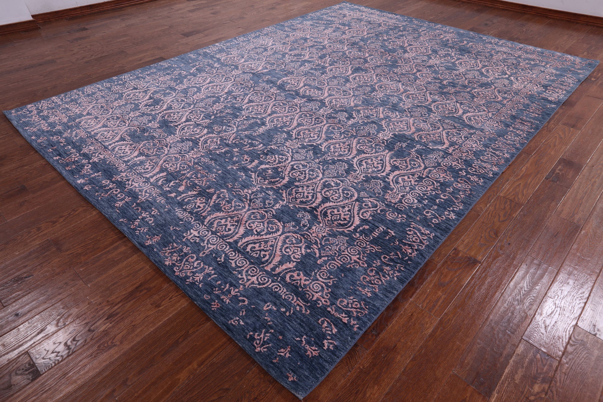 Blue Modern Hand-Knotted Wool & Silk Rug 9' 1" X 12' 5" - Q7053 is backordered and will ship as soon as it is back in stock.