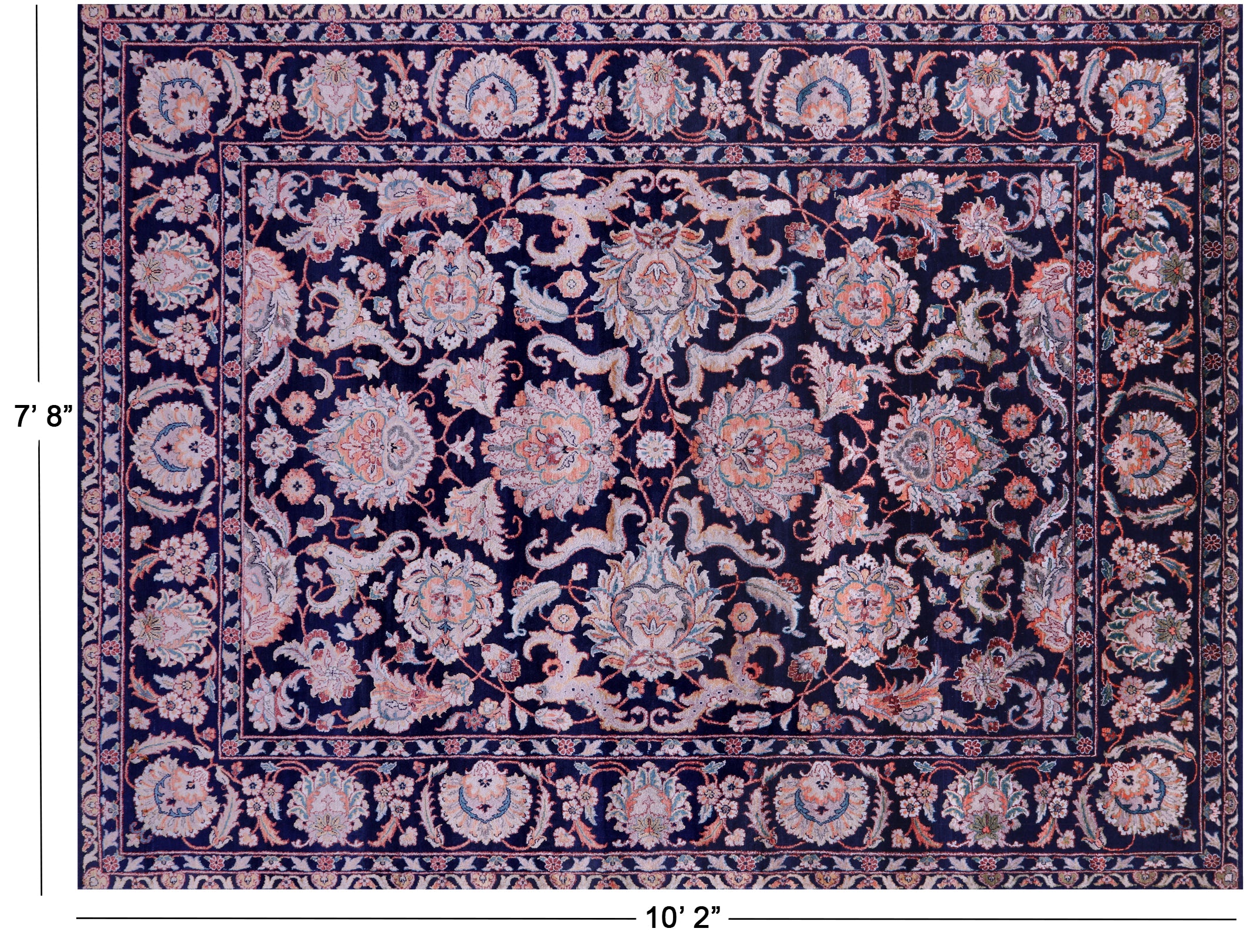 Blue 7' 8" X 10' 2" Persian Tabriz Hand Knotted Wool & Silk Rug - Q22608 is backordered and will ship as soon as it is back in stock.