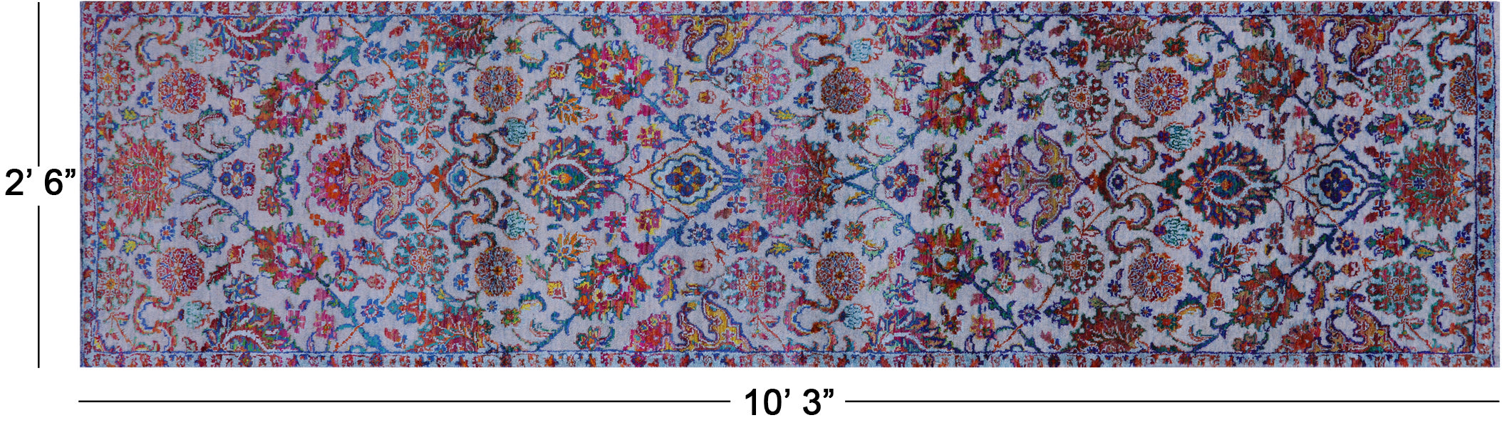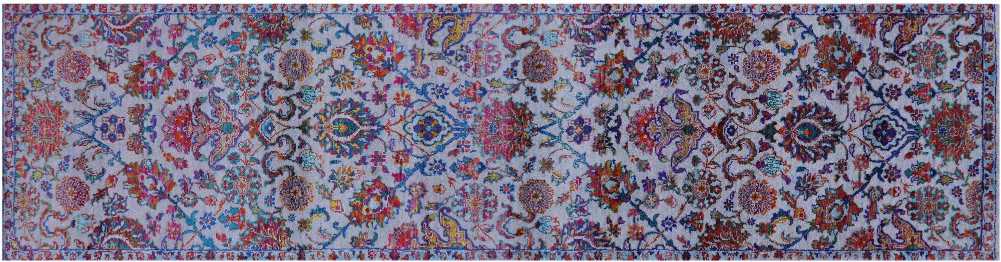 Blue Runner Persian Tabriz Wool & Silk Handmade Rug 2' 6" X 10' 3" - Q20110