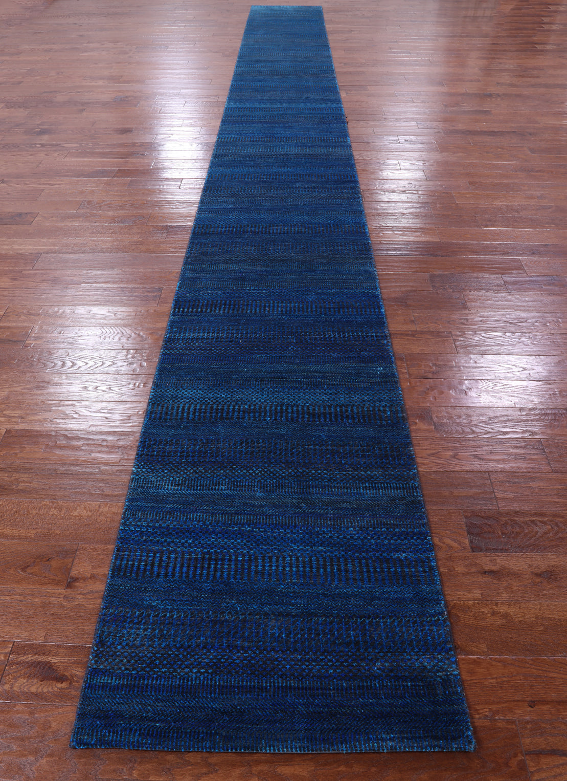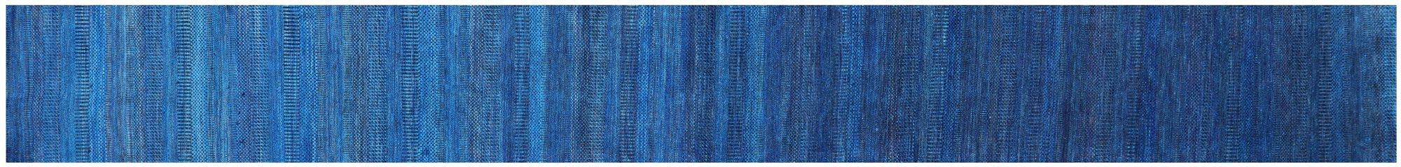 Blue 2' 7" X 23' 9" Runner Super Savannah Gabbeh Hand Knotted Wool & Silk Rug - Q8617 is backordered and will ship as soon as it is back in stock.