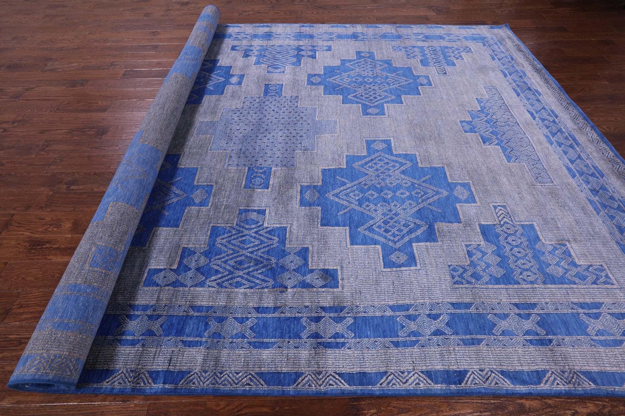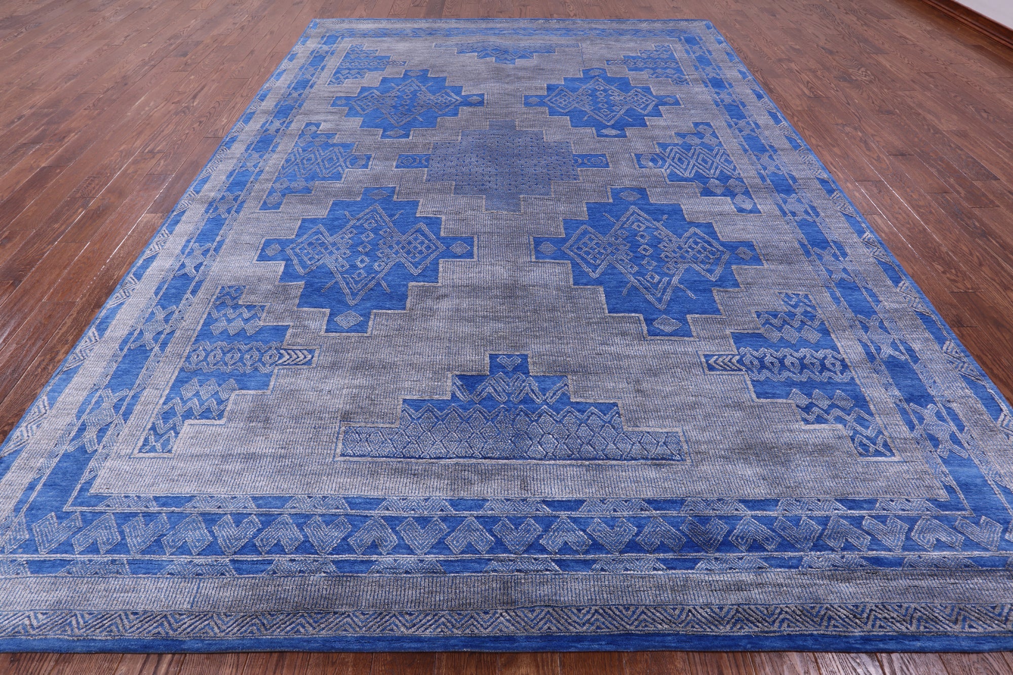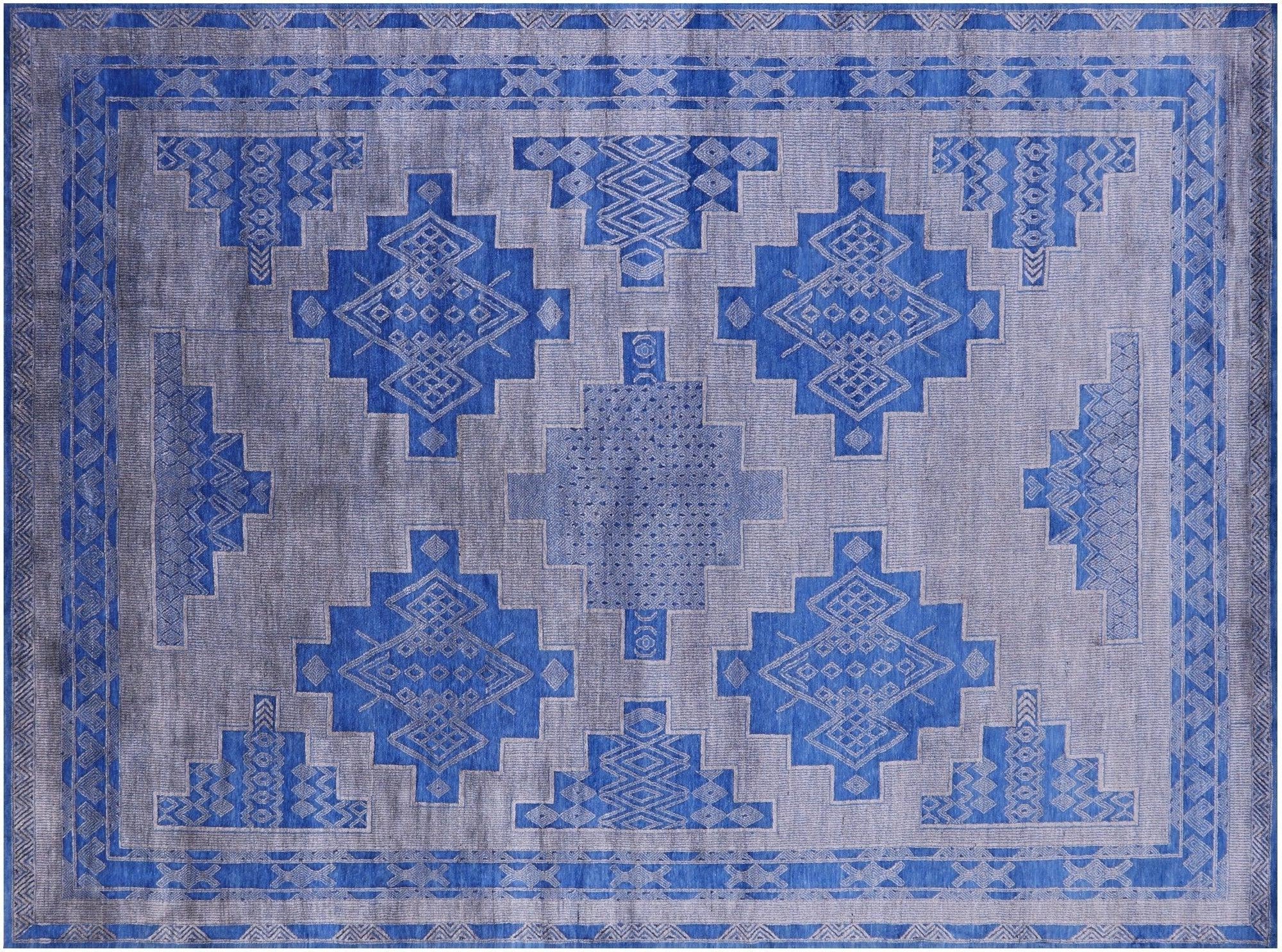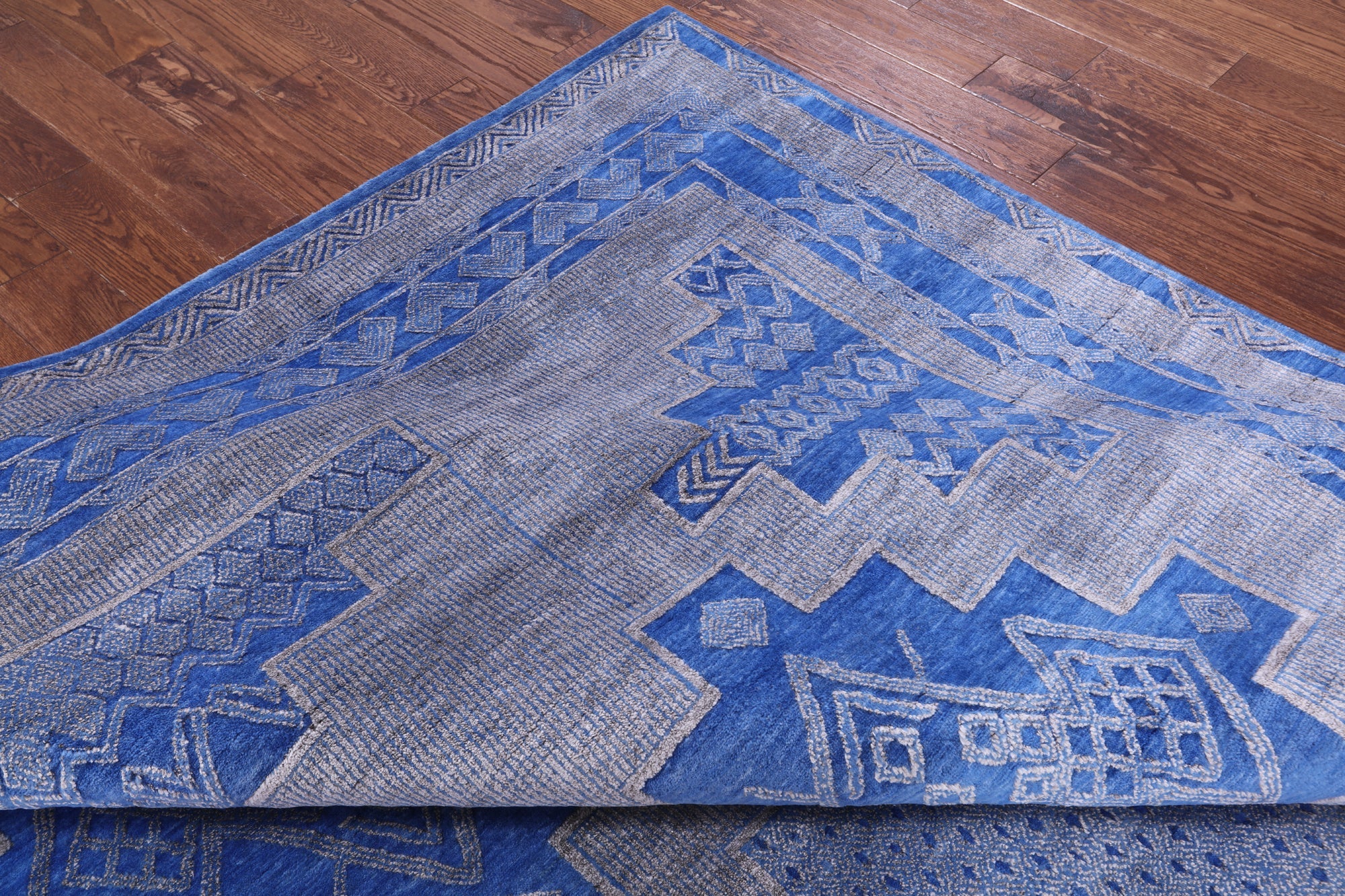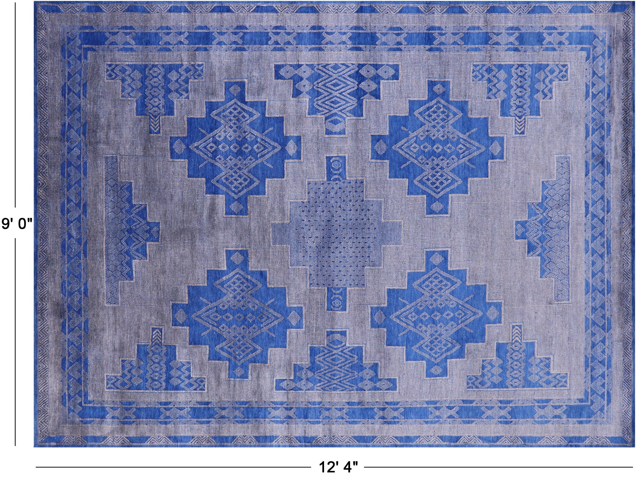 Blue 9' 0" X 12' 4" Southwest Navajo Handmade Wool & Silk Rug - Q15530
