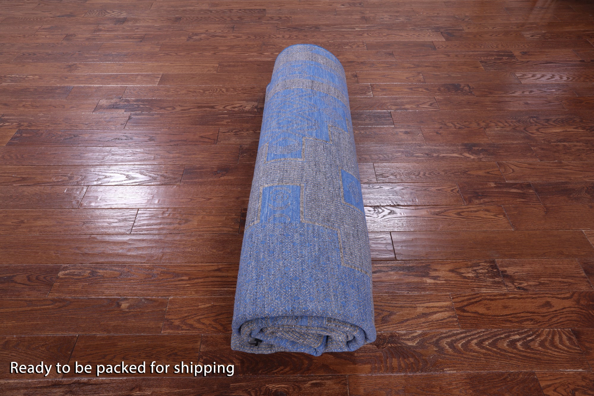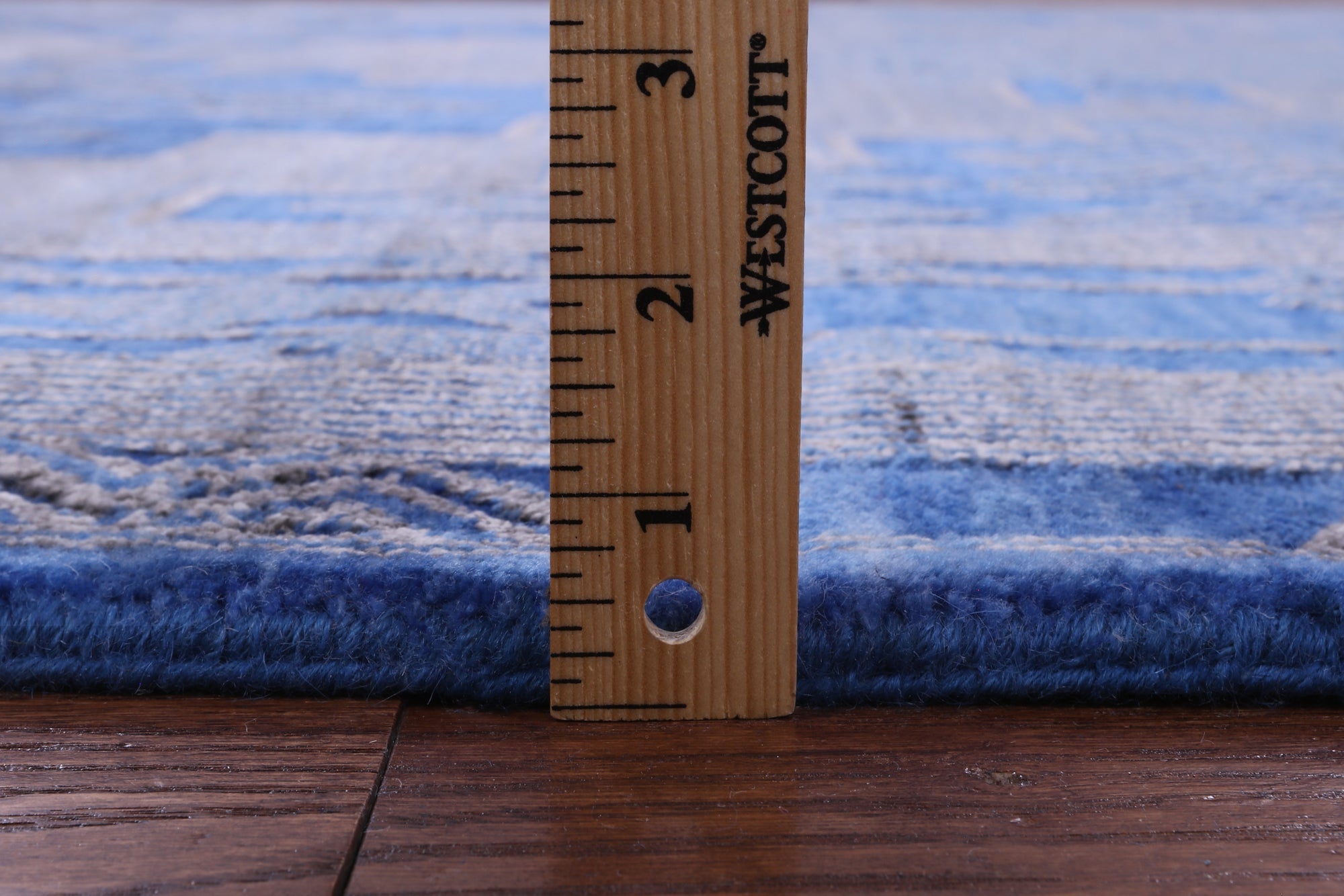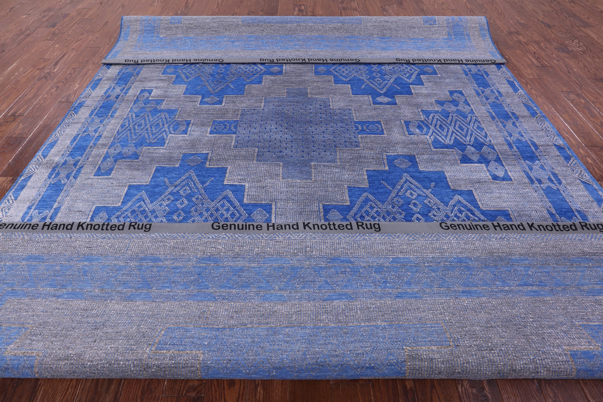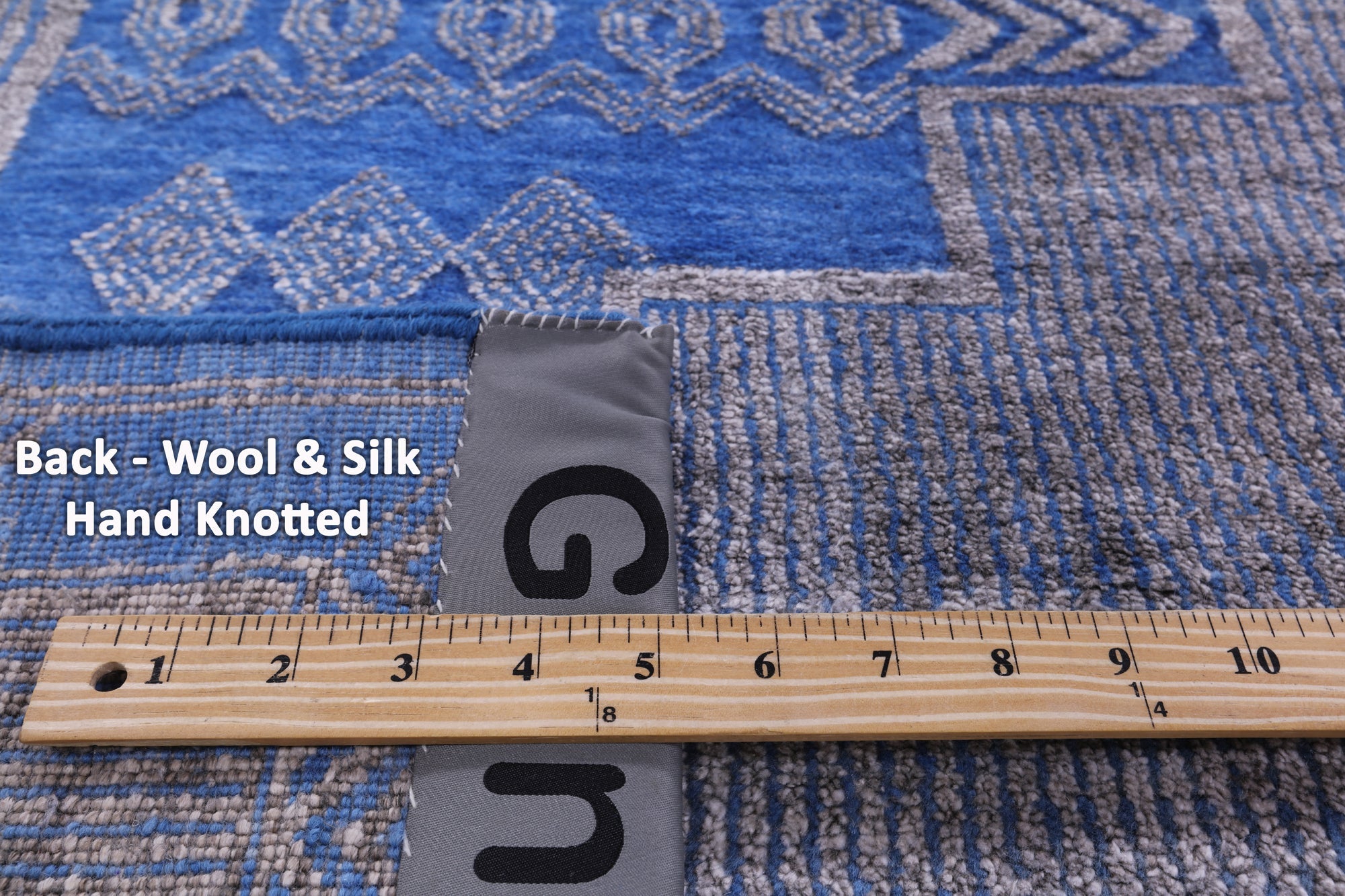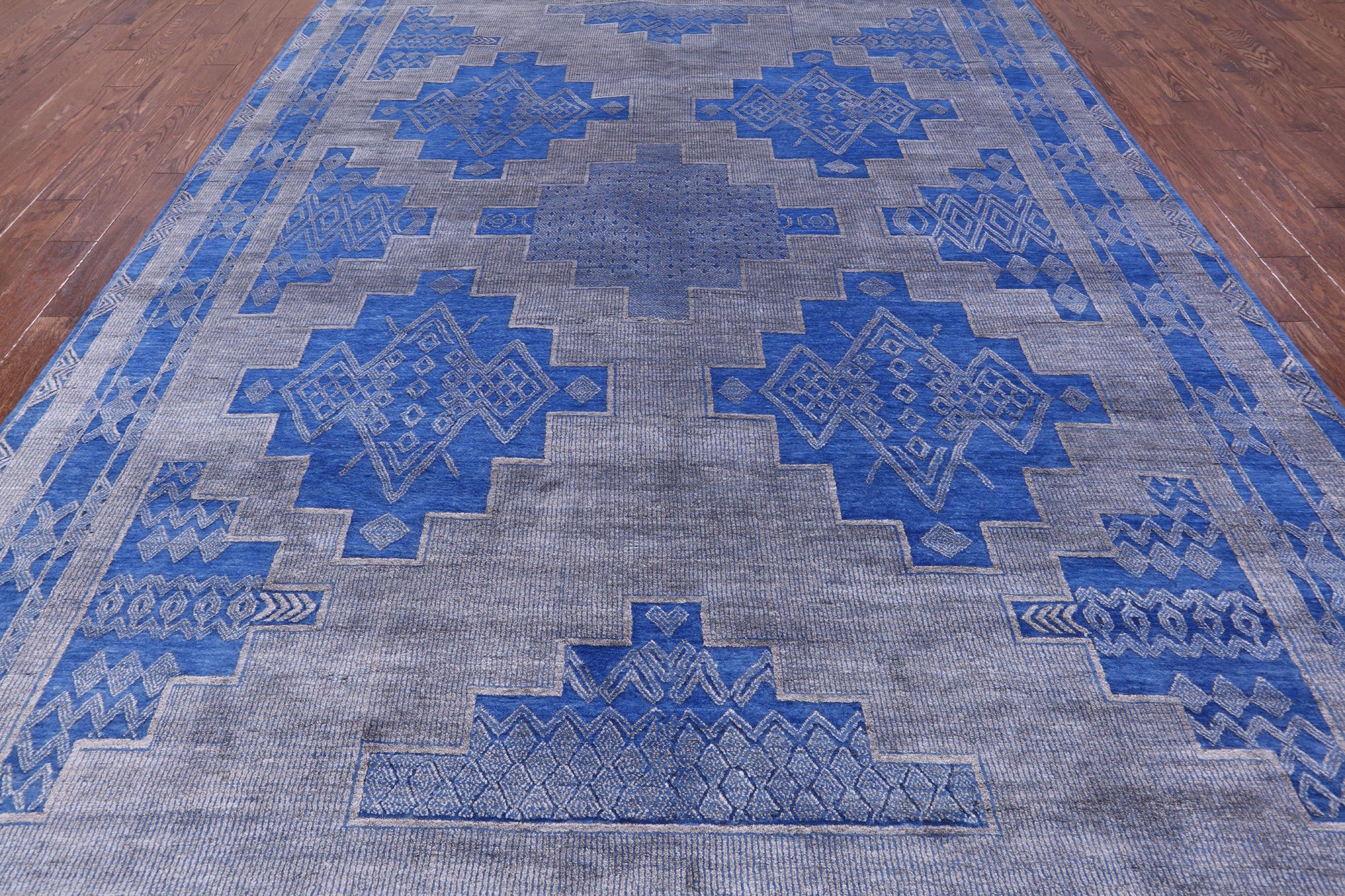 Blue 9' 0" X 12' 4" Southwest Navajo Handmade Wool & Silk Rug - Q15530