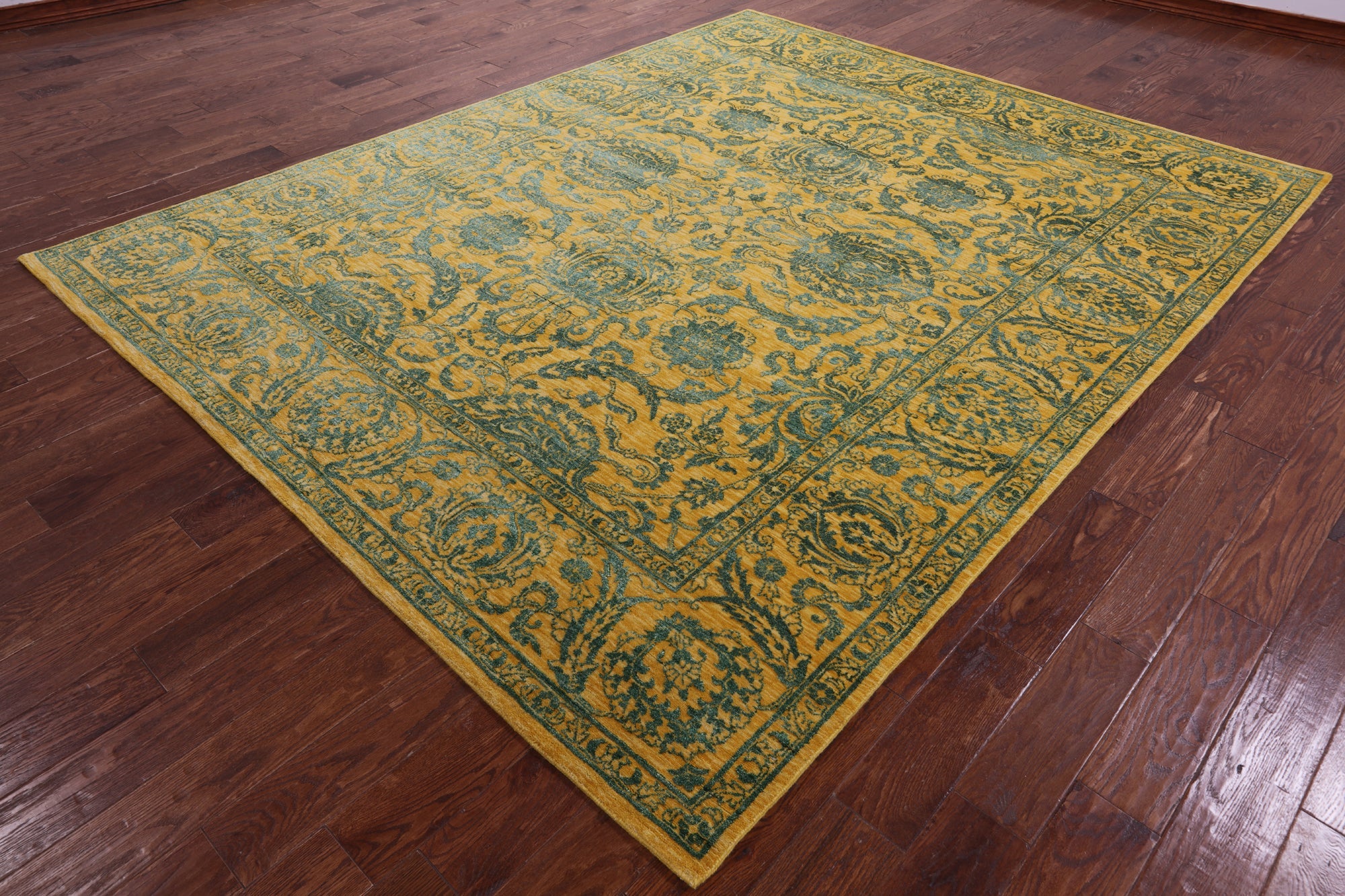 Gold 7' 11" X 9' 11" Persian Tabriz Handmade Wool & Silk Rug - Q22424