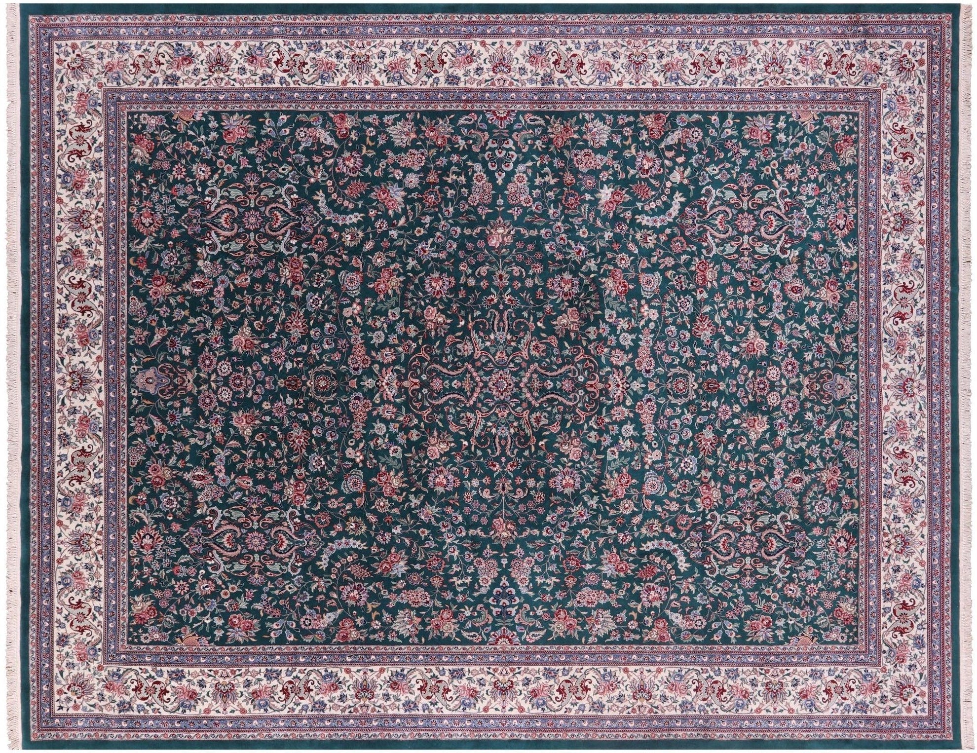 Green Fine Persian Kashan Hand Knotted Wool & Silk Rug 11' 7" X 15' 0" - Q19405