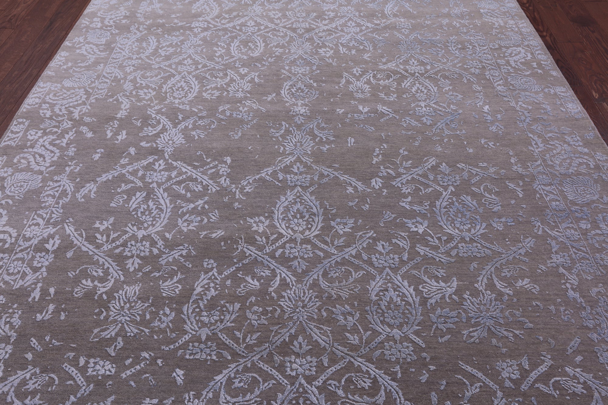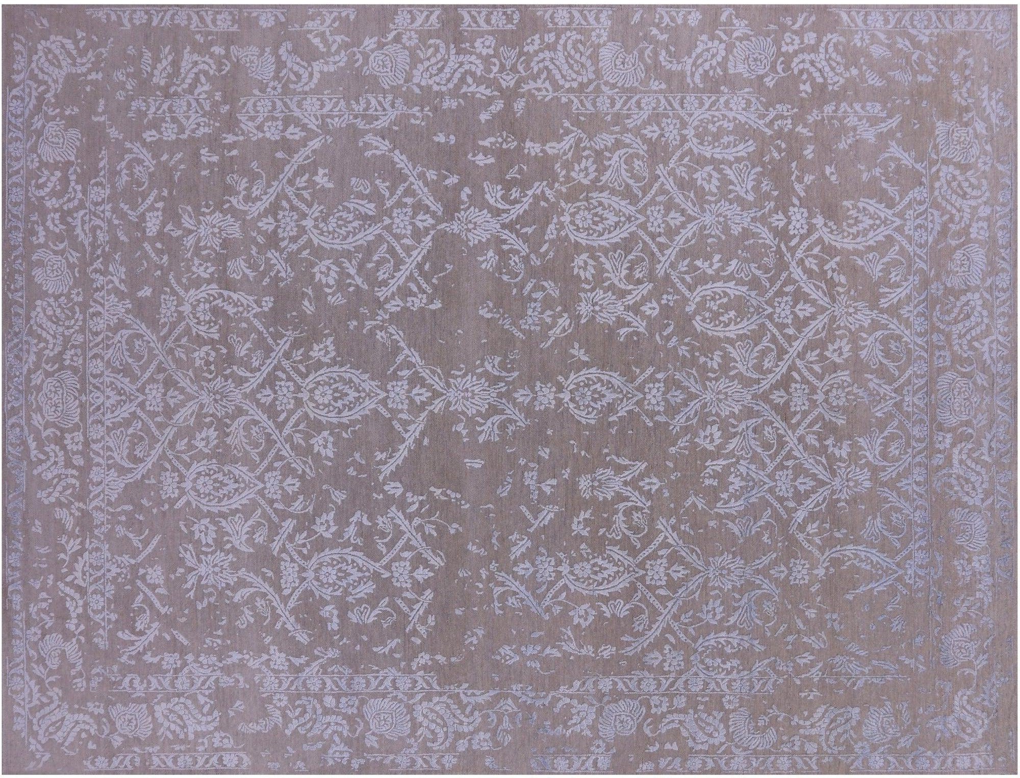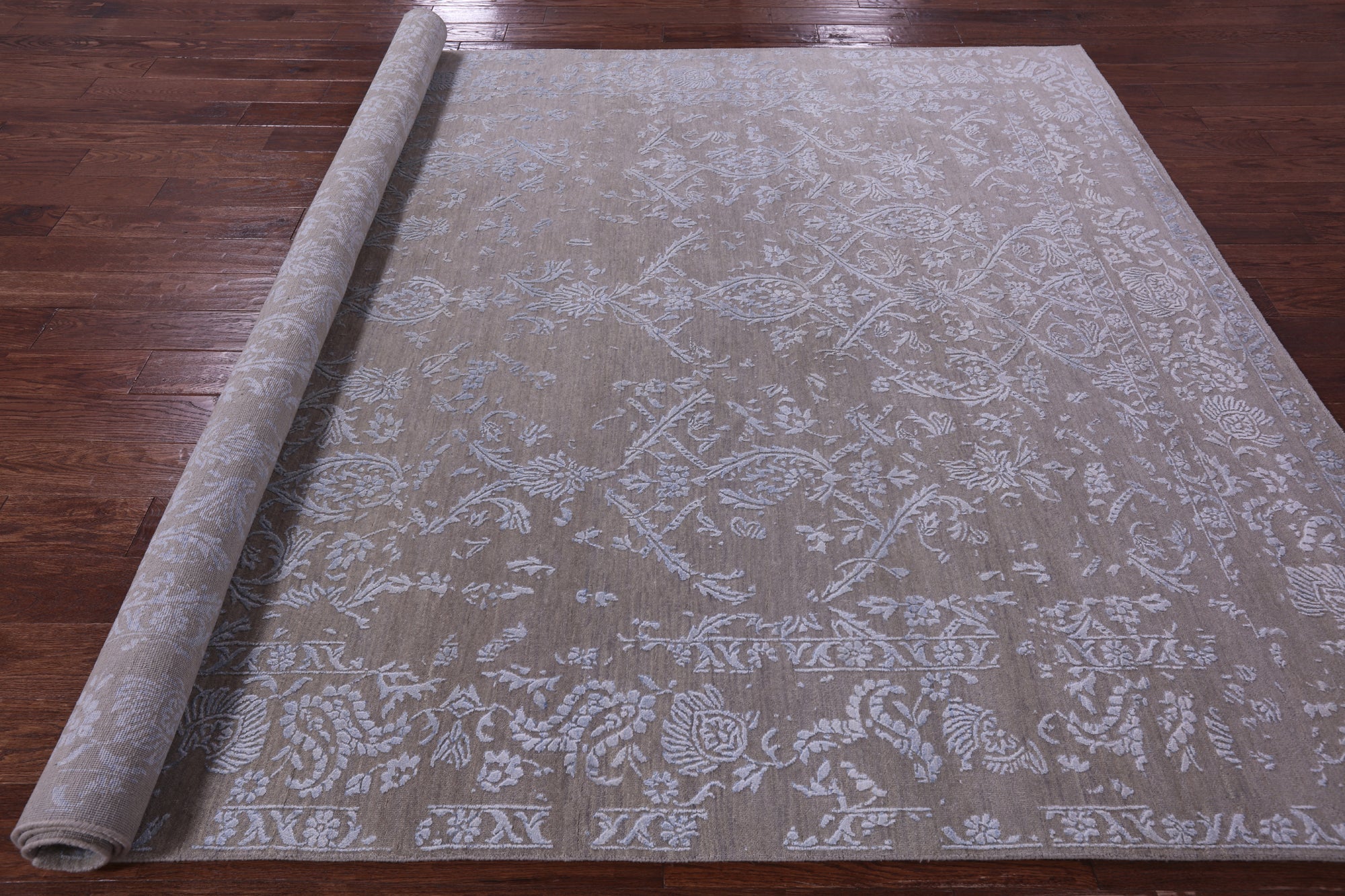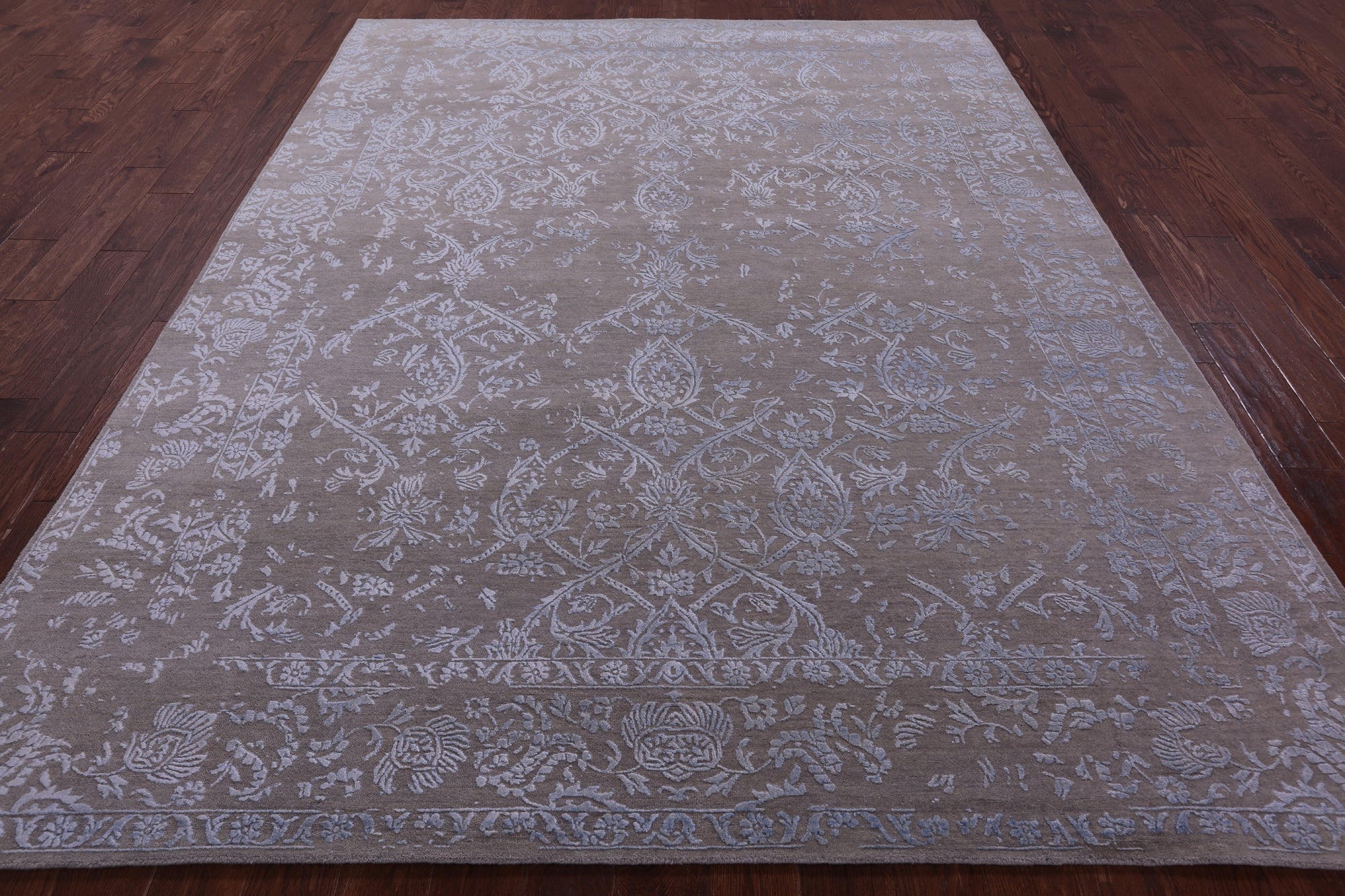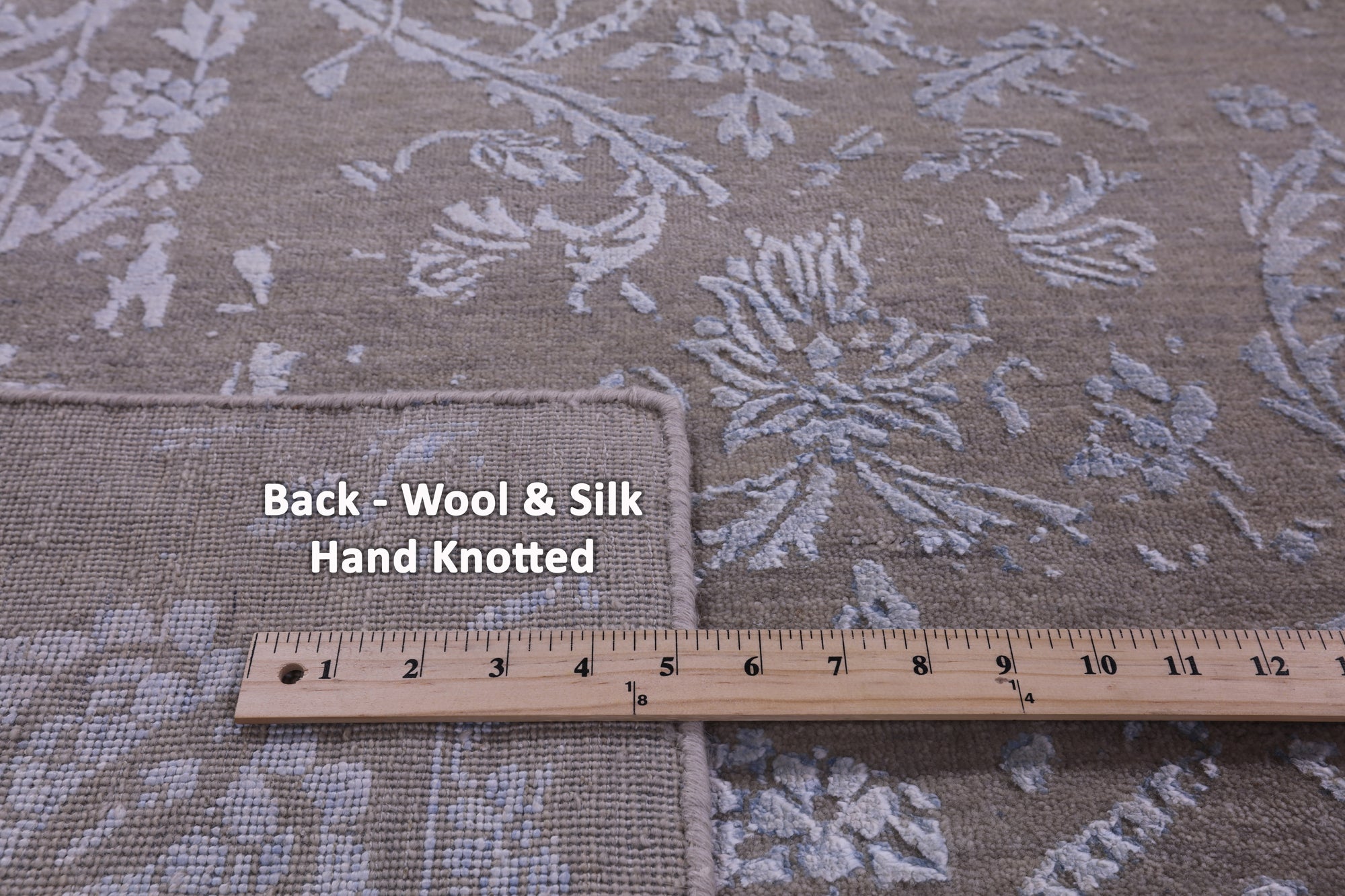 Grey Modern Hand Knotted Wool & Silk Rug 7' 7" X 10' 0" - Q21648
