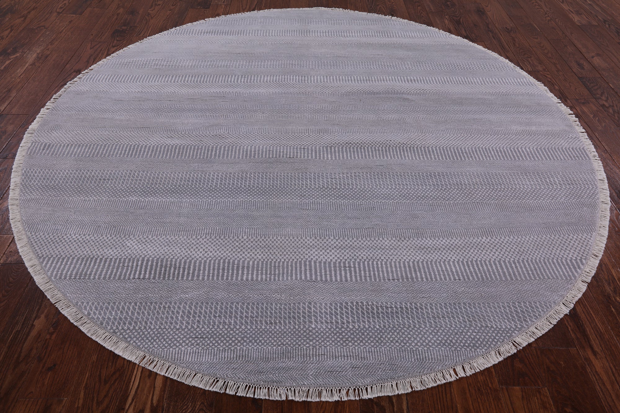 Grey 8' Round Gabbeh Savannah Grass Hand Knotted Wool & Silk Area Rug - P9783