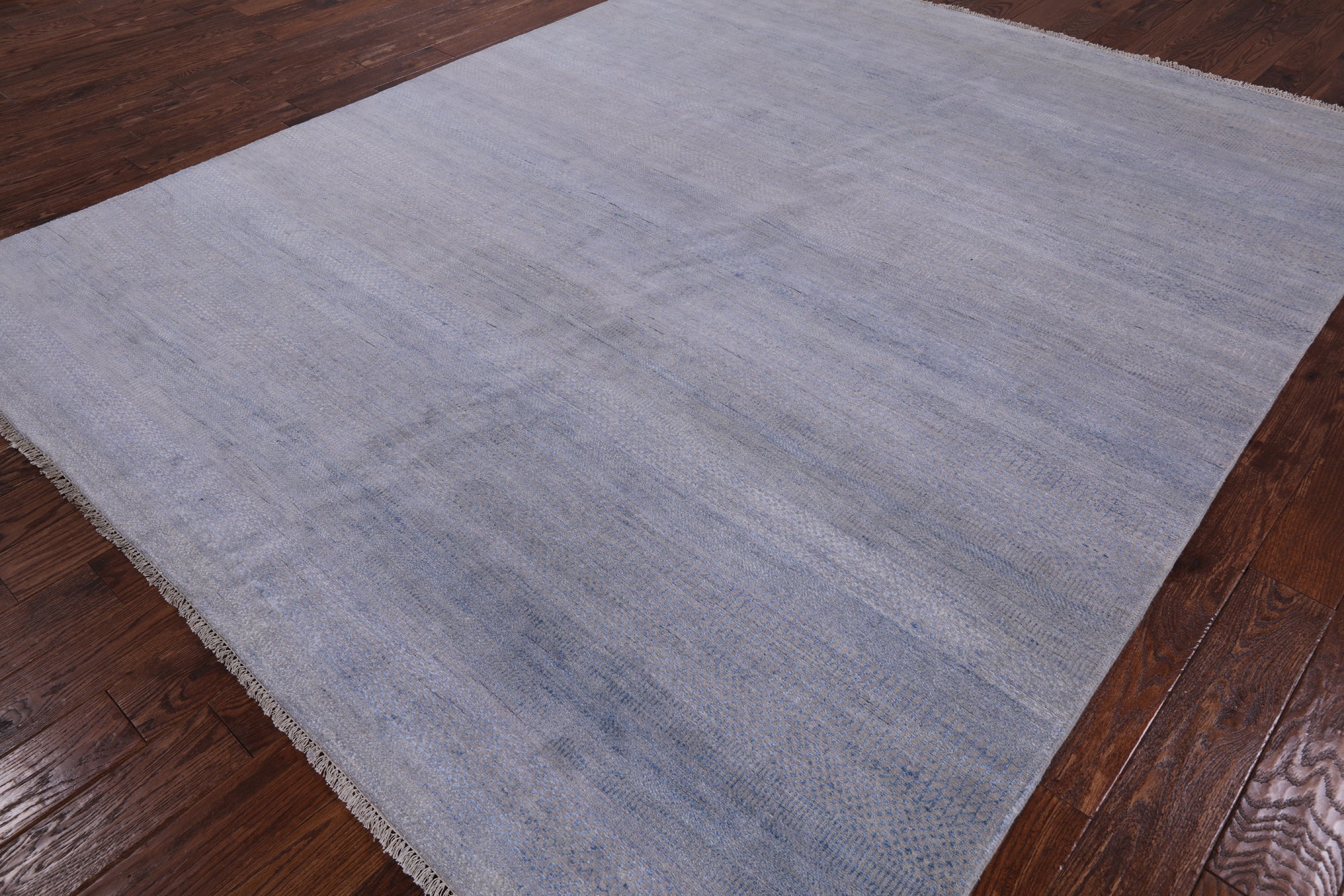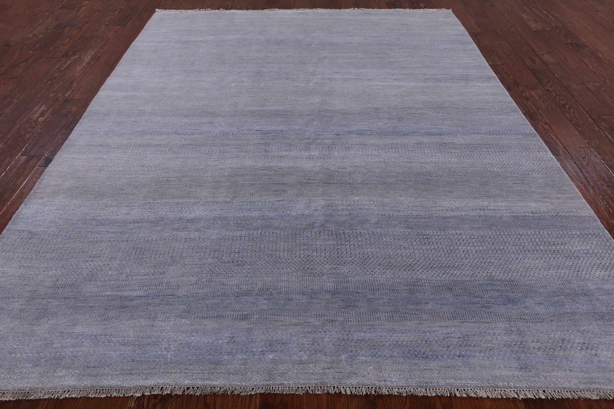 Grey Wool & Silk Gabbeh Savannah Grass Hand Knotted Rug 7' 11" X 9' 9"- P9582