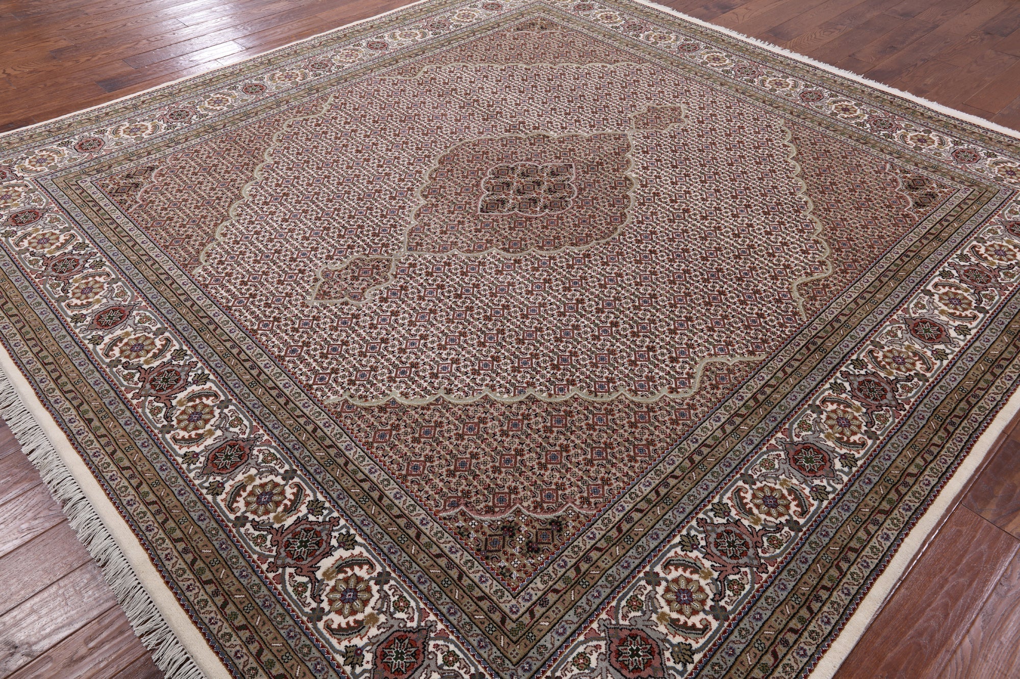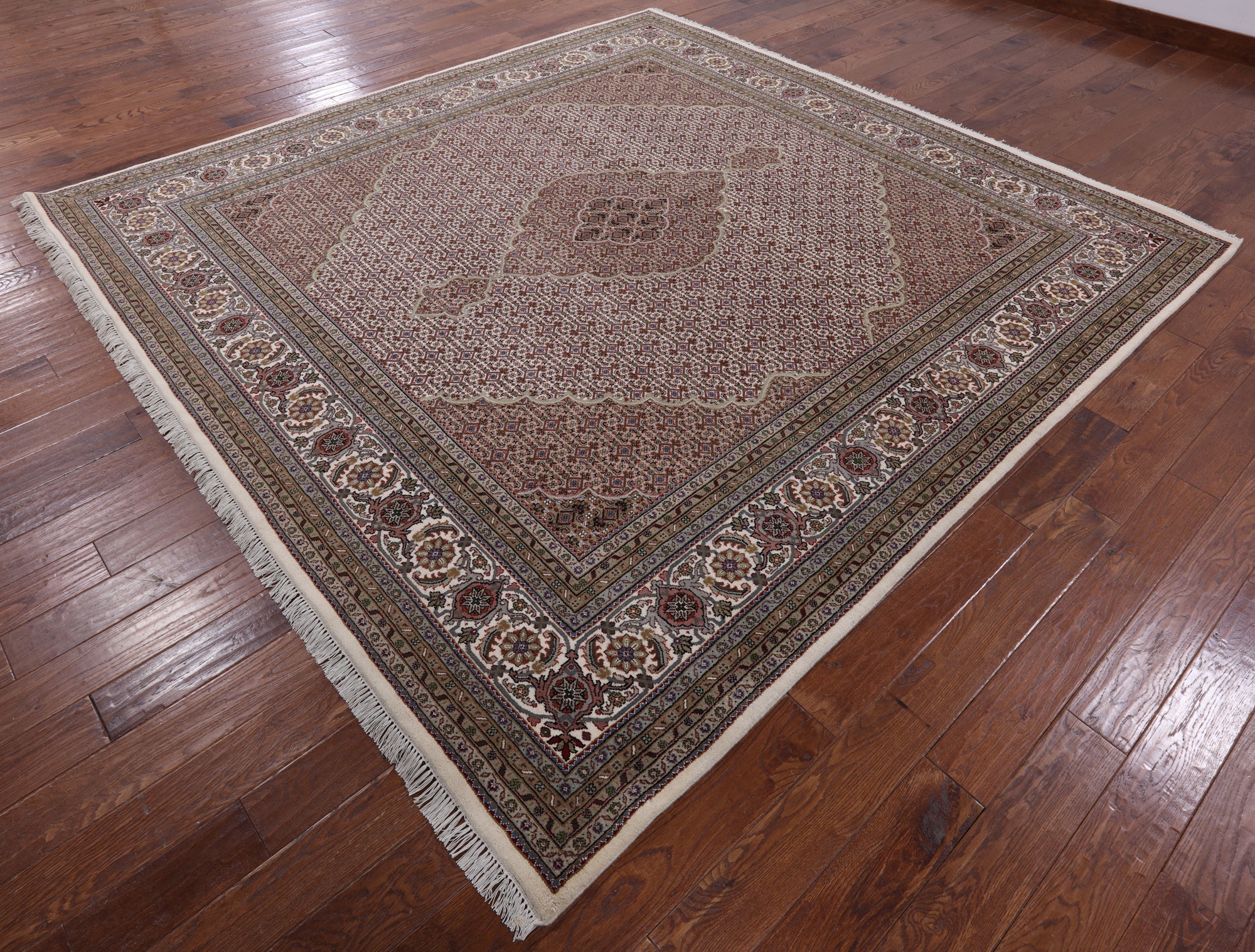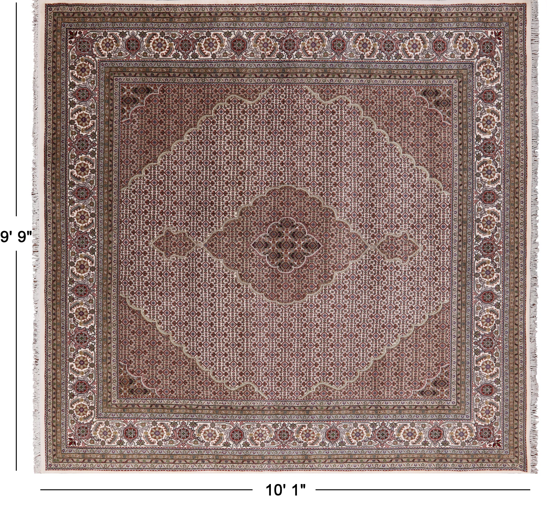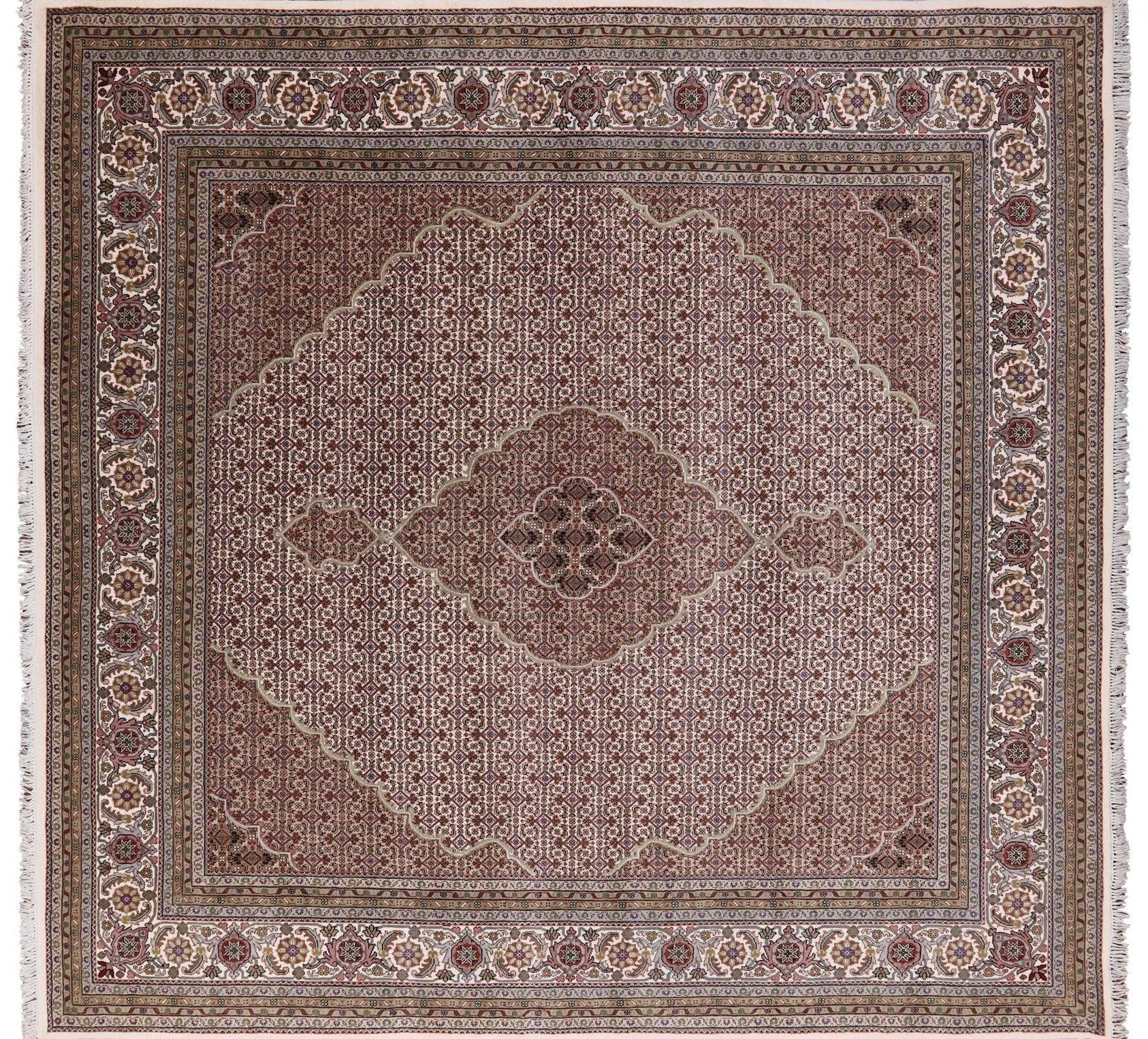 Ivory 10' Square Persian Tabriz Handmade Wool & Silk Rug - P9470