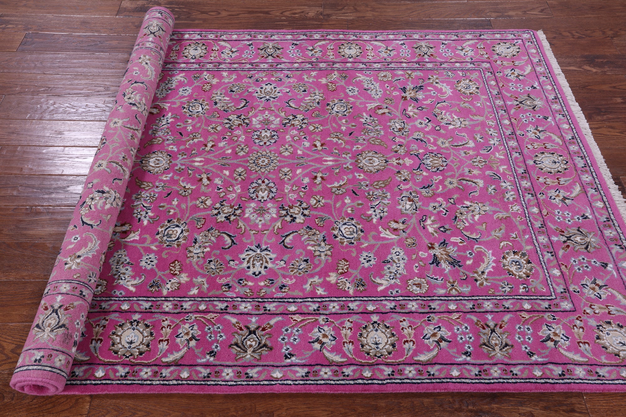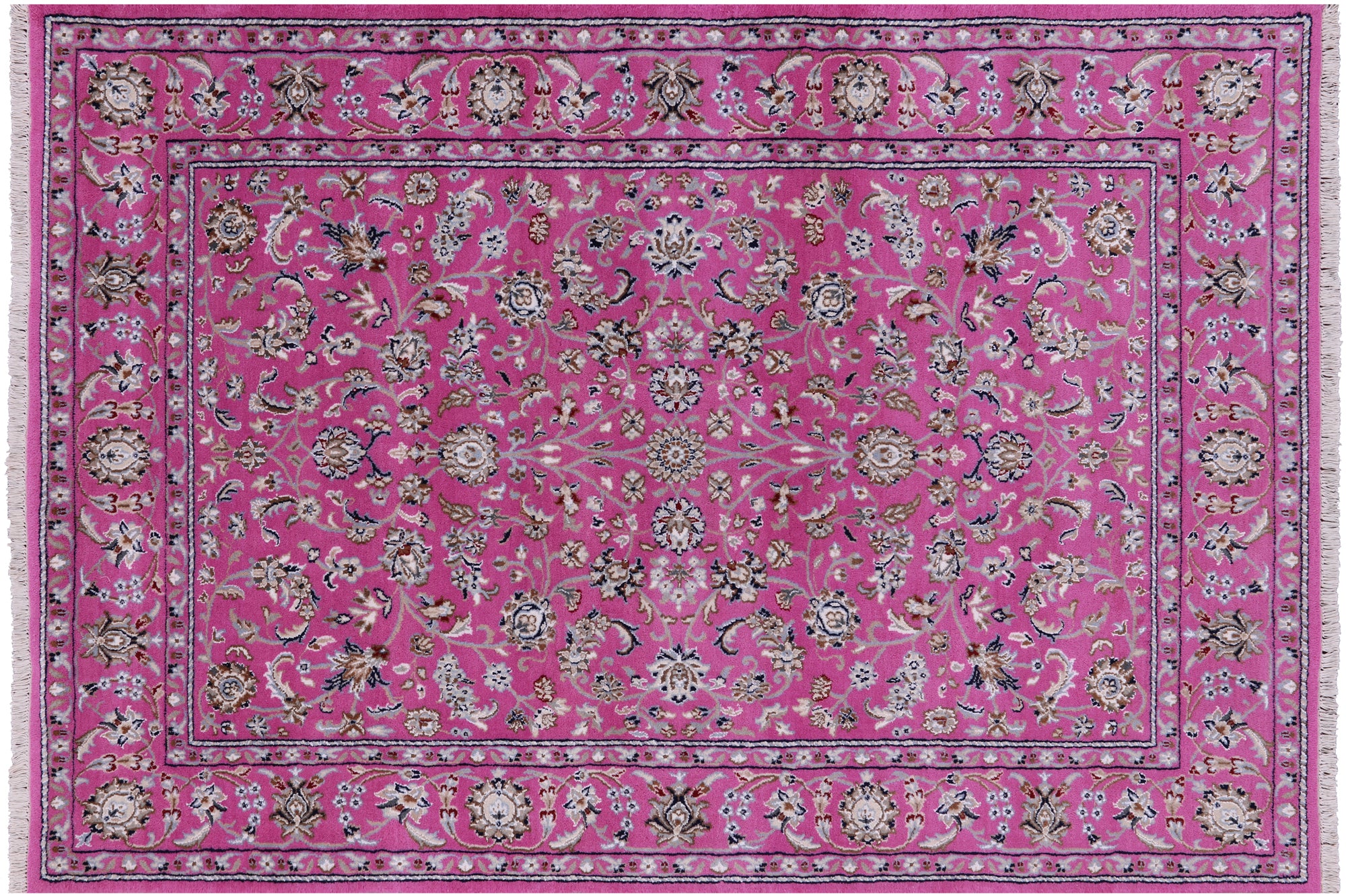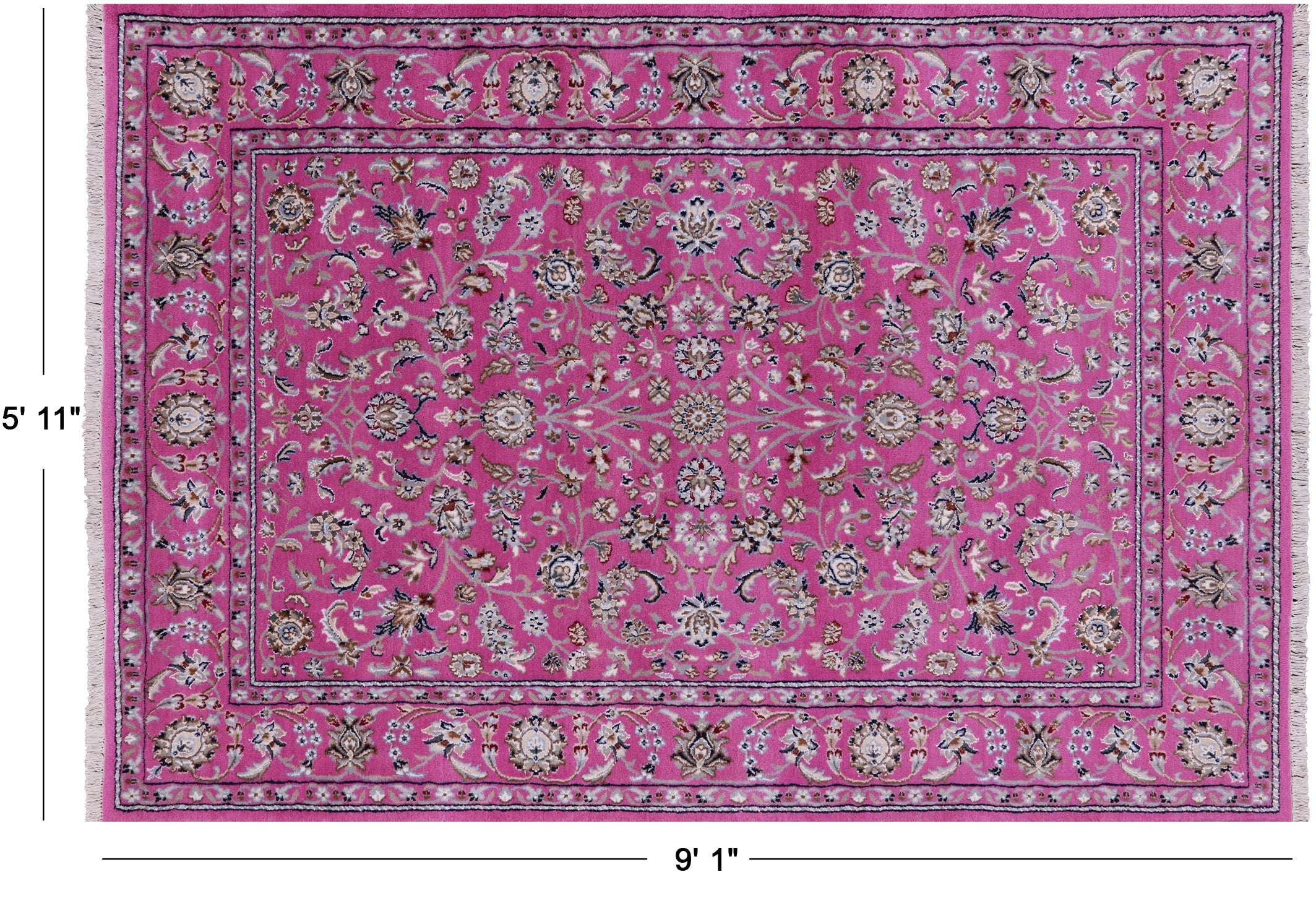 Pink Persian Nain Wool & Silk Handmade Rug 5' 11" X 9' 1" - Q23622
