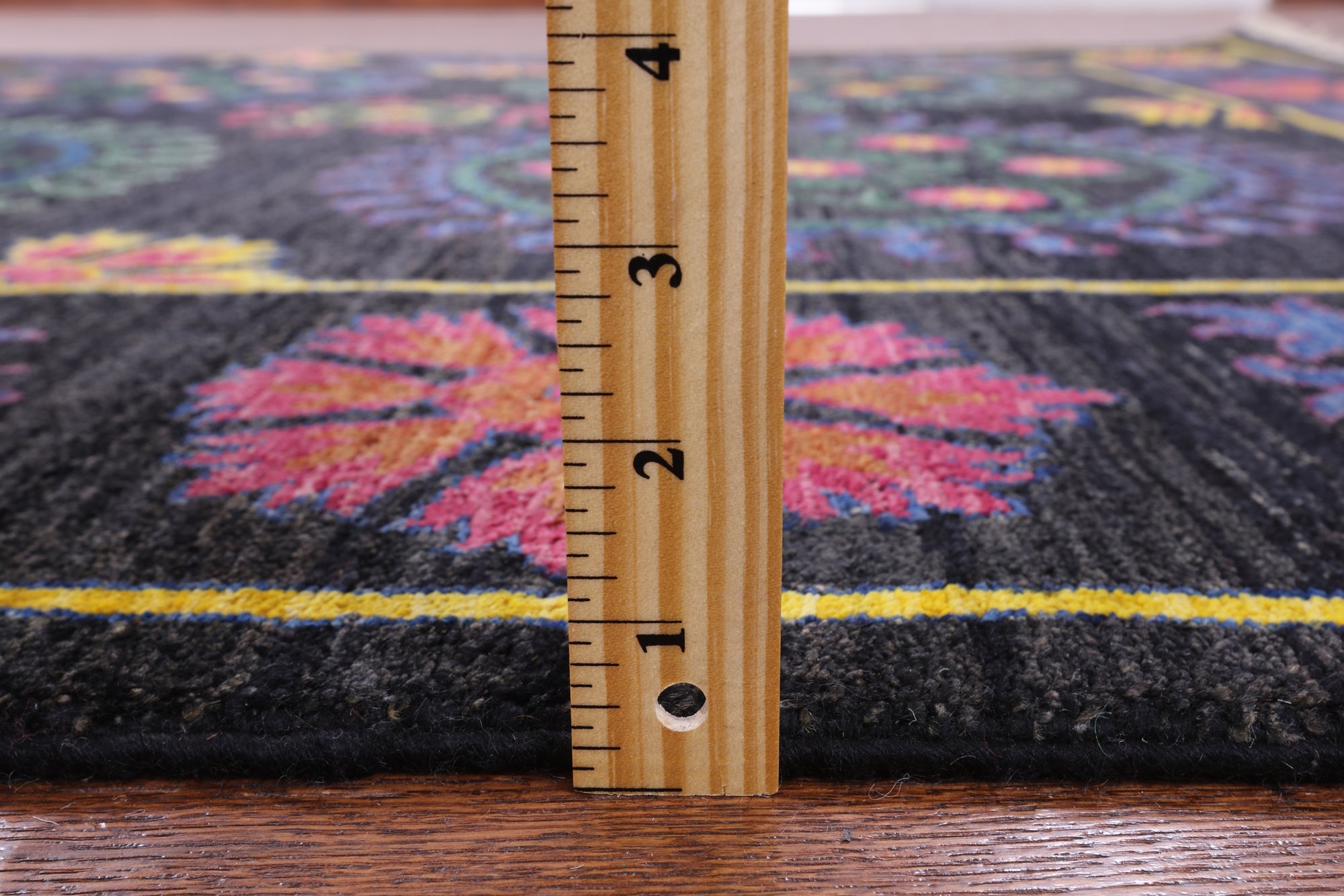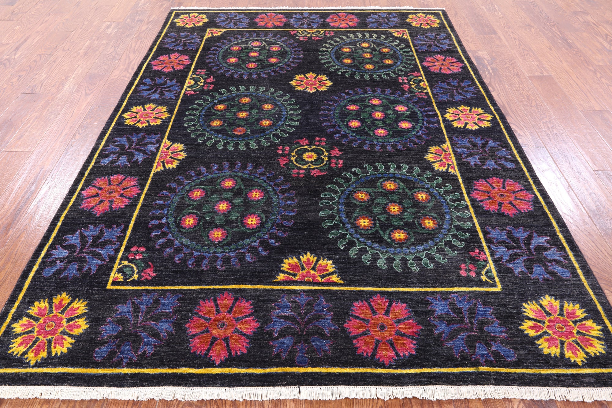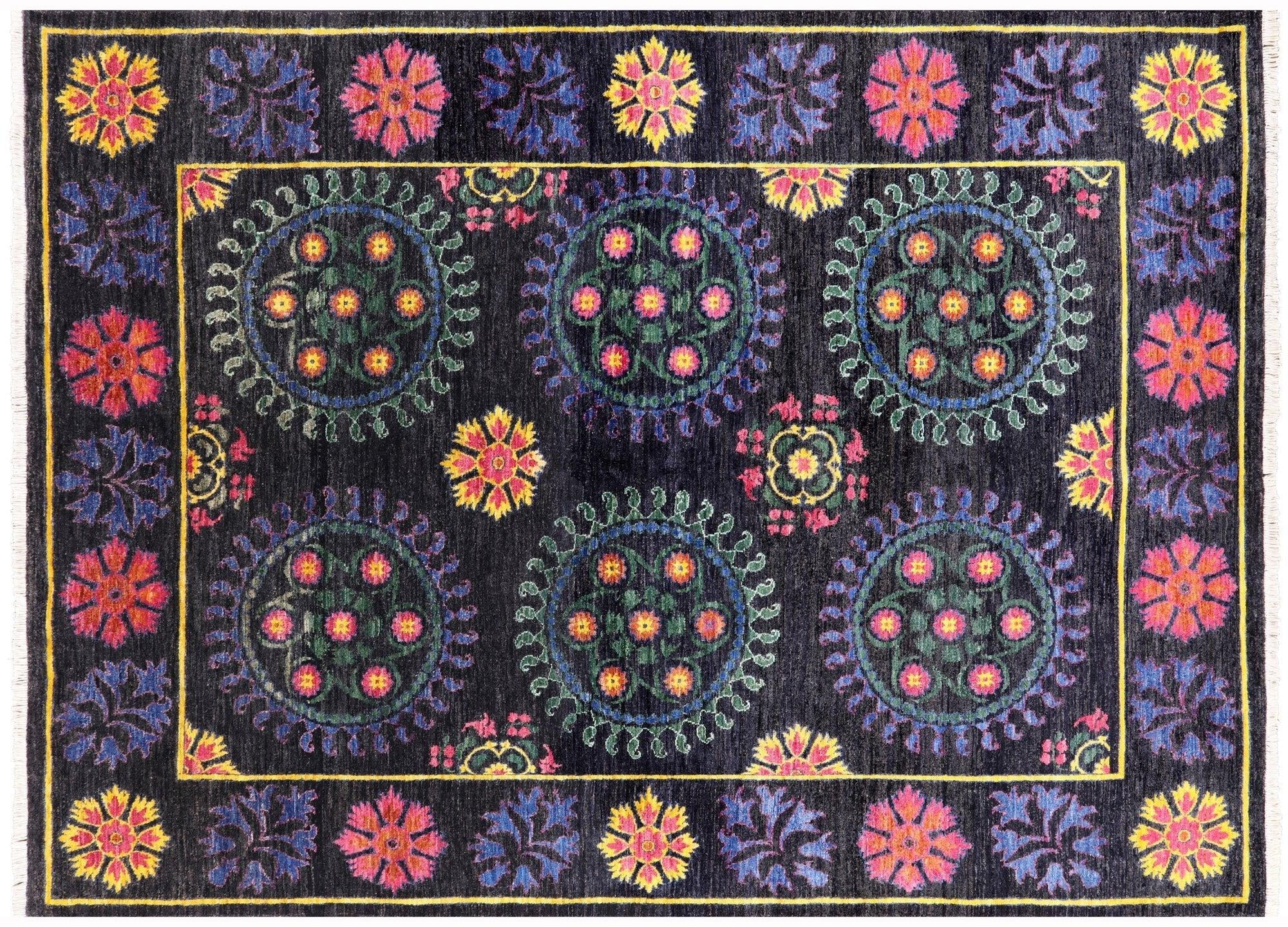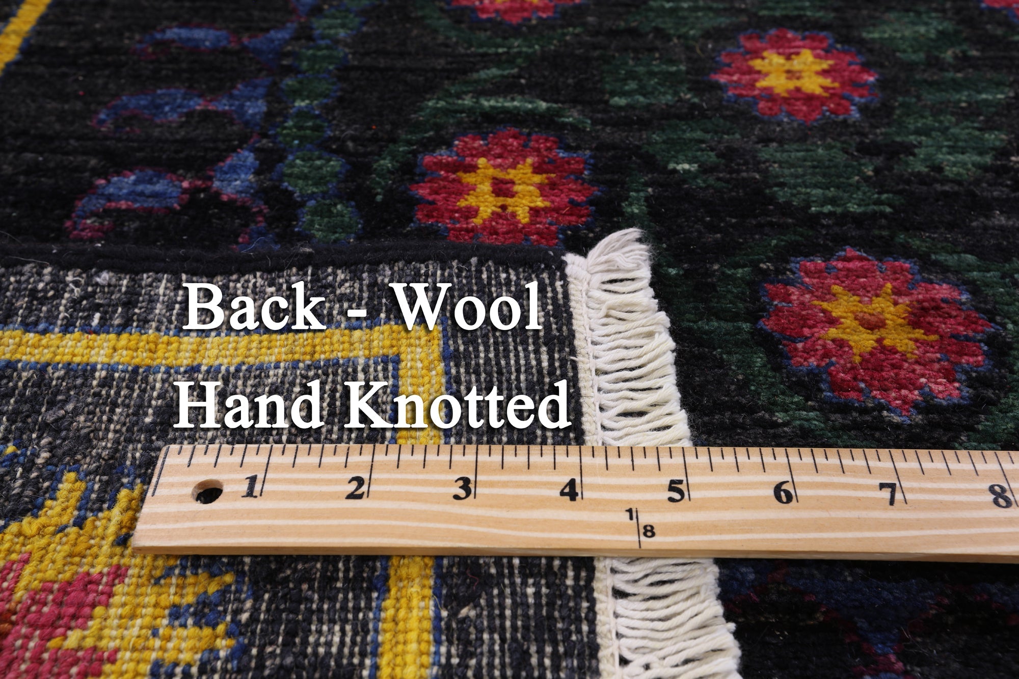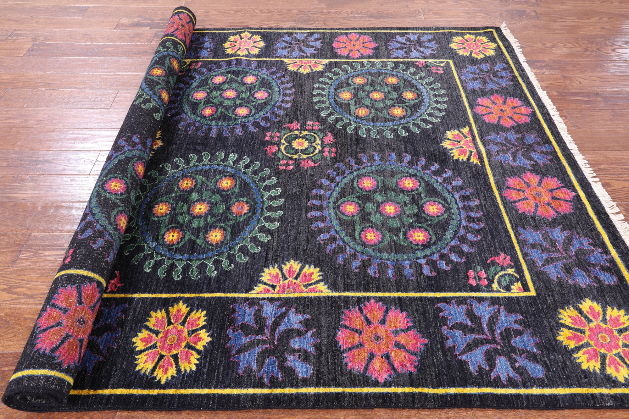 Black 6' 2" X 7' 10" Handmade William Morris Rug - P7085