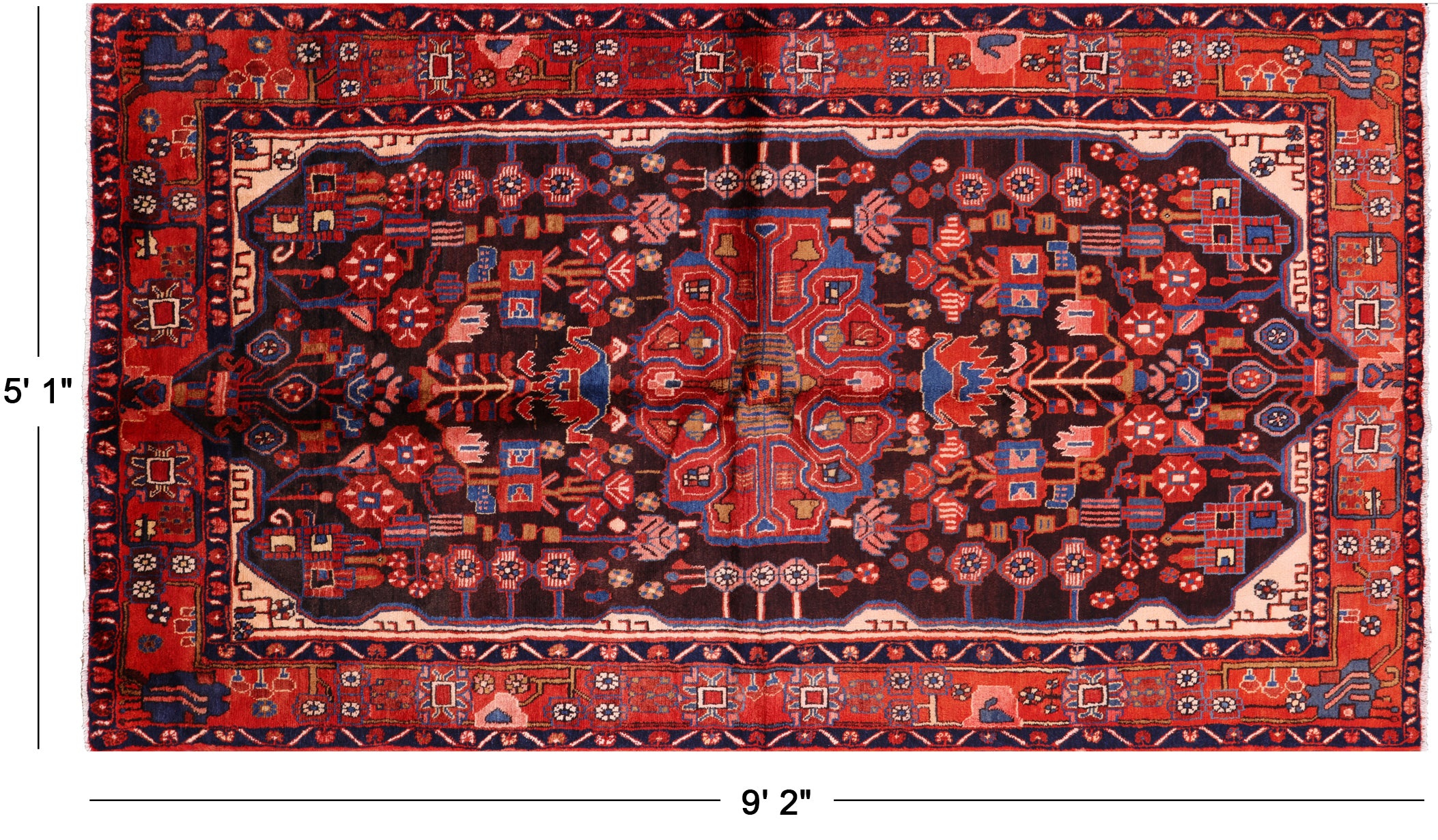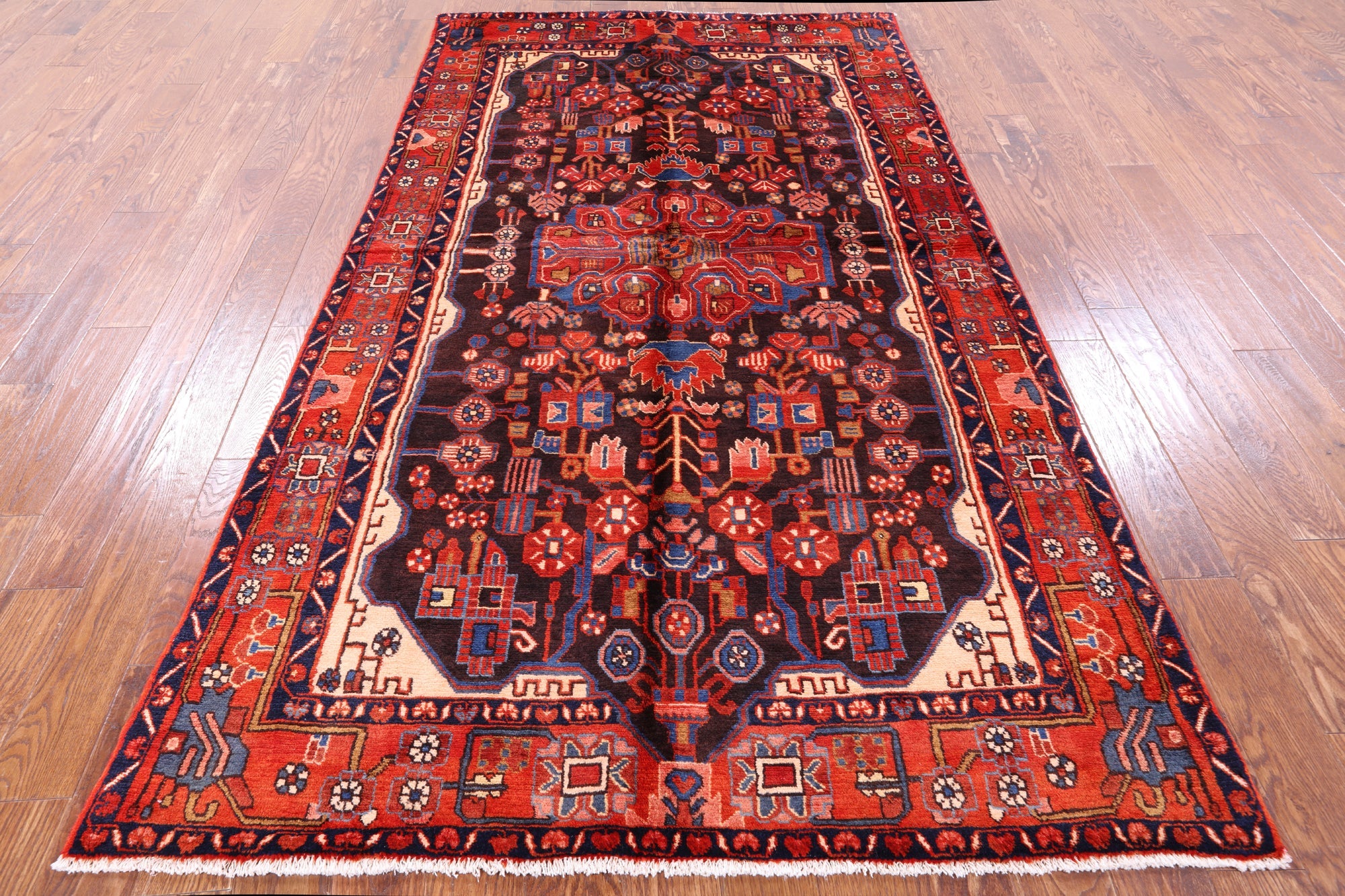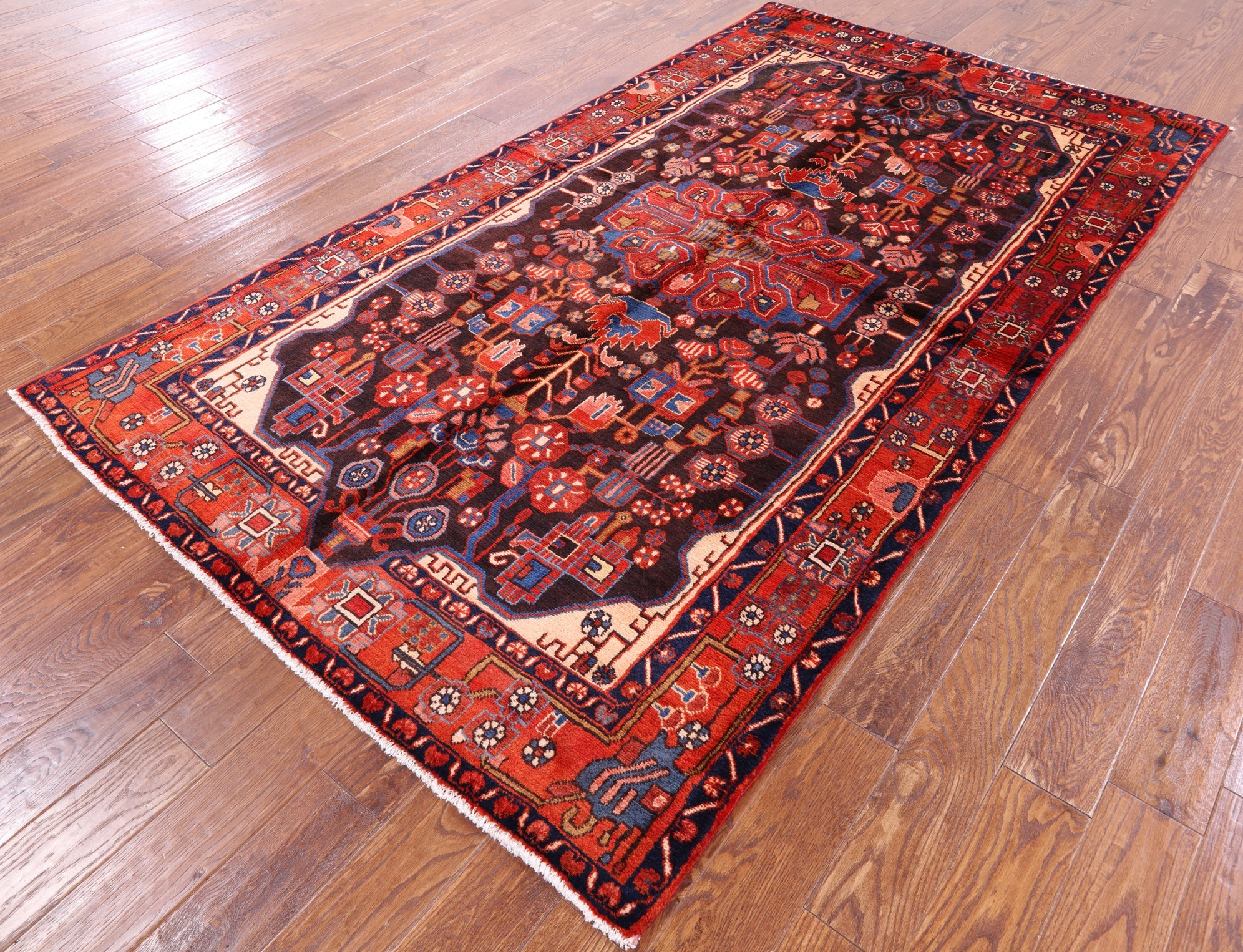 Nahavand rugs comes from the city of Nahavand in Persia. These rugs have a tribal style look, often using floral medallions and a variety of vegetable dyed colors such as reds, blues, greens and different shades of ivory. Nahavand rugs are made with very high quality wool, which gives it a shine. They are very durable rugs that will last a lifetime.